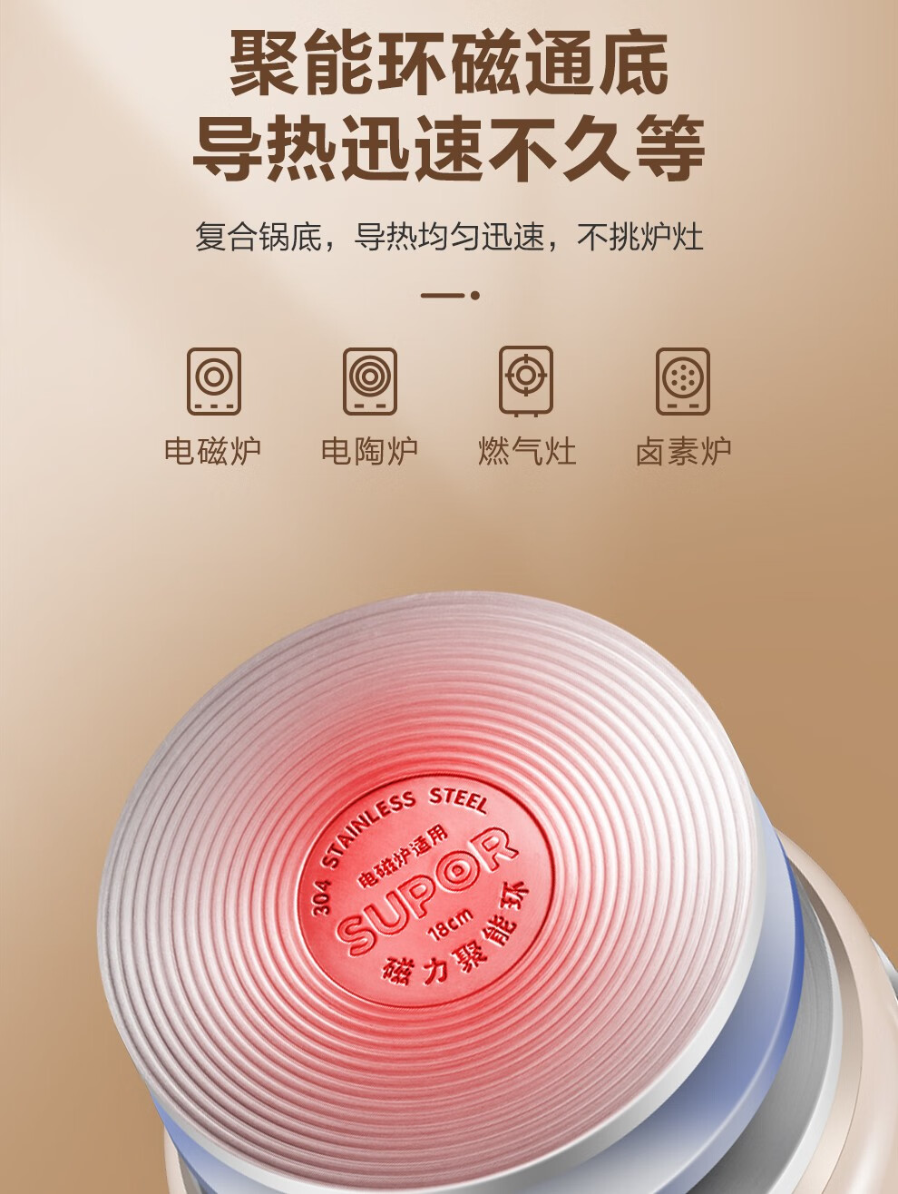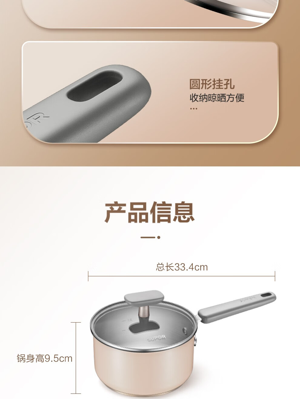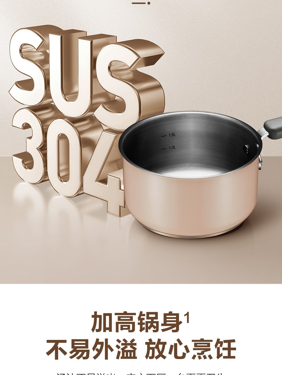 苏泊尔(SUPOR)奶锅外瓷内钢加深不锈钢汤奶锅耐用厨房家用多功能电磁炉明火通用 【2.3L 推荐2-3人用】 ST18JC1