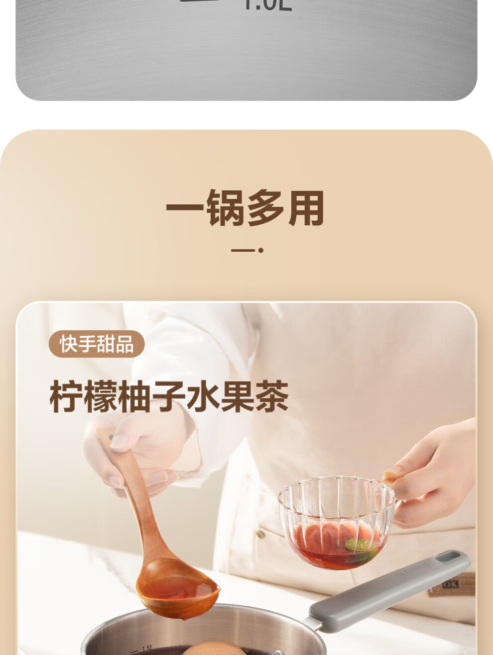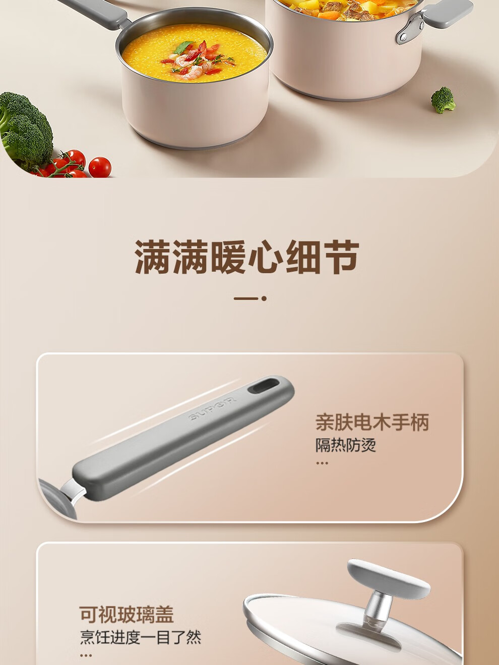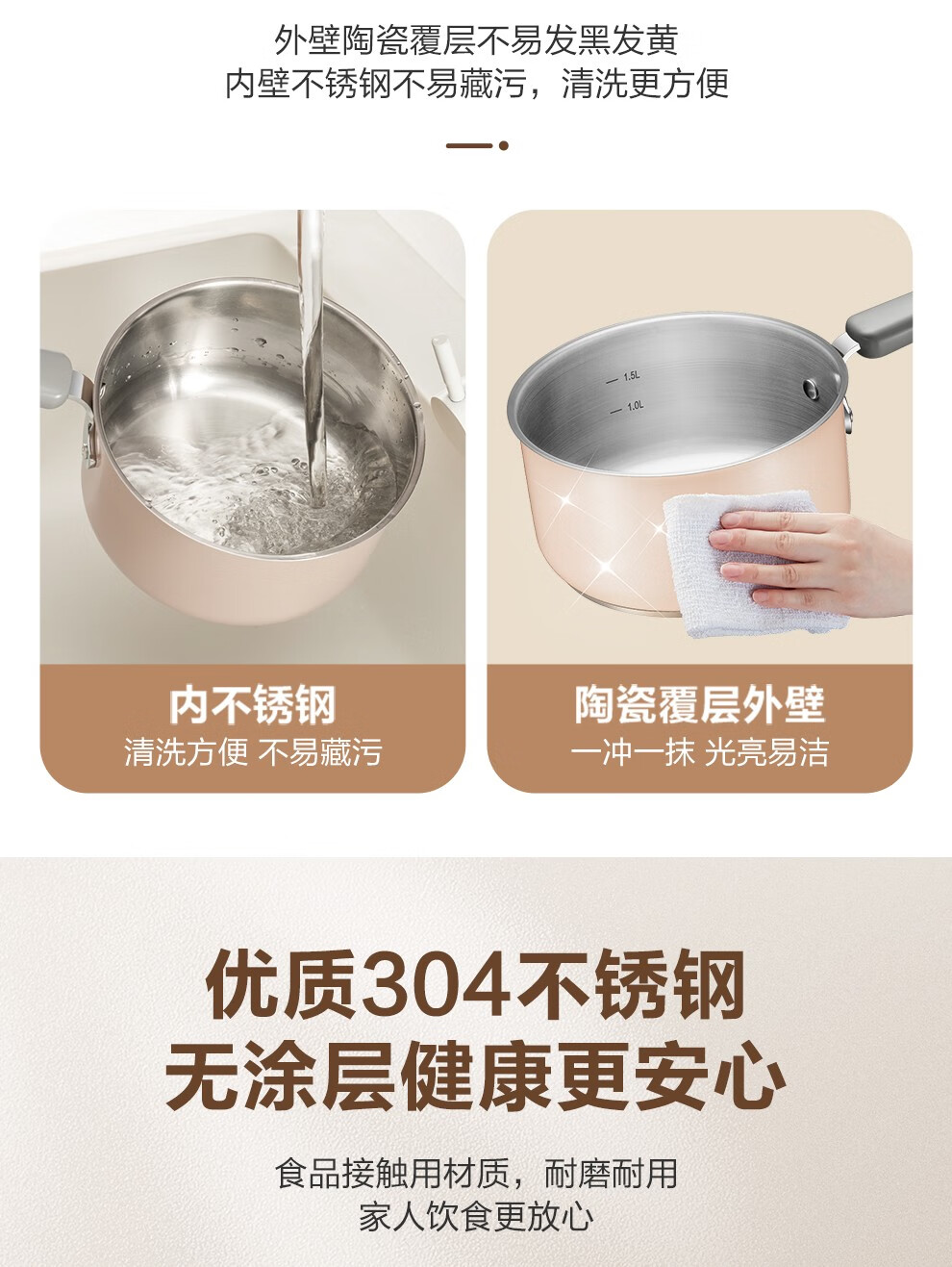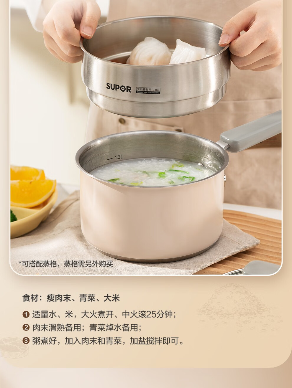 苏泊尔(SUPOR)奶锅外瓷内钢加深不锈钢汤奶锅耐用厨房家用多功能电磁炉明火通用 【2.3L 推荐2-3人用】 ST18JC1