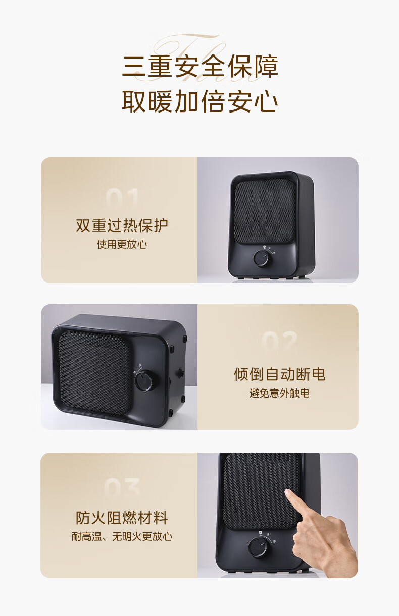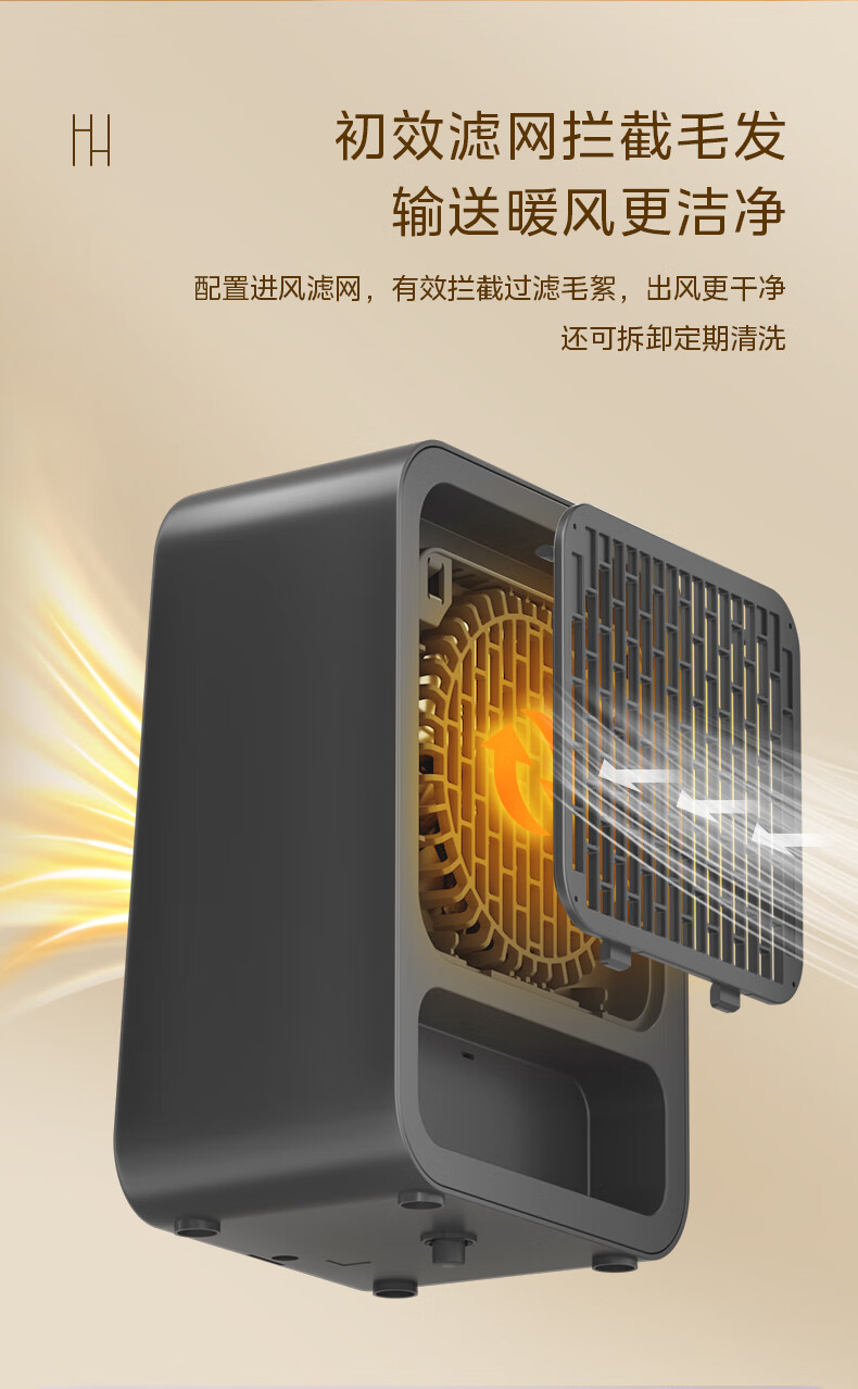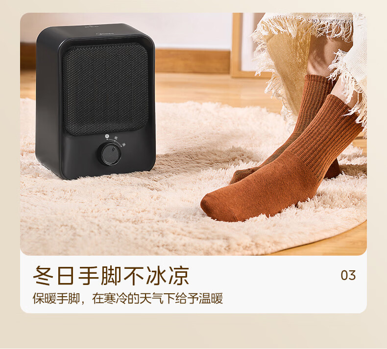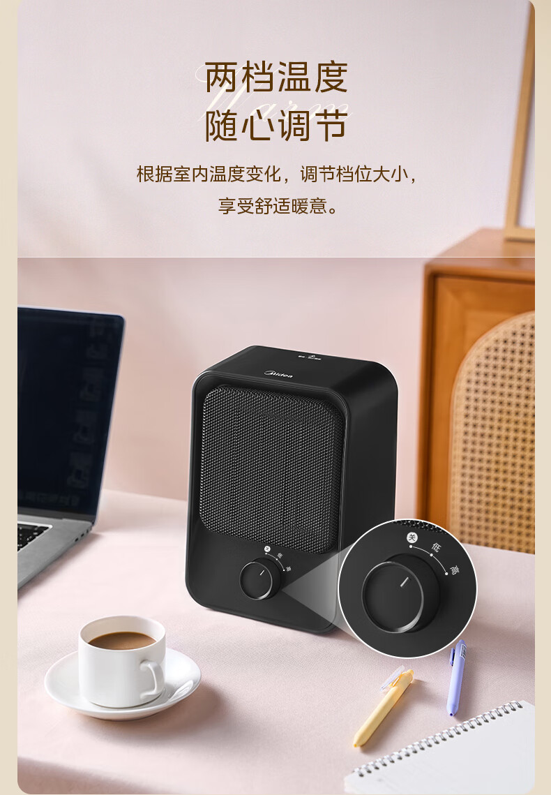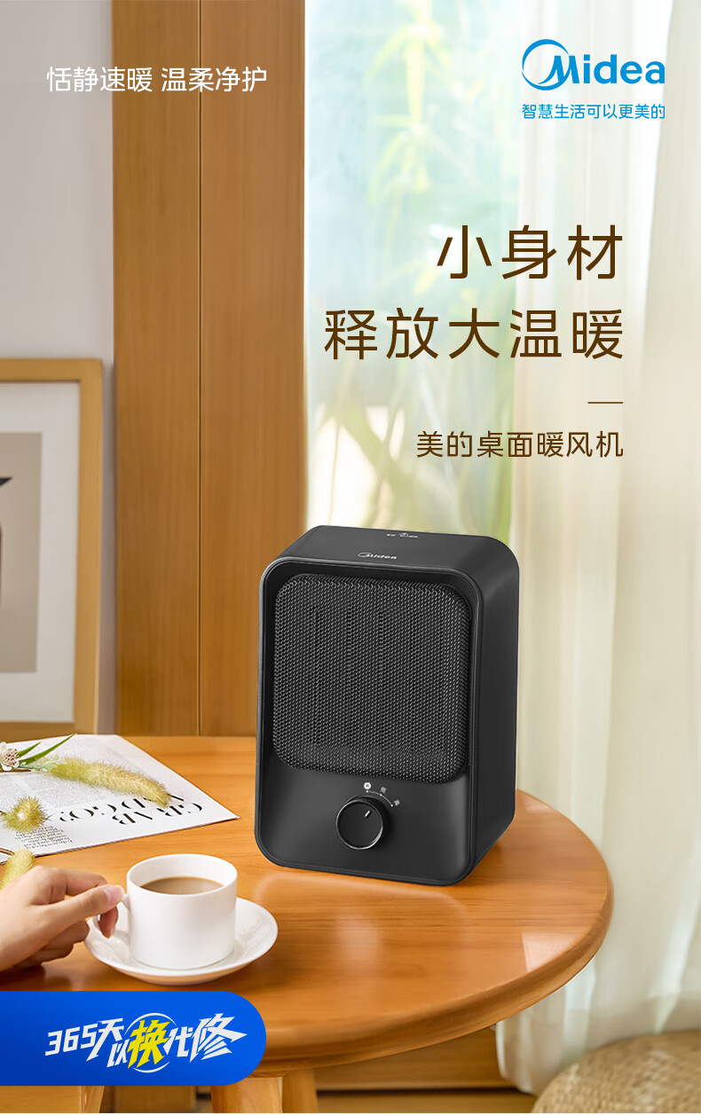 美的黑色 暖风机取暖器家用省电节能烤火炉热风机卧室小暖炉取暖神器NFU-T