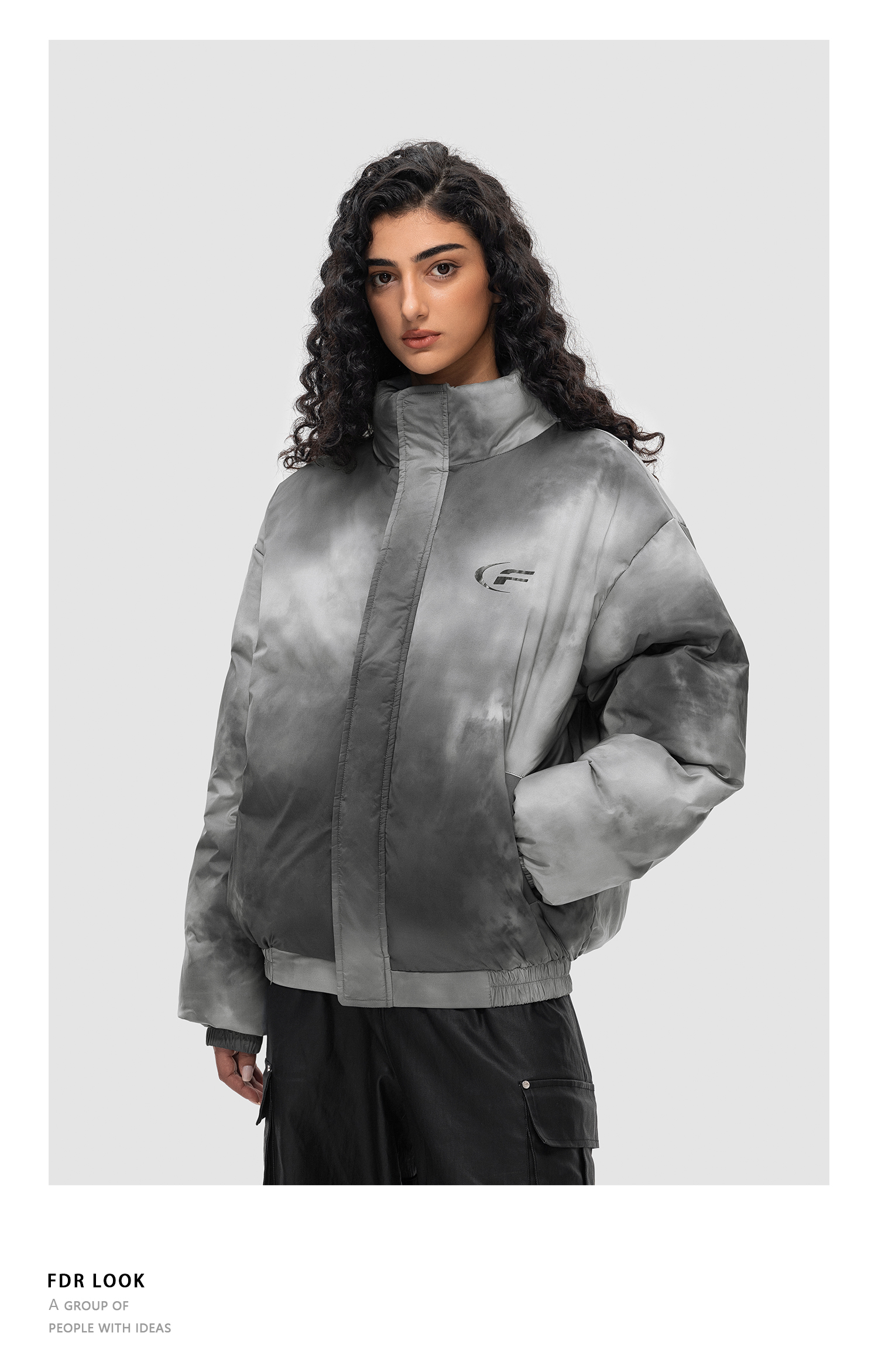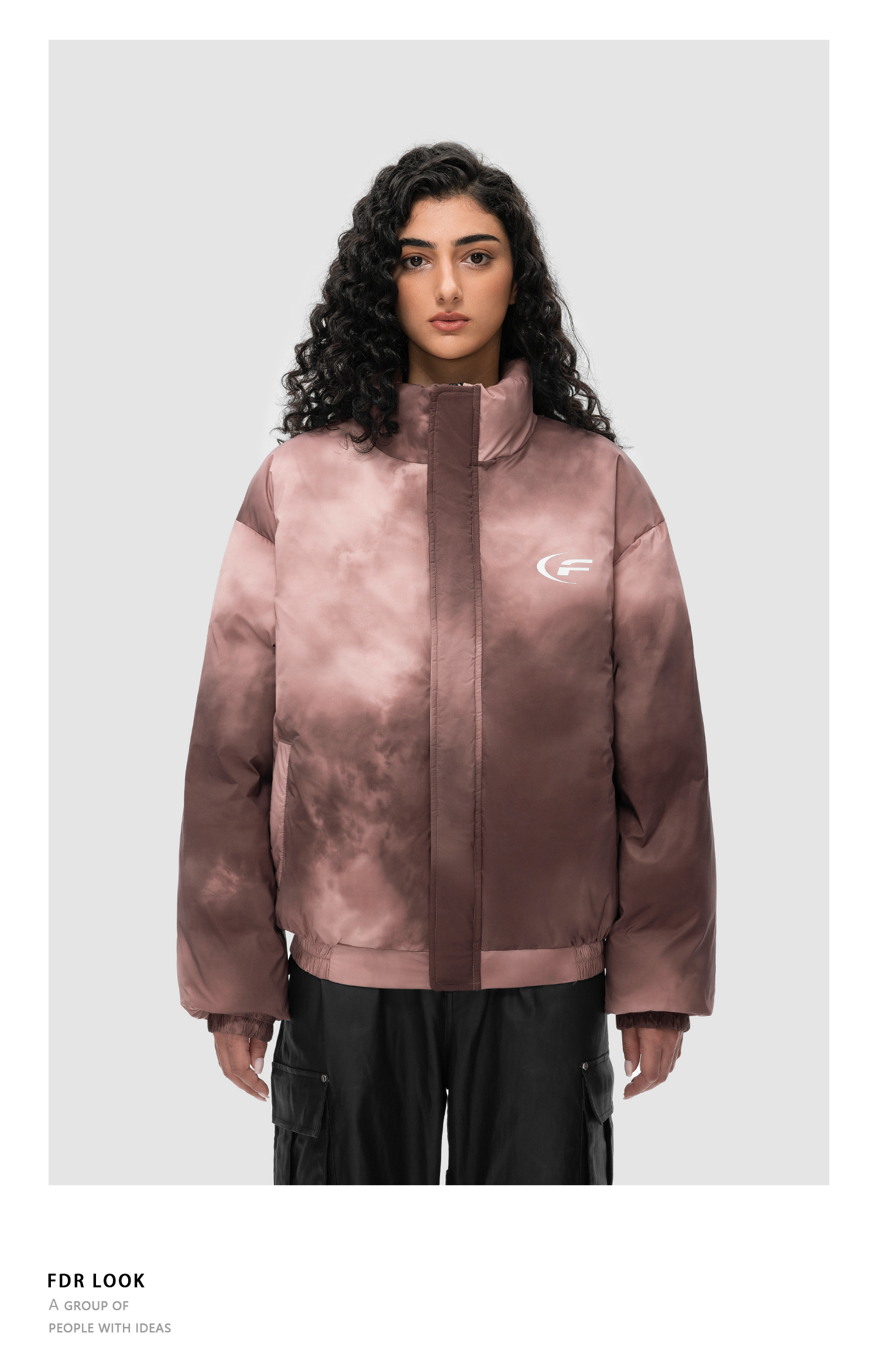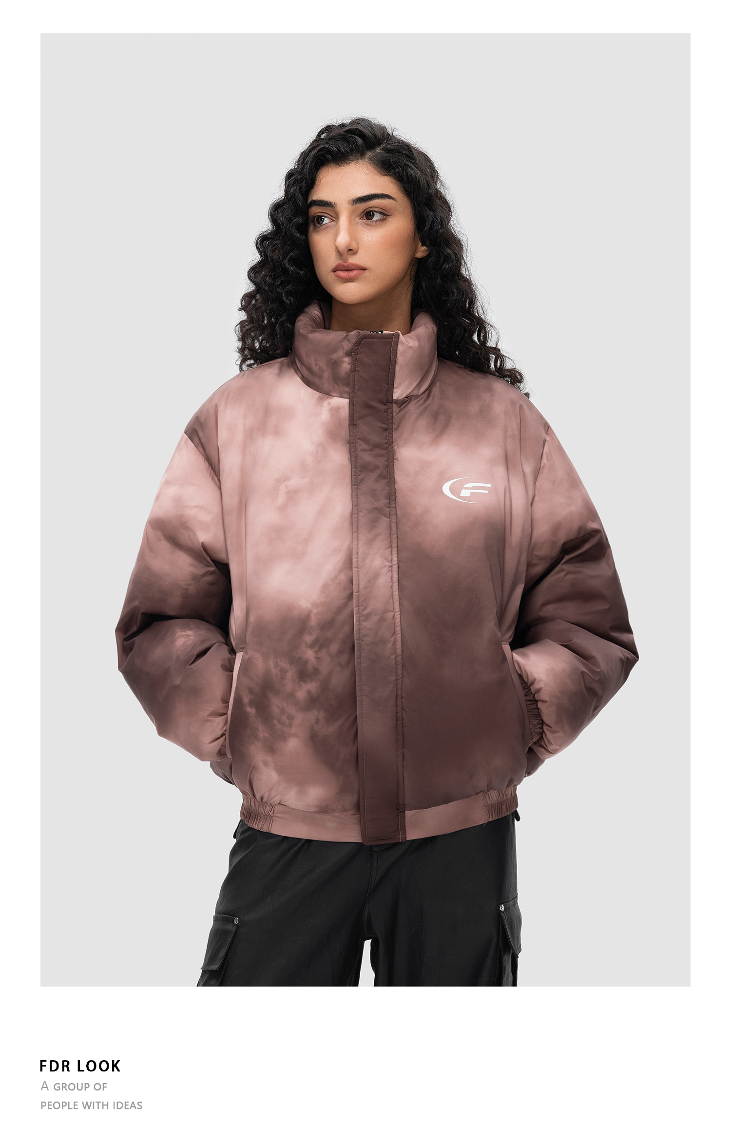 FDR 国潮美式扎染立领棉衣棉服男女秋冬季加厚情侣宽松面包服外套