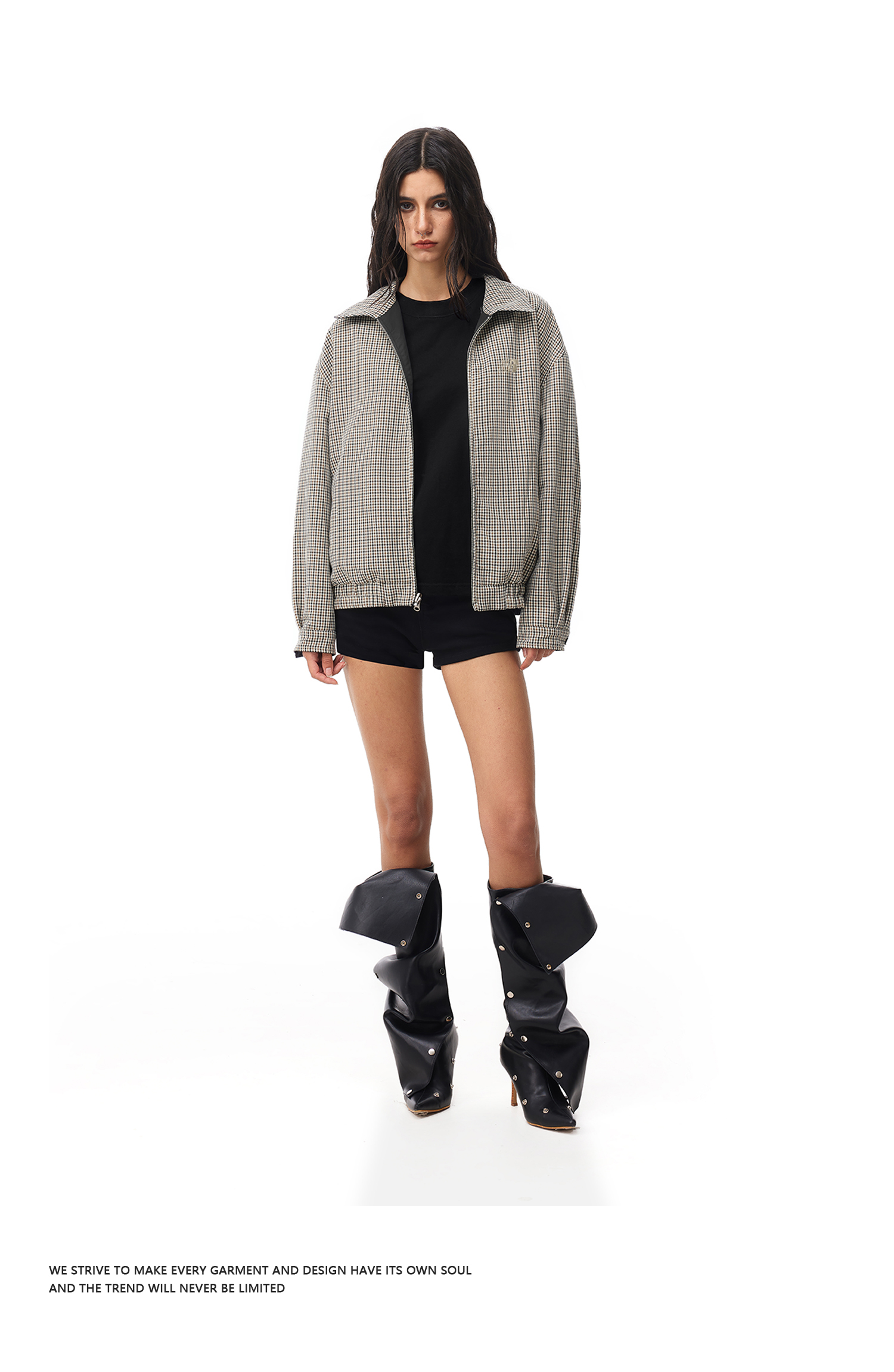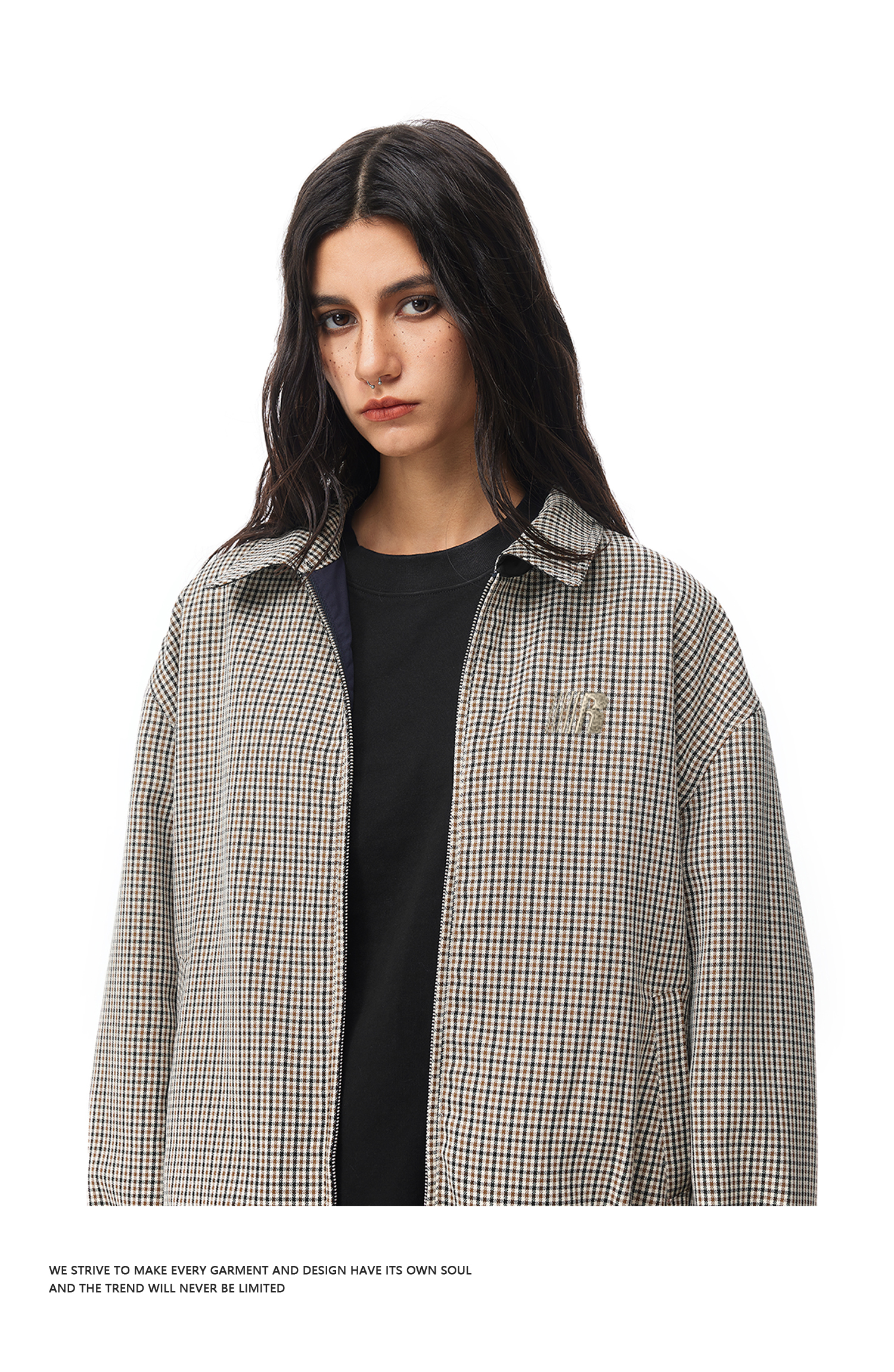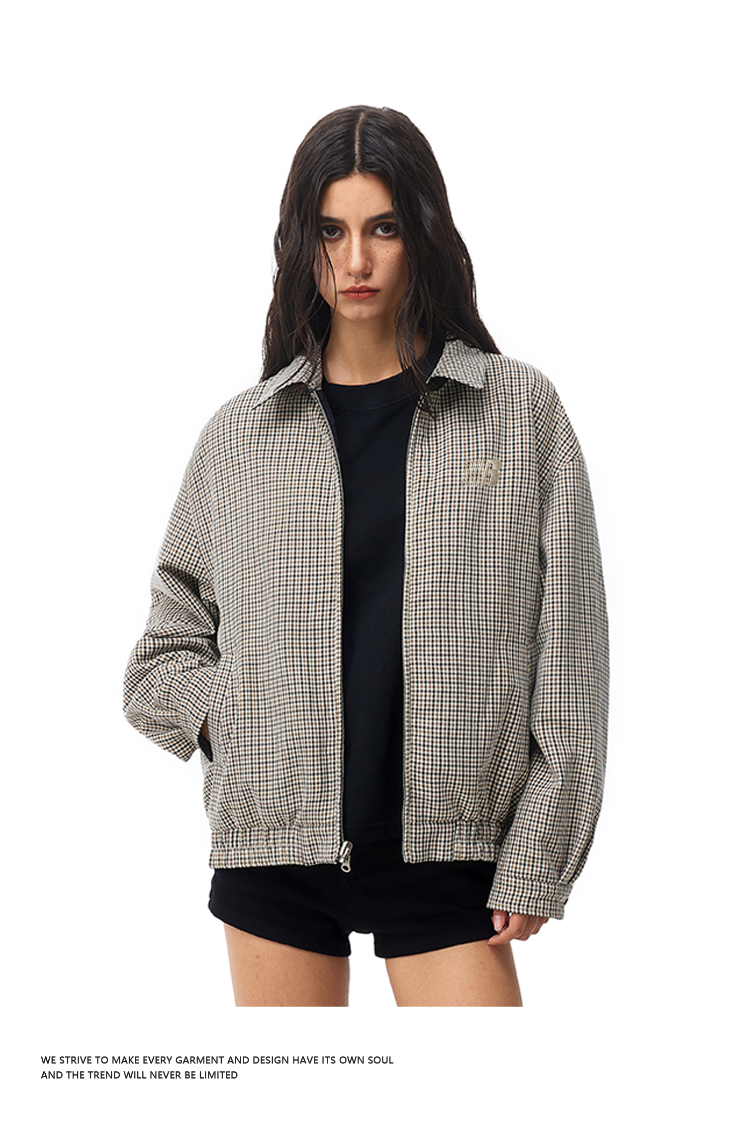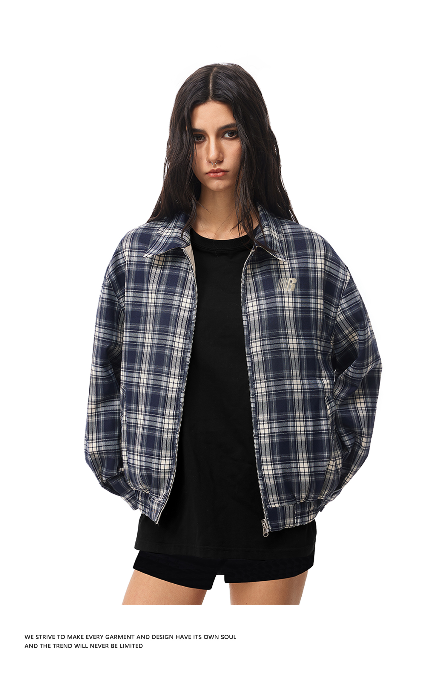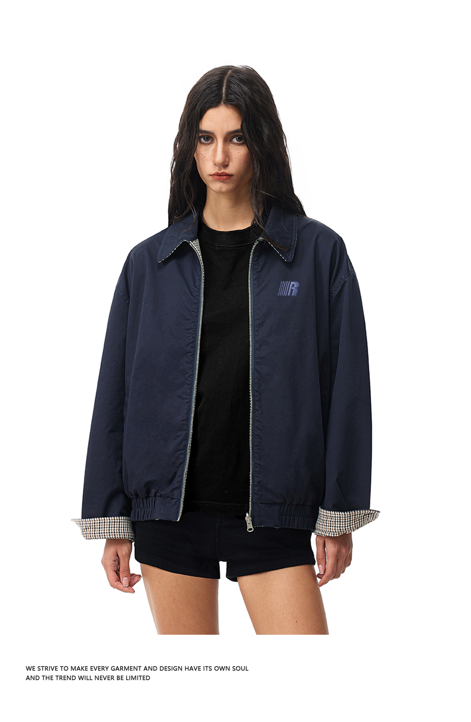 FDR官方店 正反两面穿拼格子哈灵顿夹克外套男女春季情侣翻领上衣