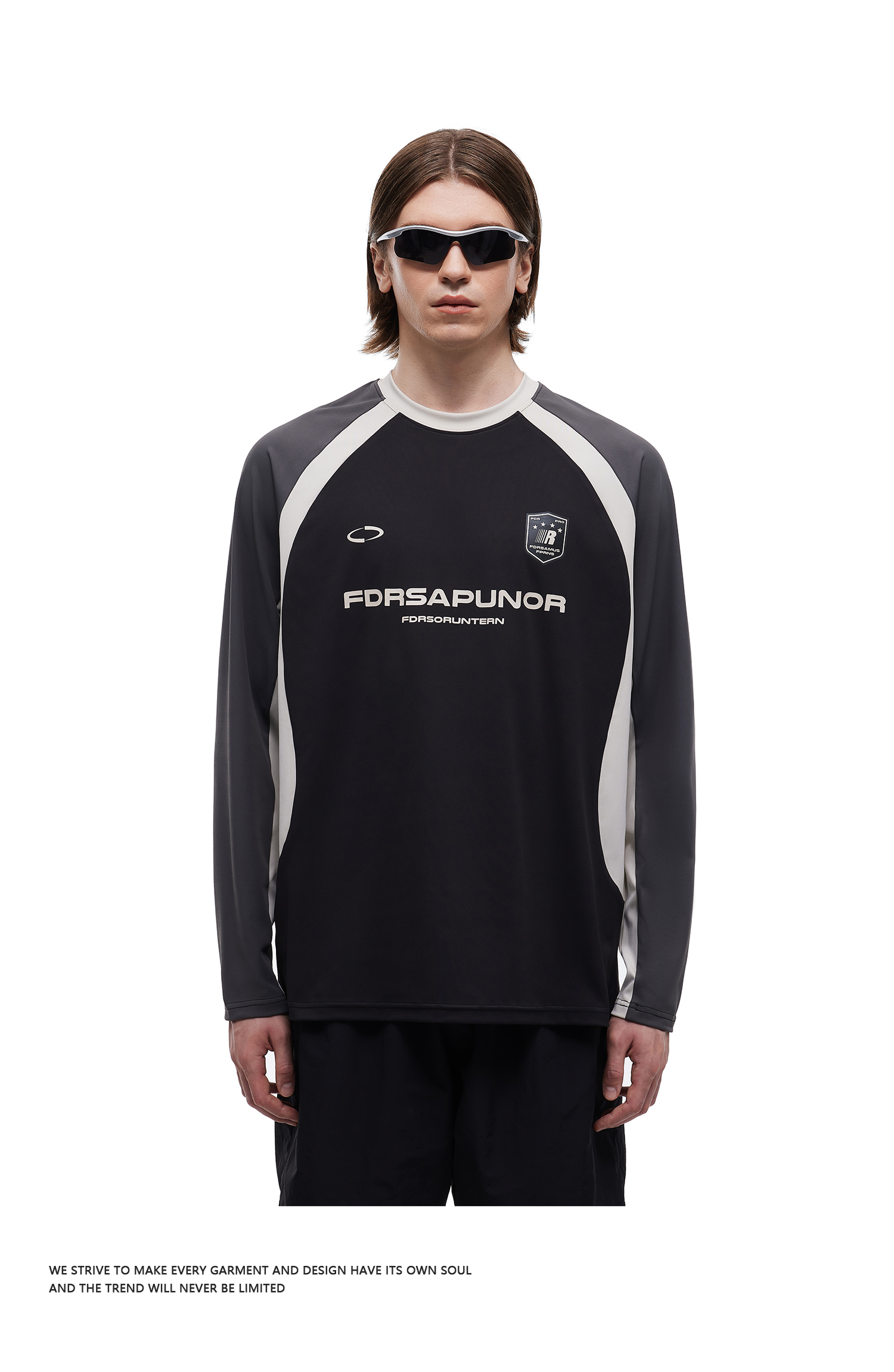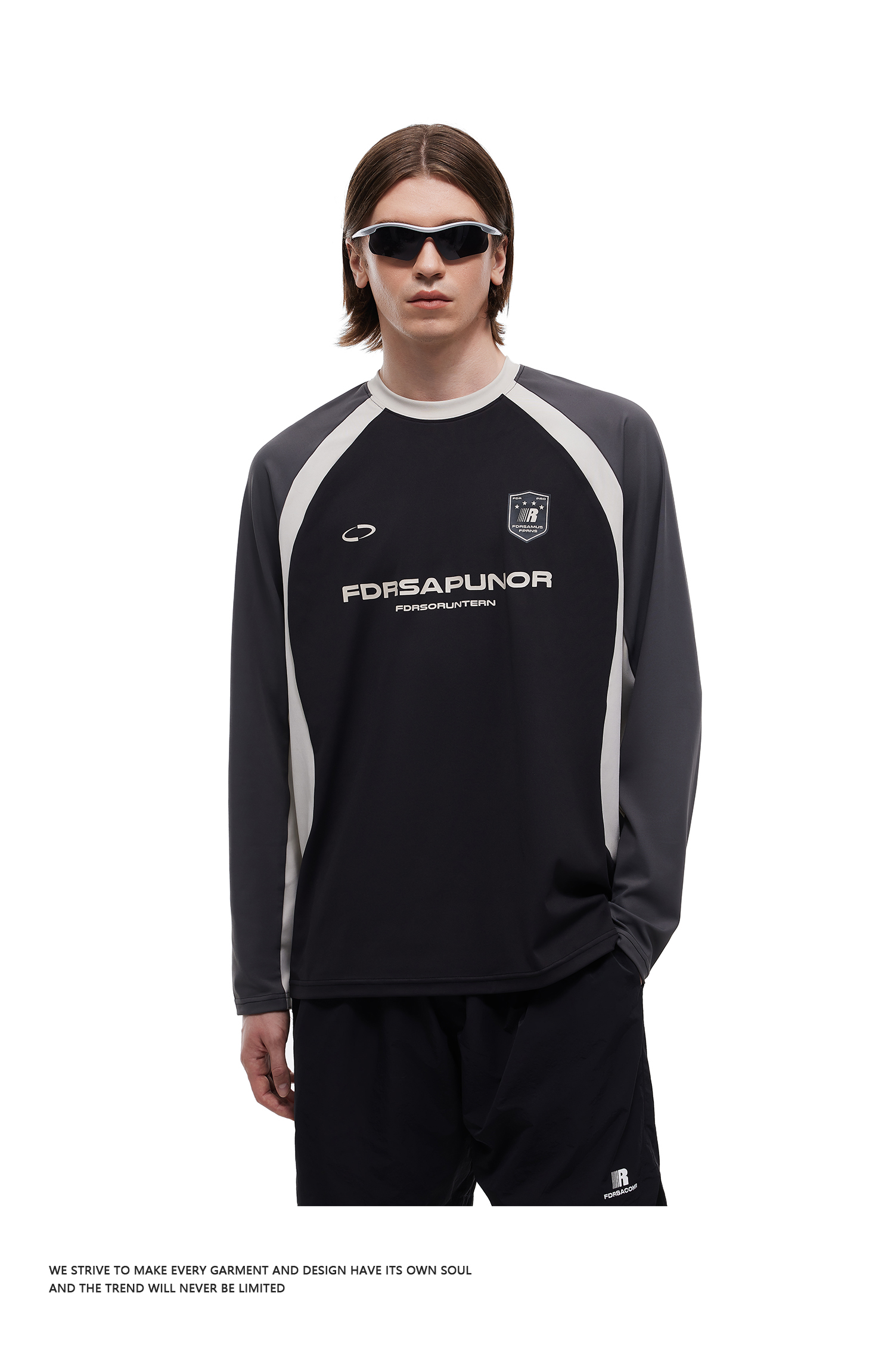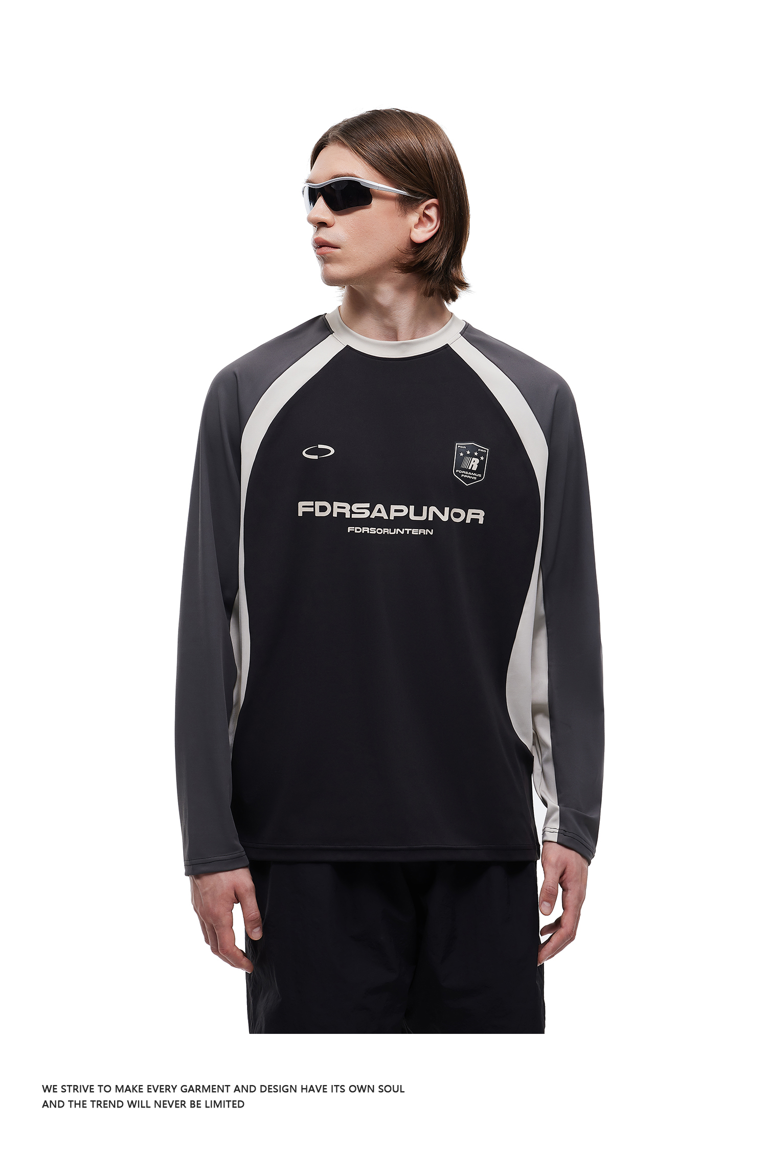 FDR官方店 复古运动拼接长袖t恤男女春季撞色宽松薄款情侣装上衣