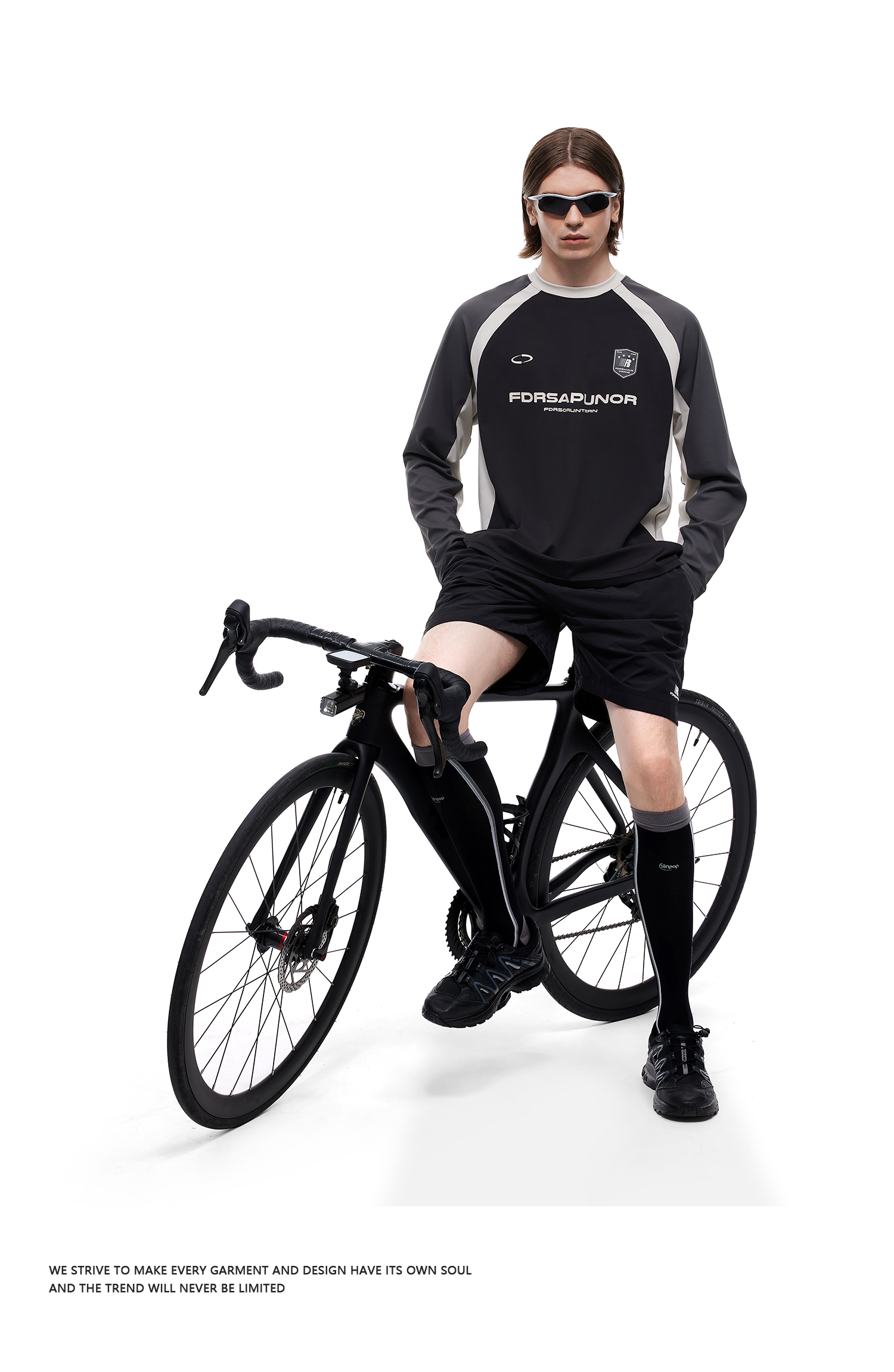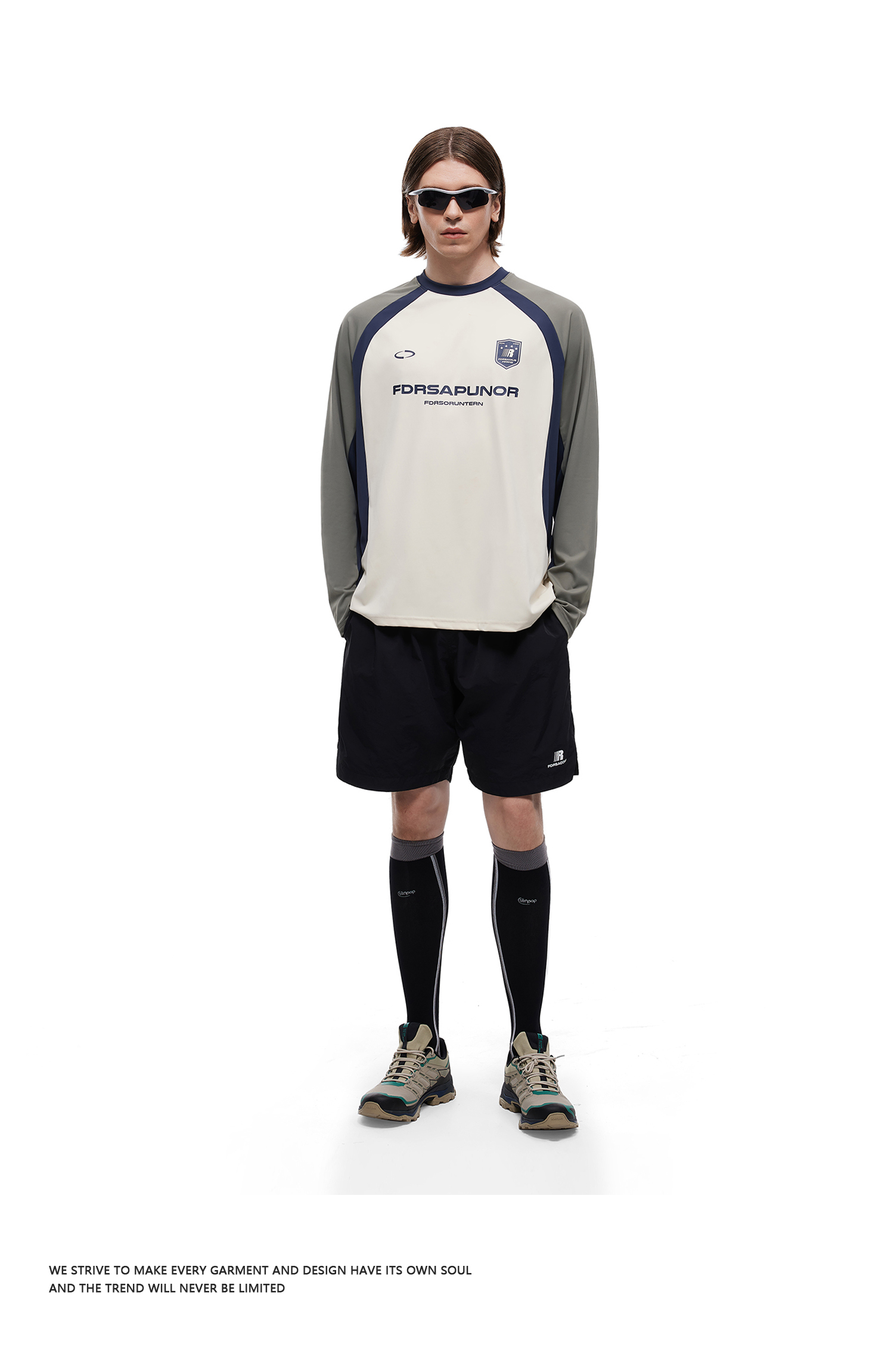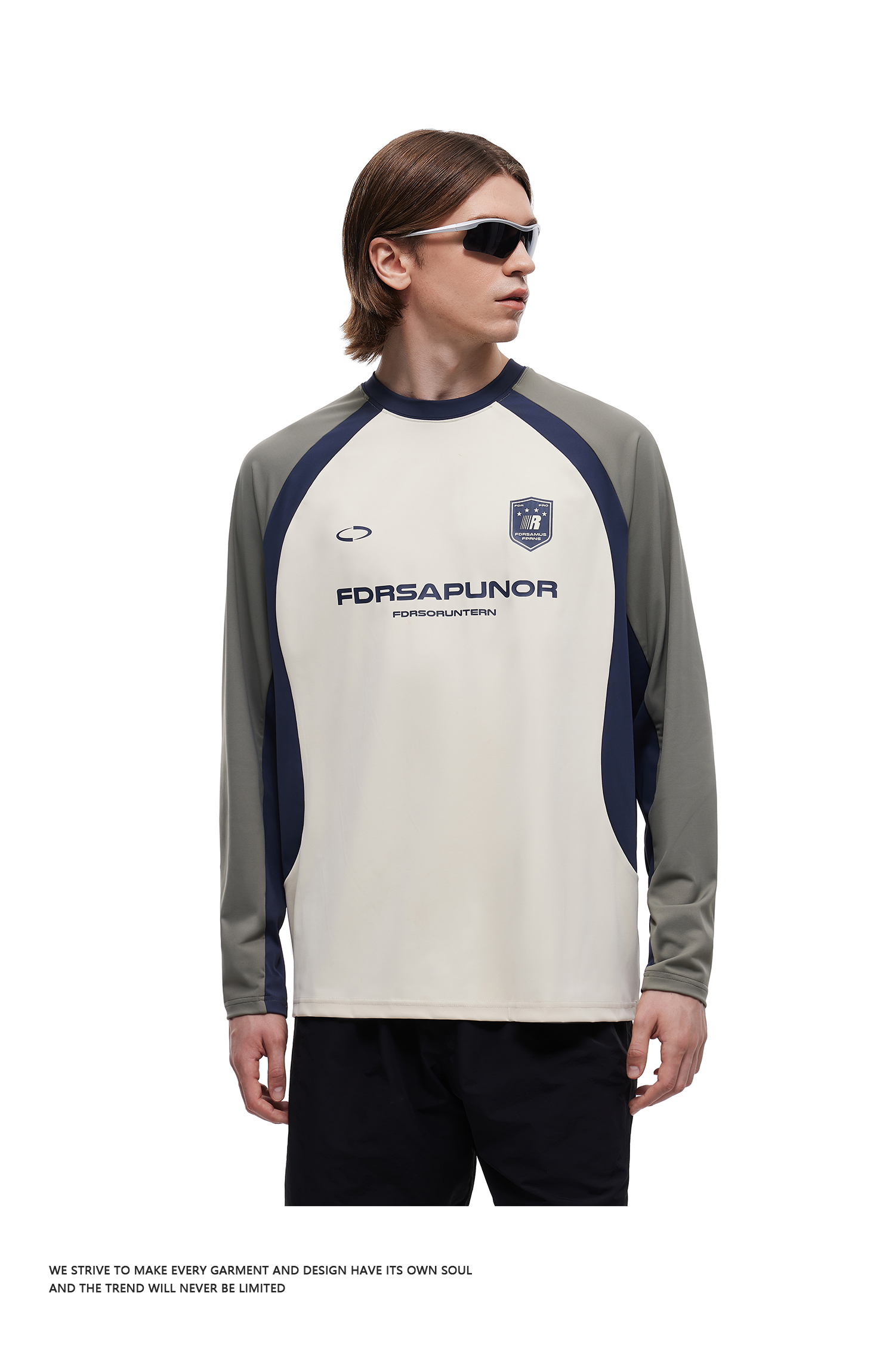 FDR官方店 复古运动拼接长袖t恤男女春季撞色宽松薄款情侣装上衣