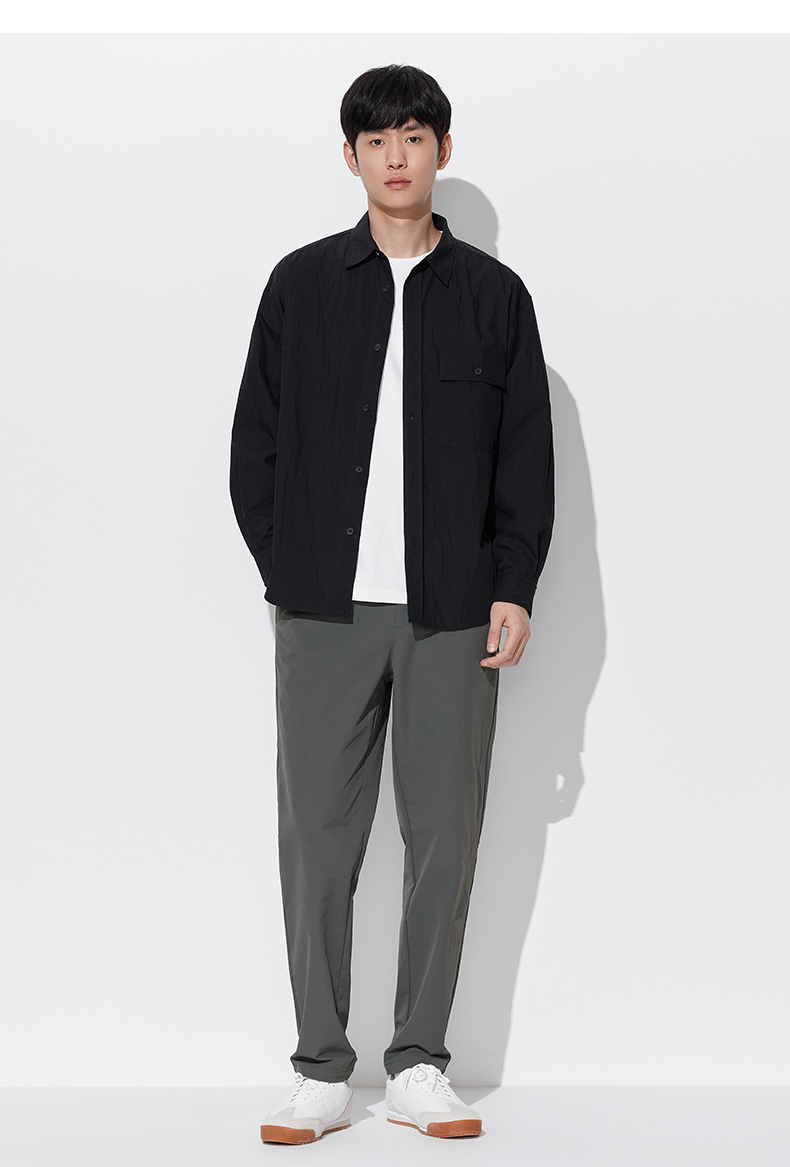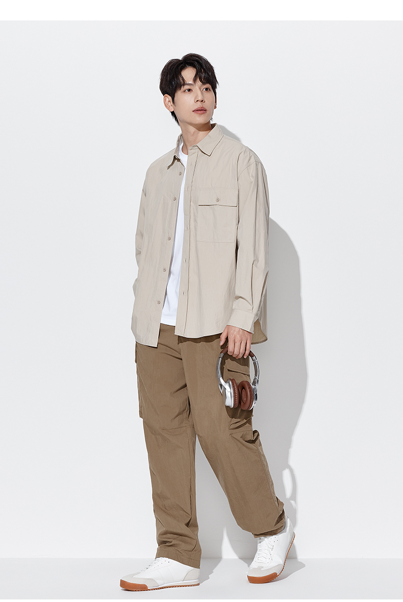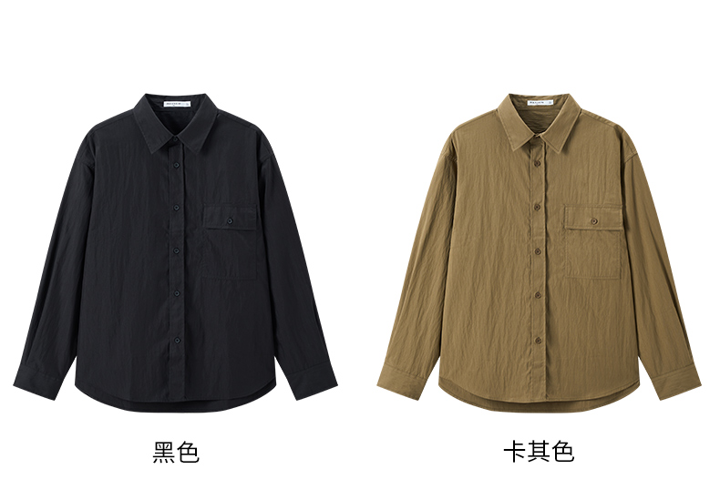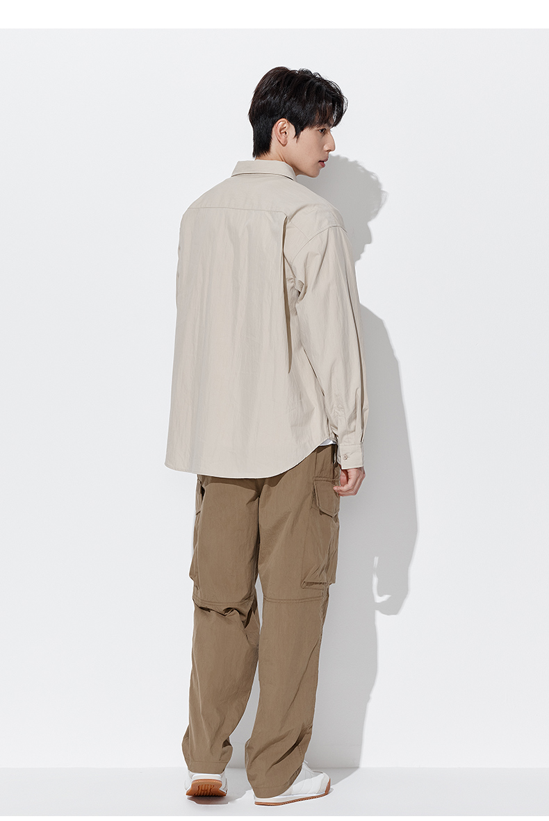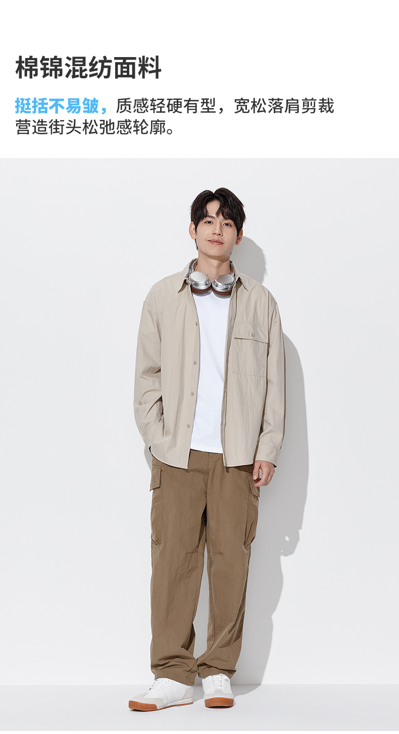 马恩MAXNEW男装2025秋季新款长袖衬衫男士宽松纯色长袖翻领外套男