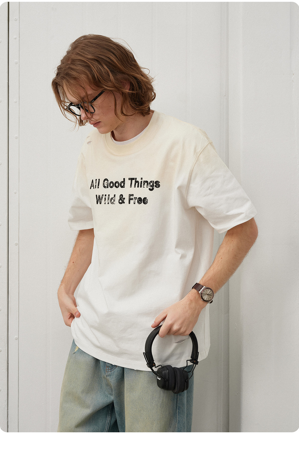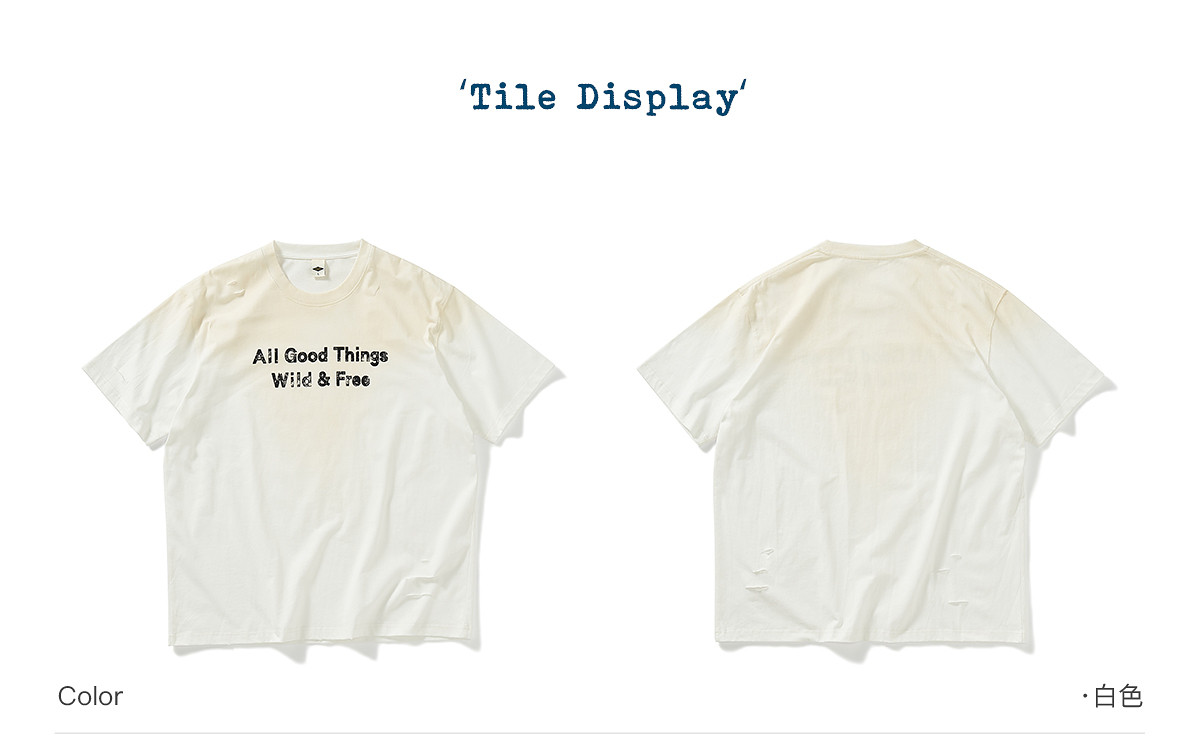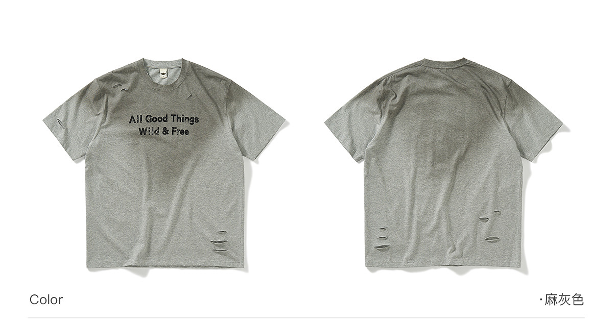 714street夏季新款重磅260g复古水洗破洞印花宽松短袖T恤男情侣装