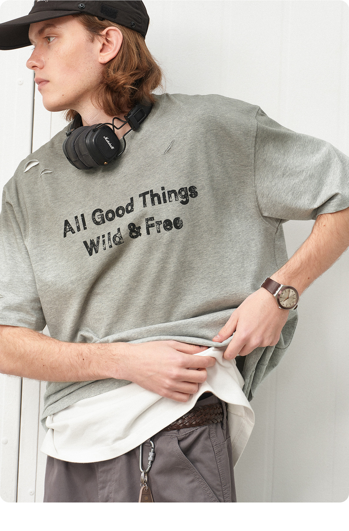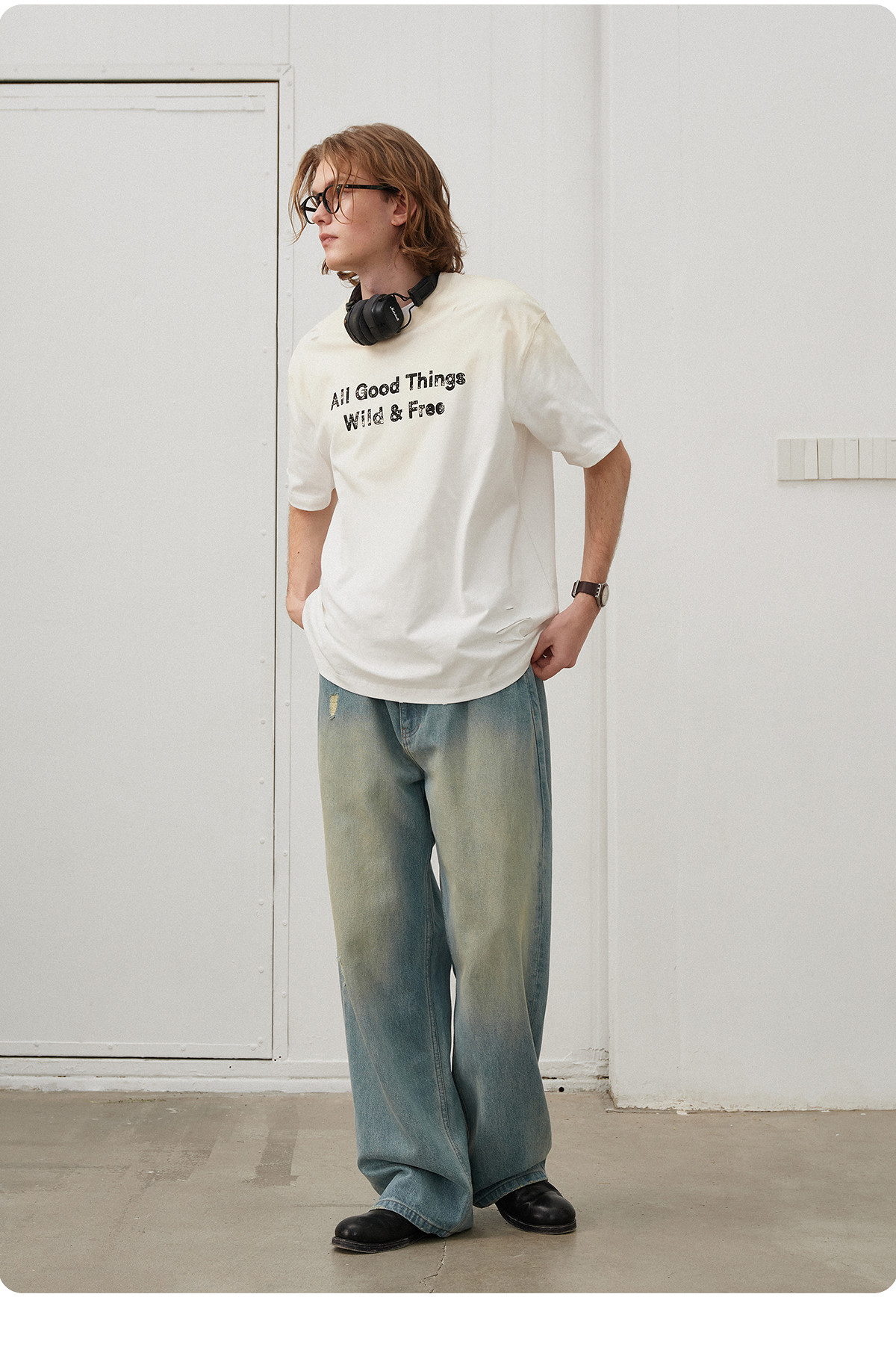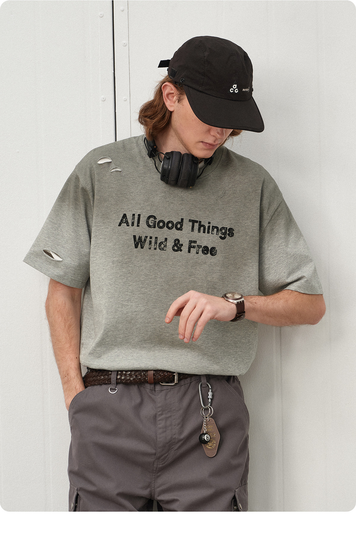 714street夏季新款重磅260g复古水洗破洞印花宽松短袖T恤男情侣装