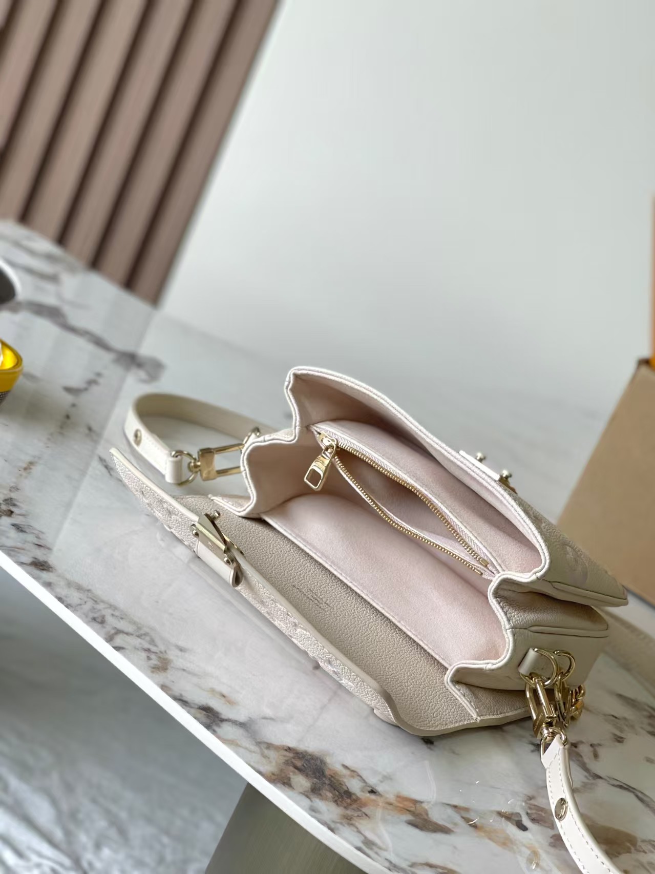 小号 East West Métis 手袋 邮差包出小号 East West Métis 手袋采用时尚肩背书包造型,富有潮流感。小巧包身选用柔软的Monogram Empreinte皮革面料,配有别致的 S-lock 锁扣和时髦顶部手柄,抛光表面亮泽耀眼。功能多样,空间宽敞。可脱卸长肩带便于肩背或斜挎,乃日常出行良伴。