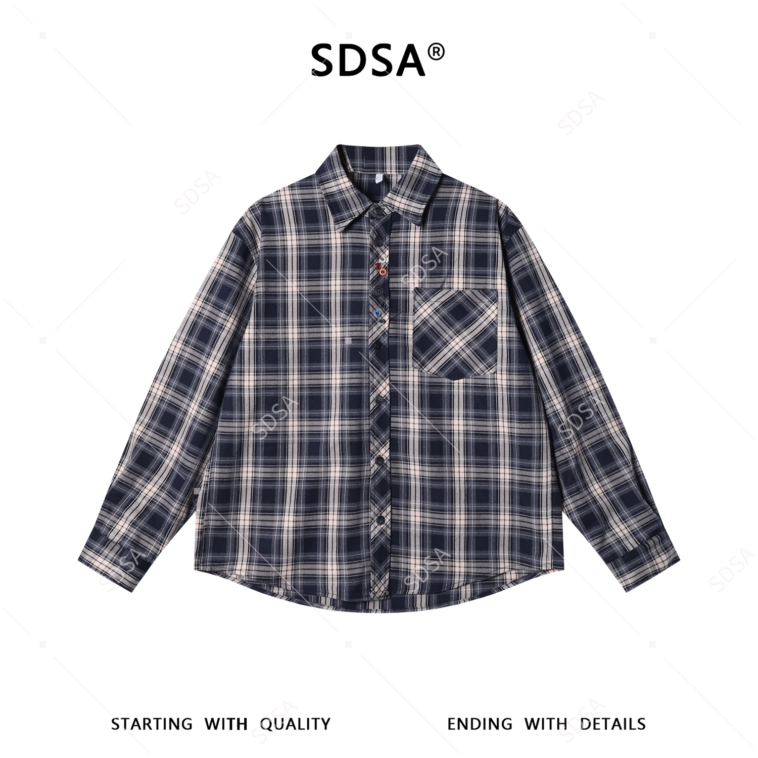 26CS41SDSA男装2026新款高贵轻奢韩版时尚撞色格纹格子翻领长袖衬衫百搭
