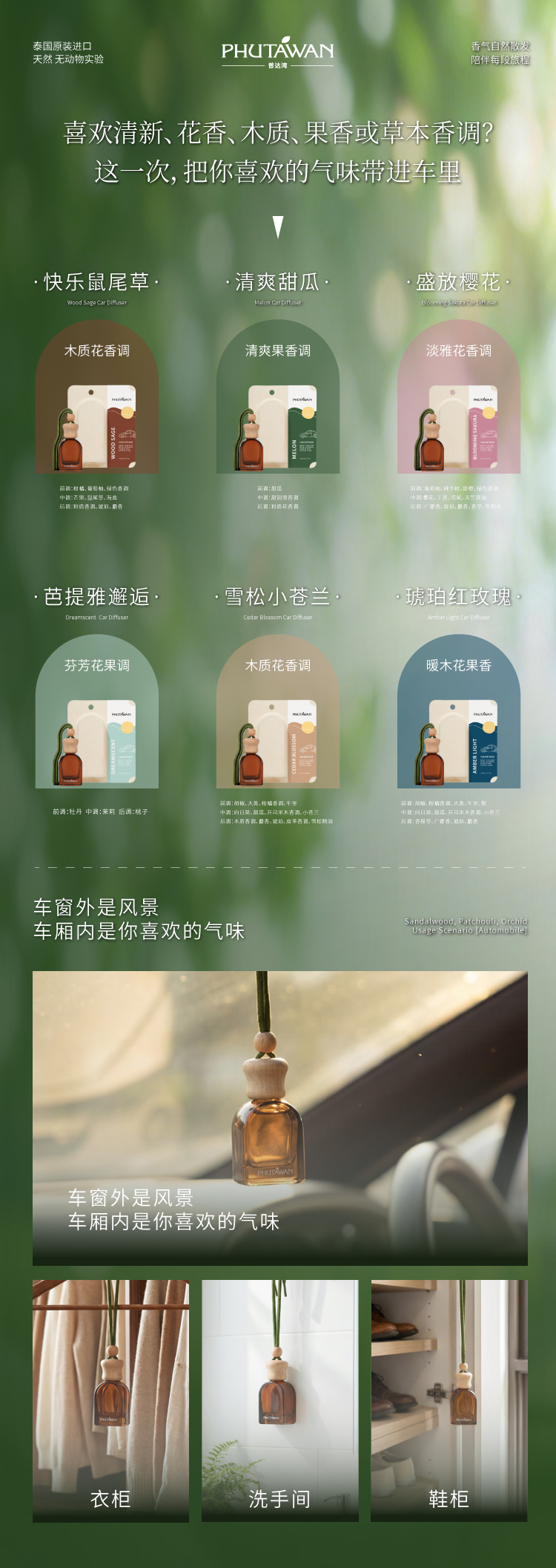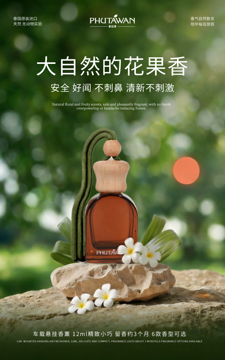PHUTAWAN普达湾泰国进口汽车香薰挂件衣柜汽车用精油香氛礼物12ml