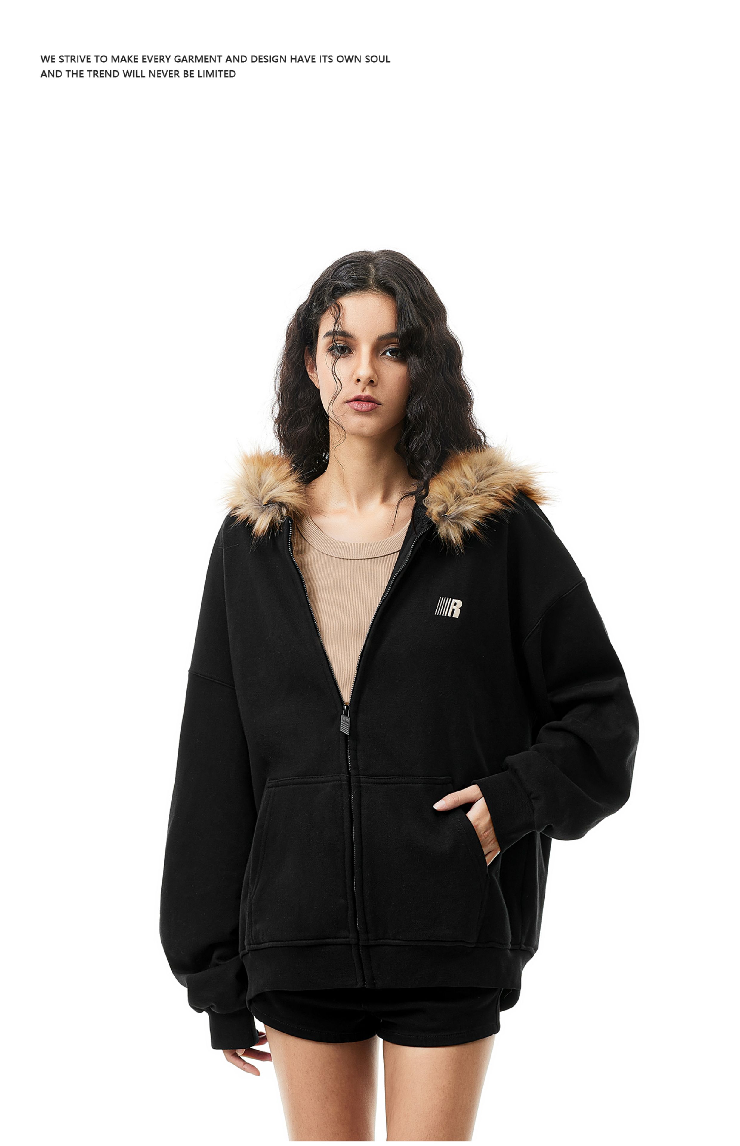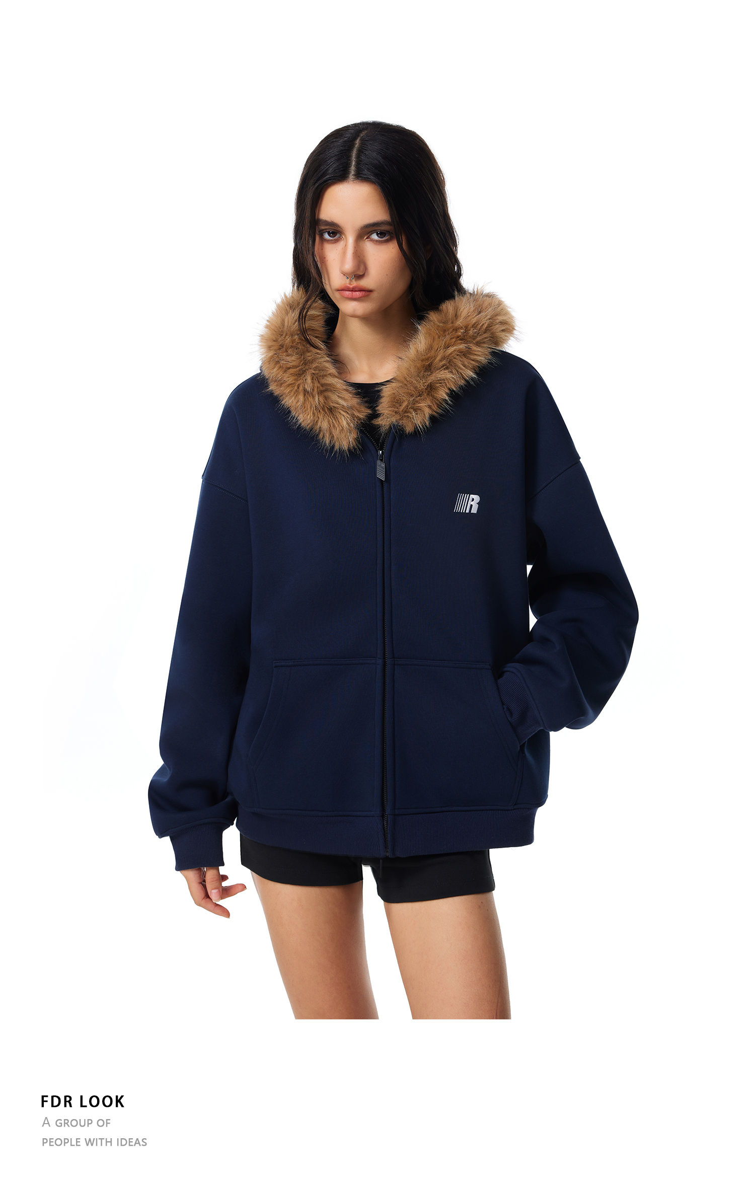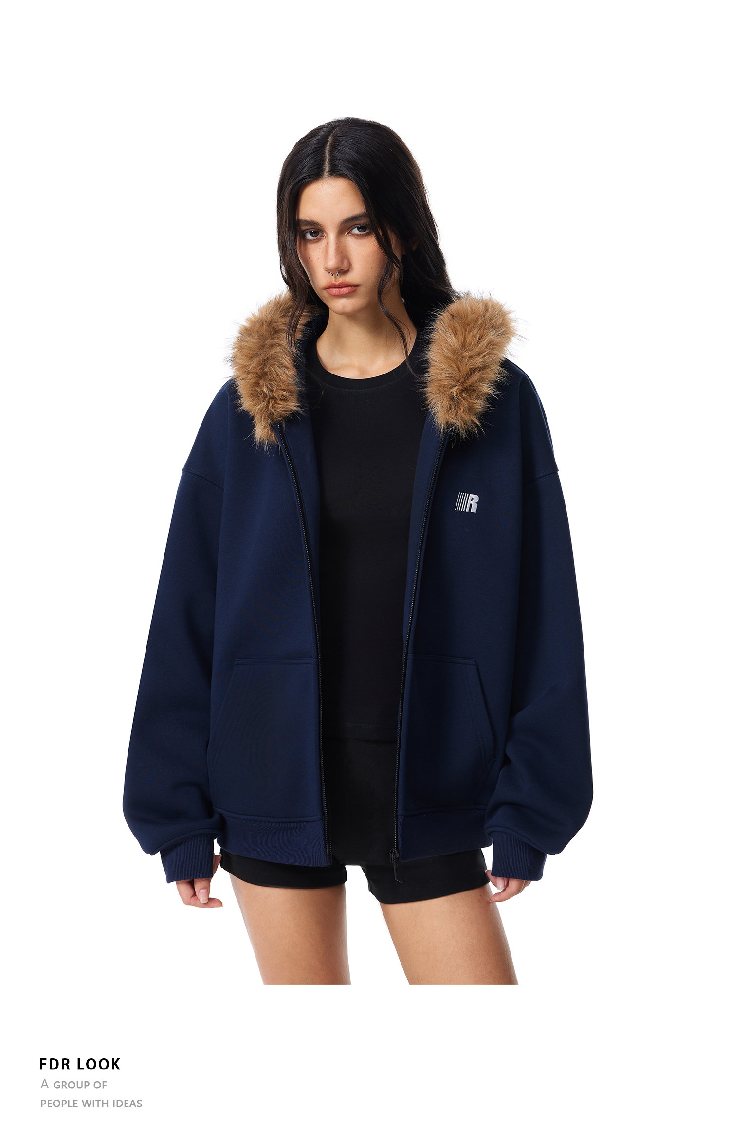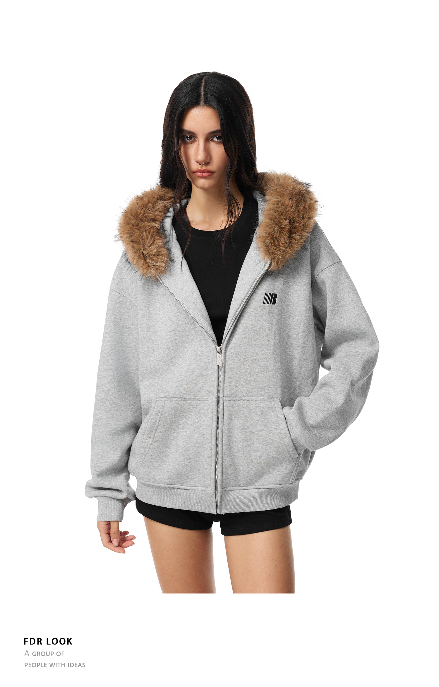 【景研竣同款】FDR 美式复古毛领开衫连帽卫衣外套男女秋季上衣