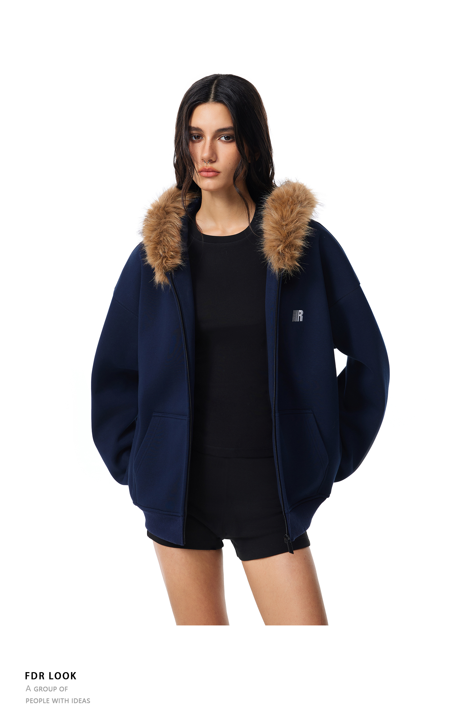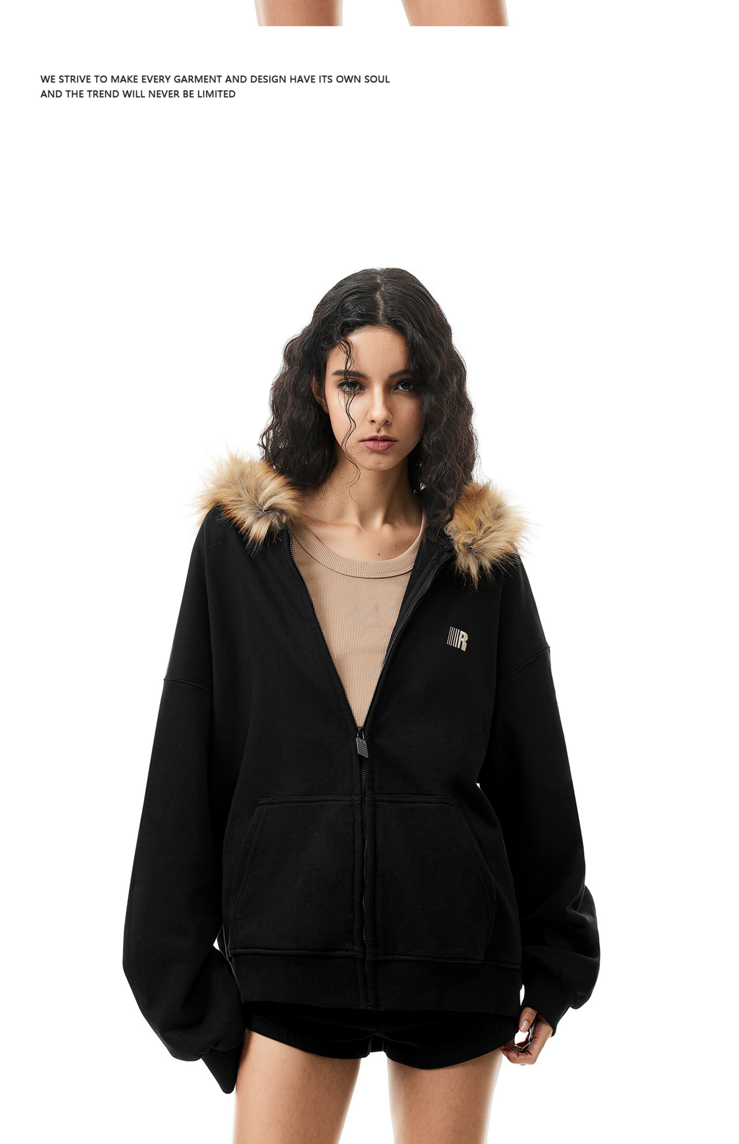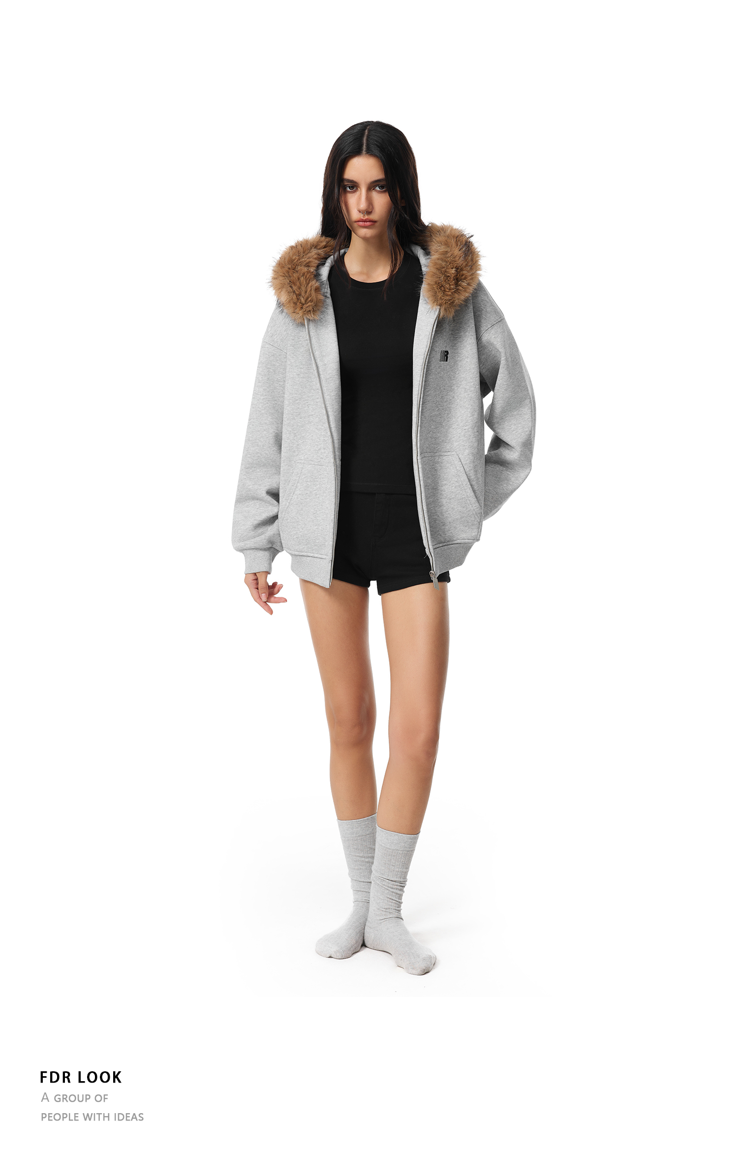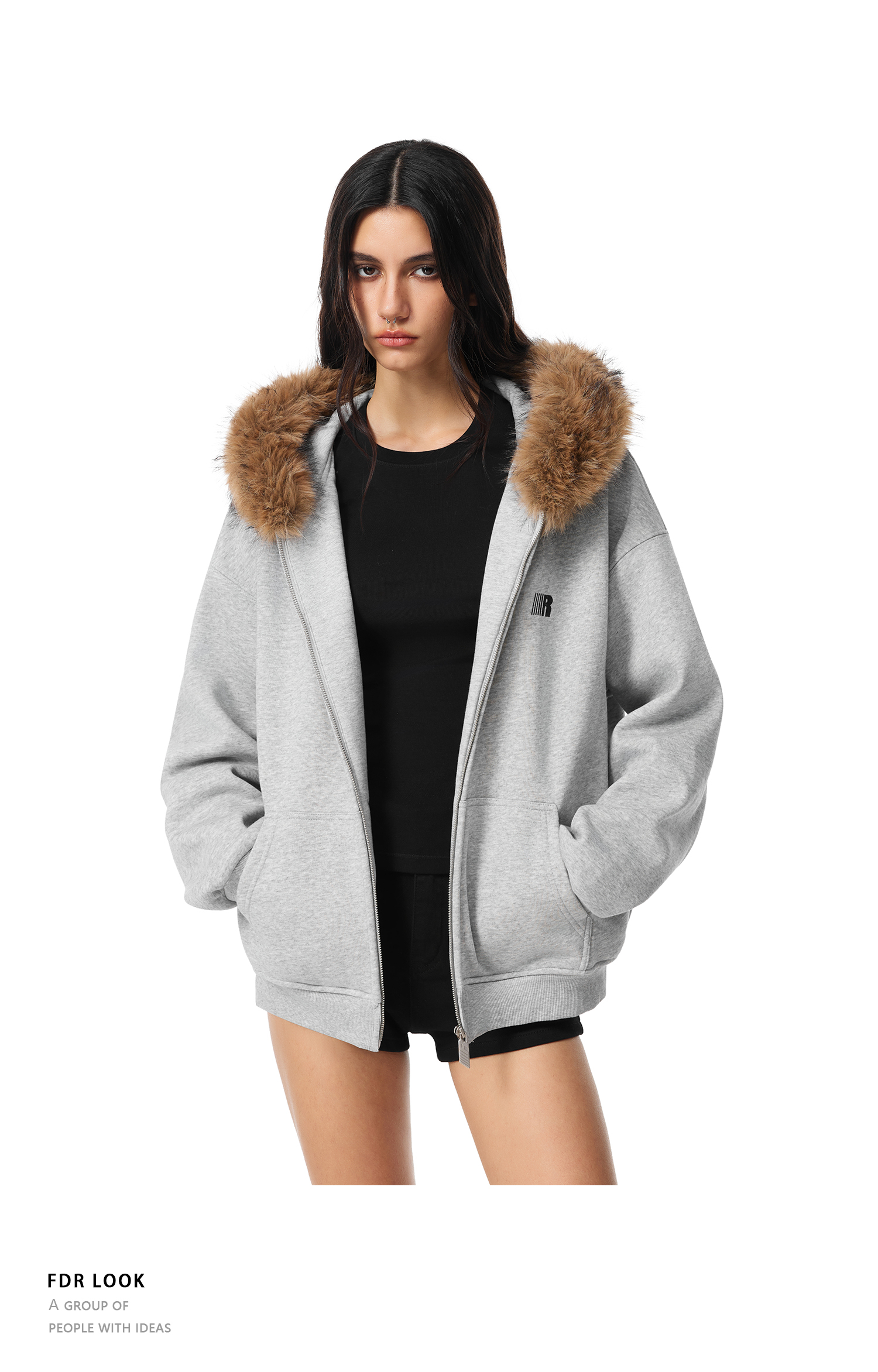 【景研竣同款】FDR 美式复古毛领开衫连帽卫衣外套男女秋季上衣