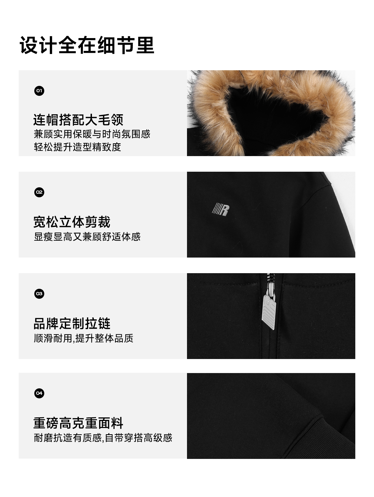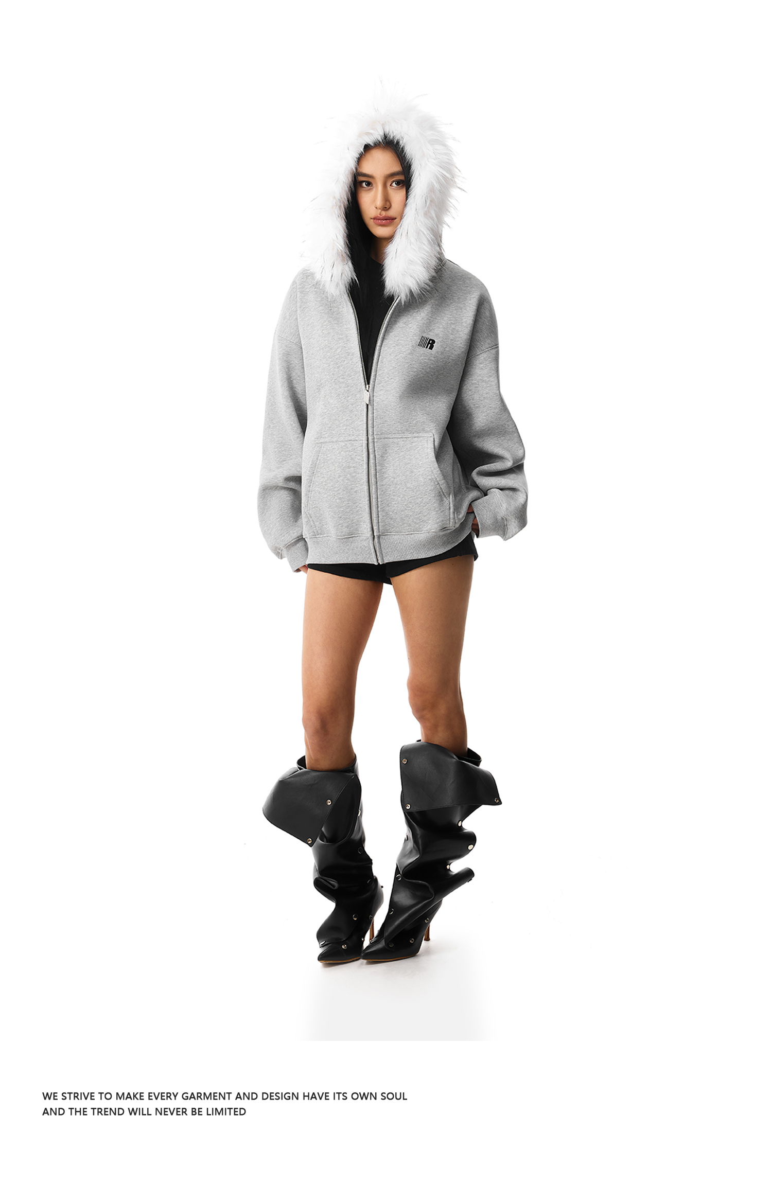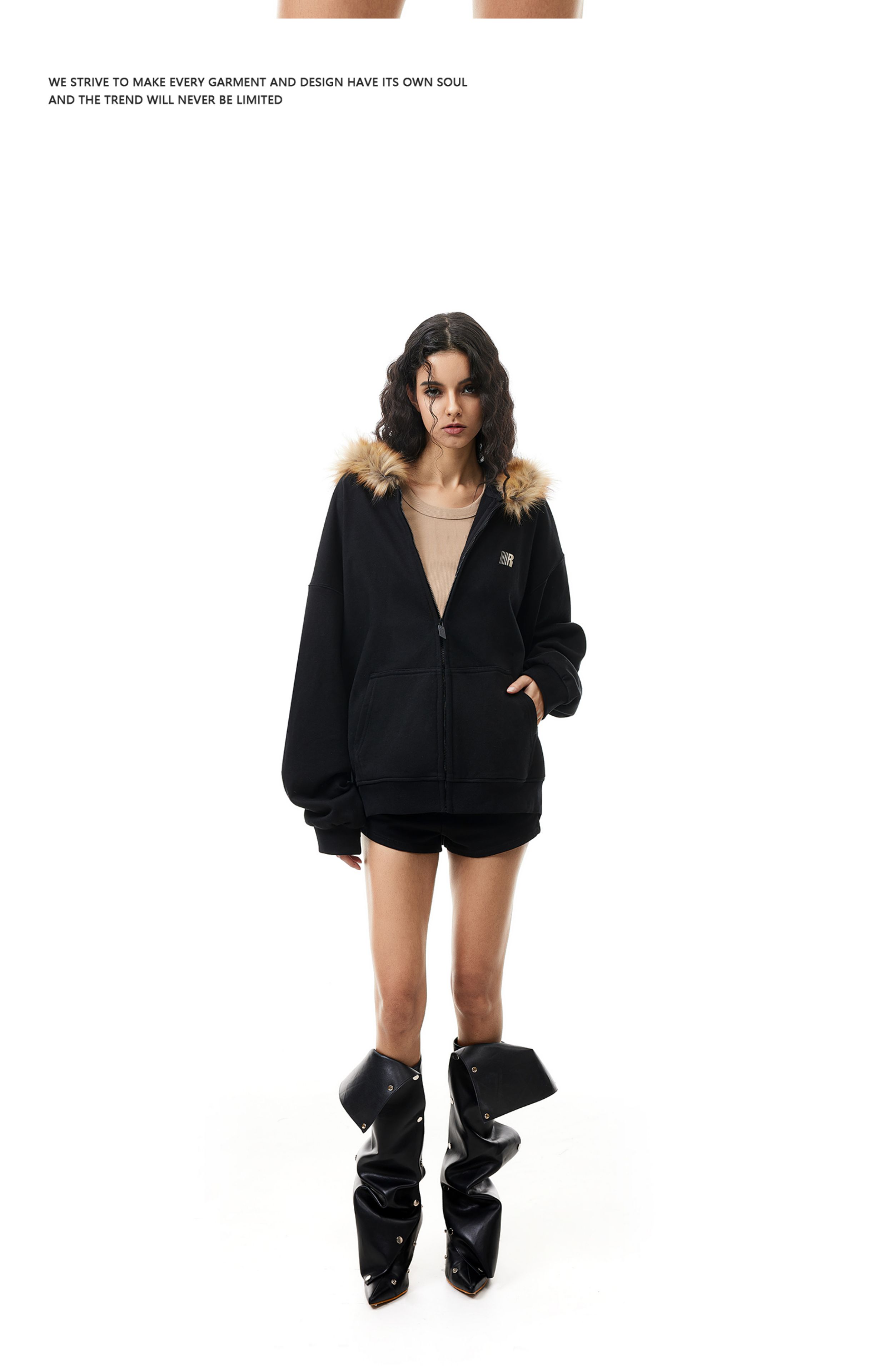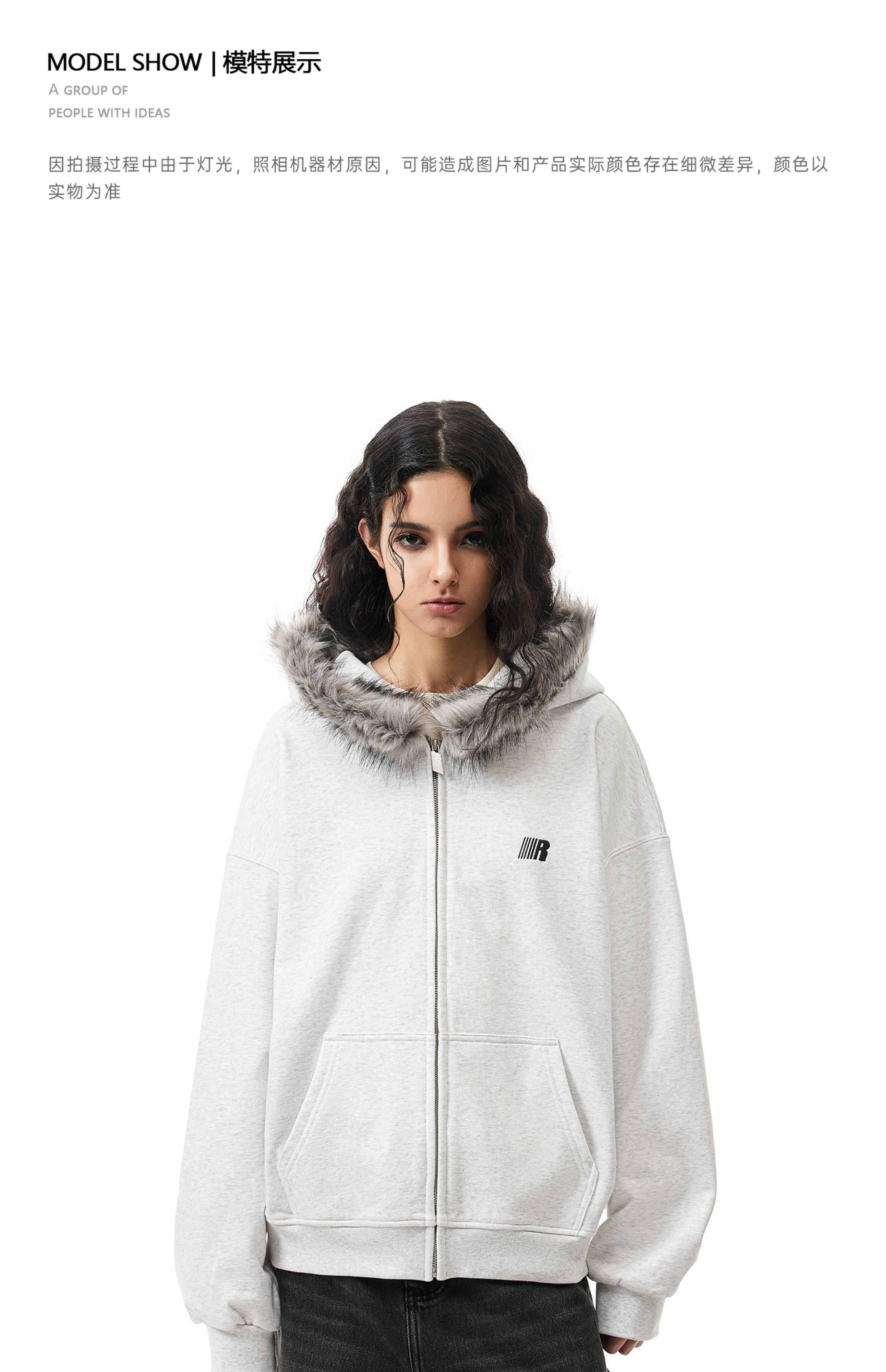 【景研竣同款】FDR 美式复古毛领开衫连帽卫衣外套男女秋季上衣