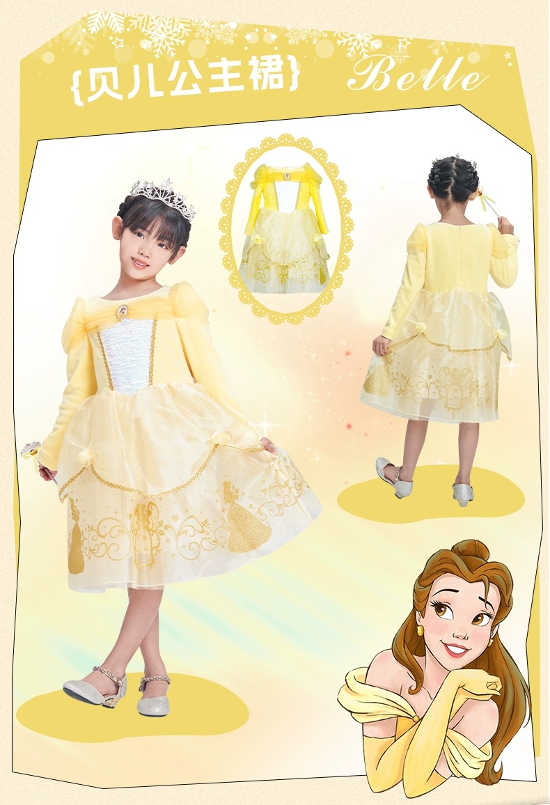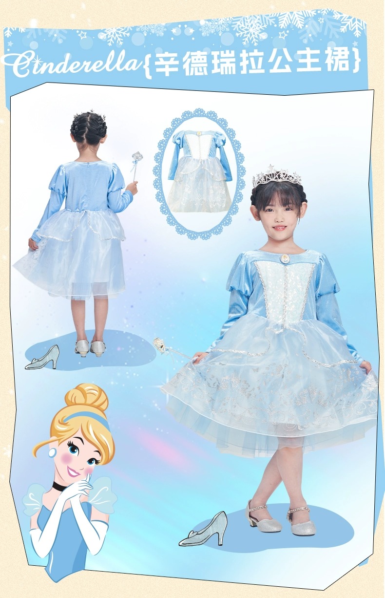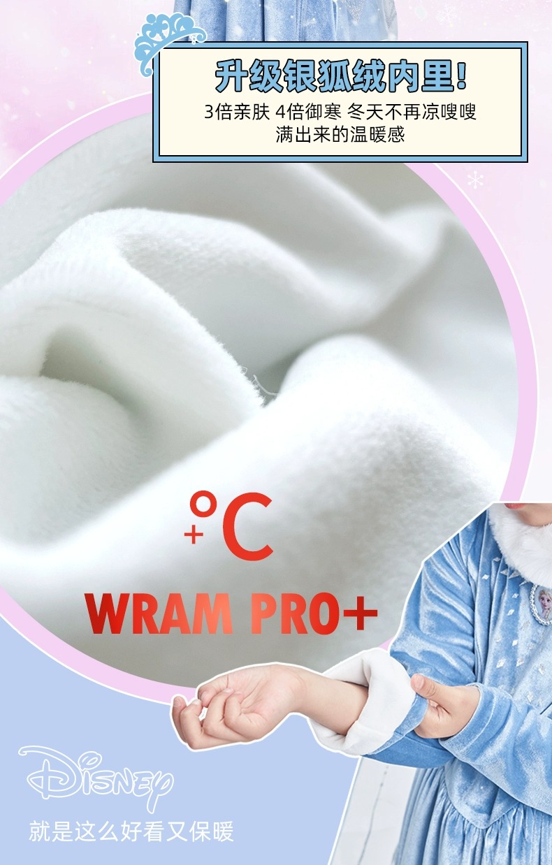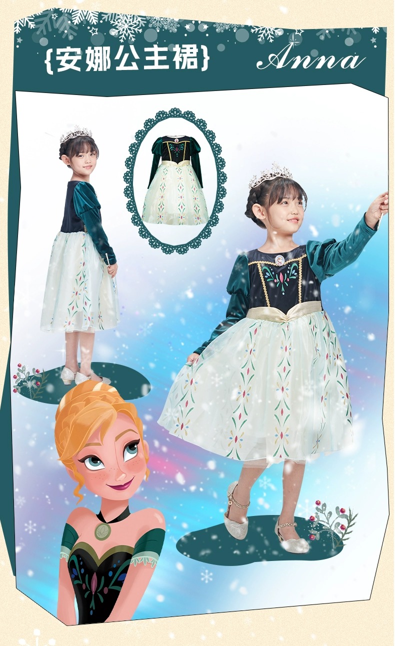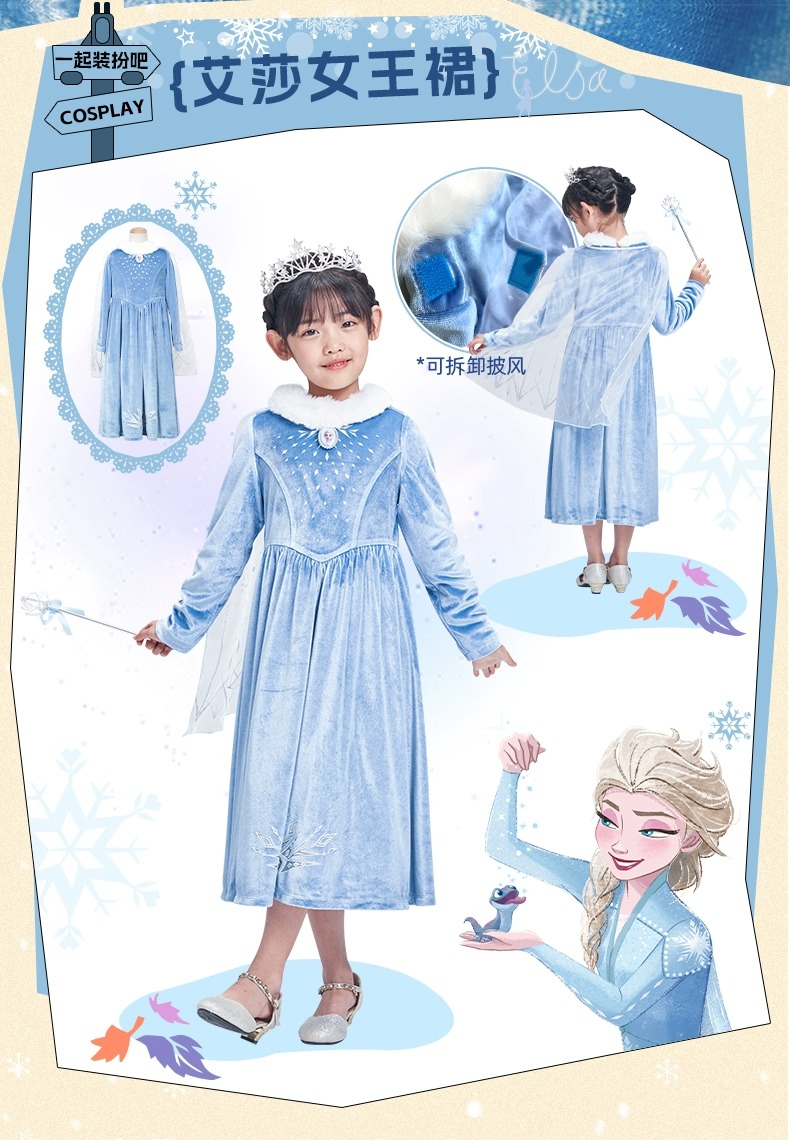 【官方正版】迪士尼女童爱莎公主裙冬新款加厚绒感安娜丝绒连衣裙宝宝洋气裙子4898 4897 4901 4902