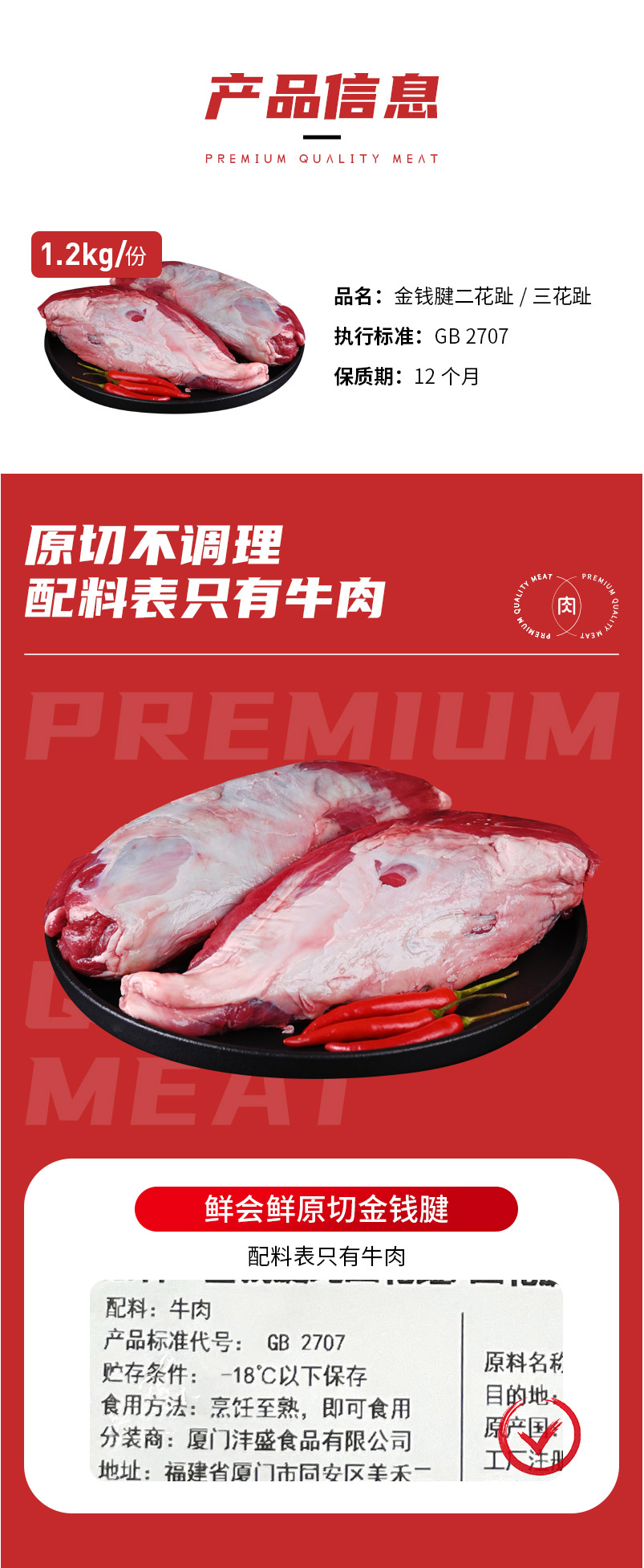 鲜会鲜原切谷饲澳洲牛腱子2.4斤二花趾三花腱牛肉牛腱子肉火锅 生鲜不支持七天无理由
