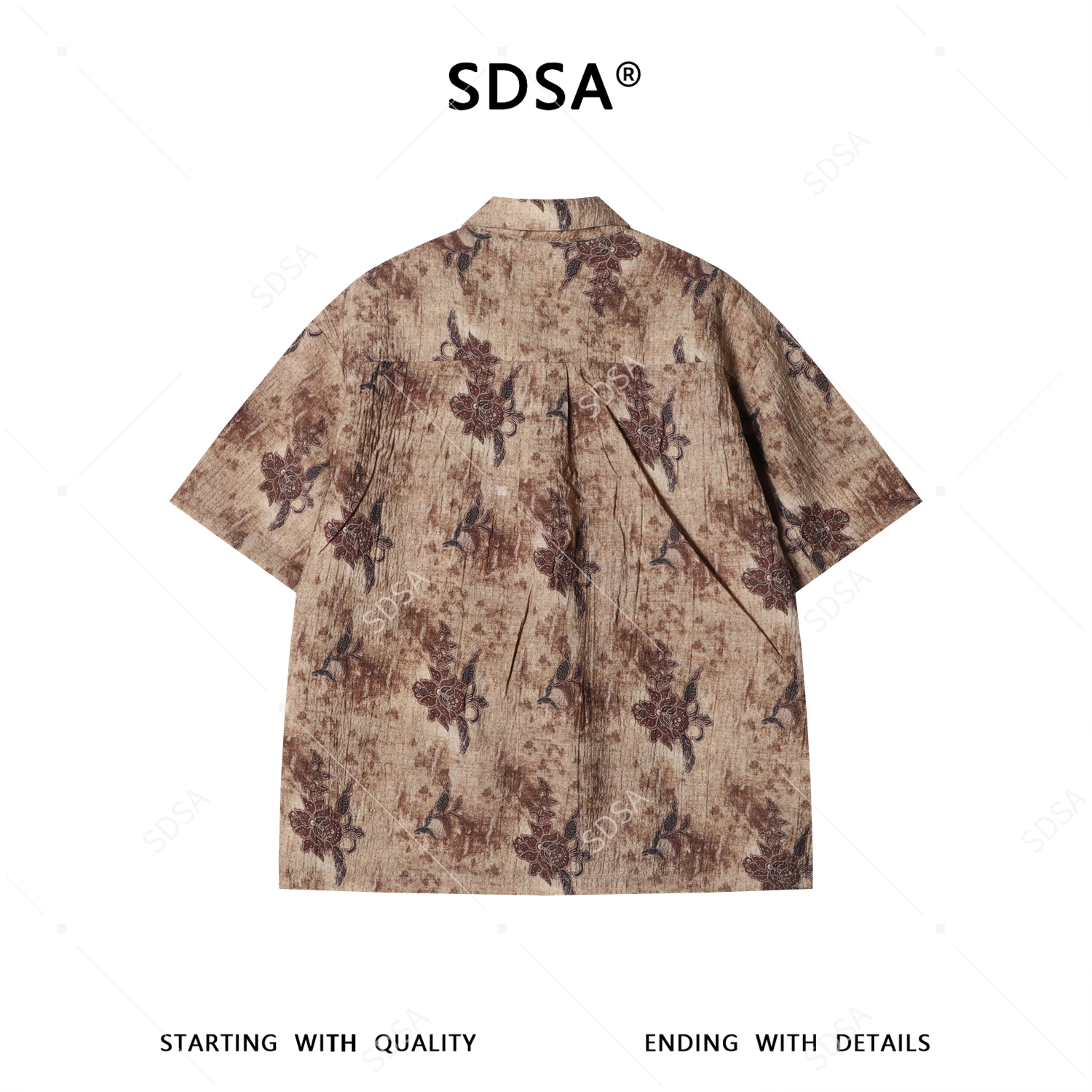 HHC02SDSA男装2026新款高贵轻奢美式复古植物花卉短袖衬衫百搭时尚上衣