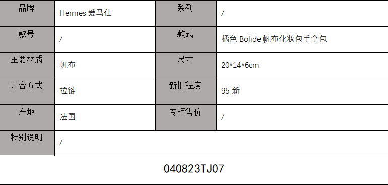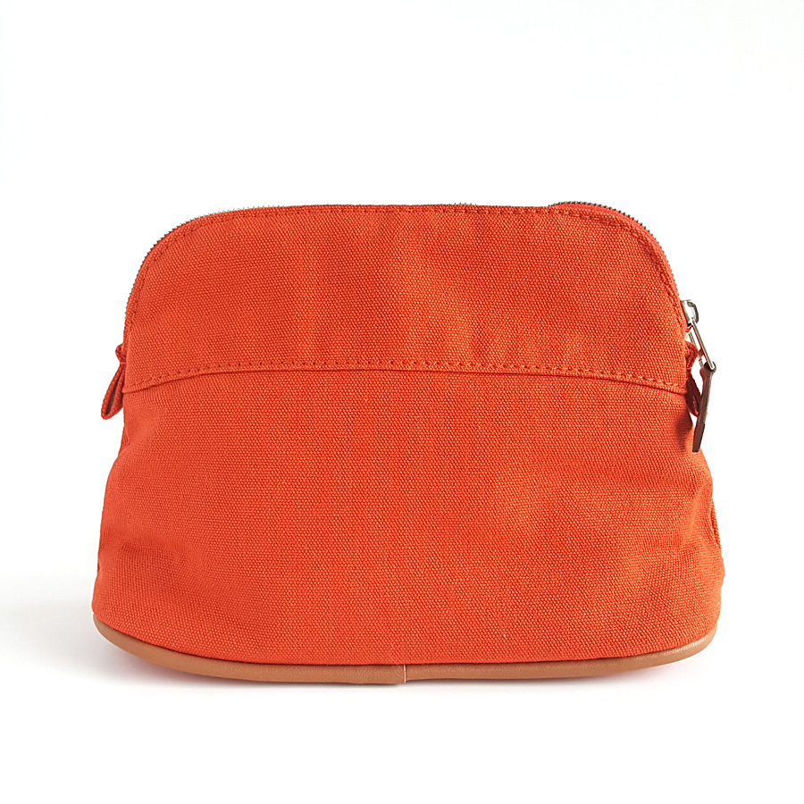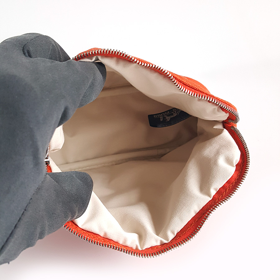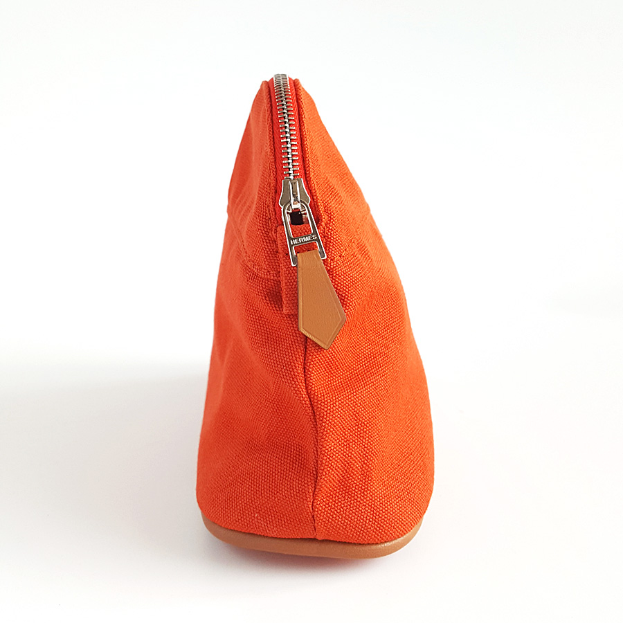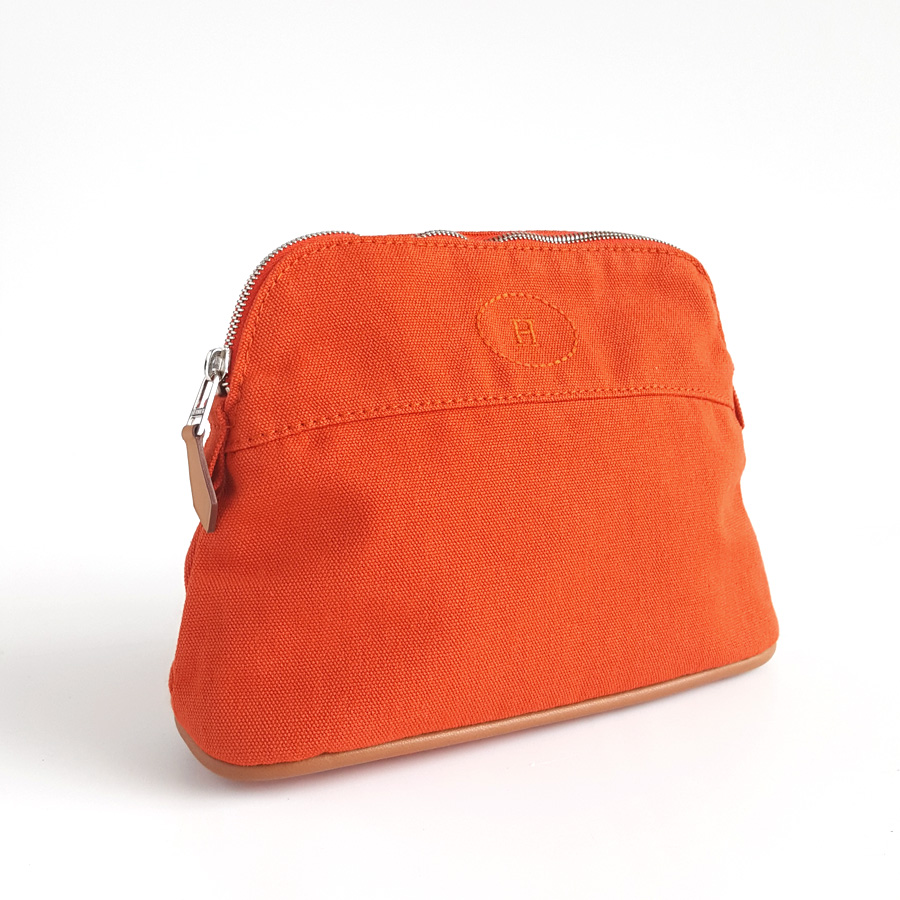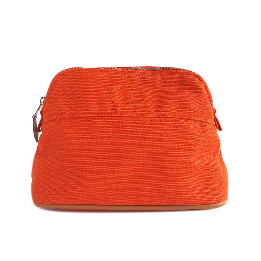 【95新正品】Hermes爱马仕橘色Bolide帆布化妆包手拿包 040823TJ07