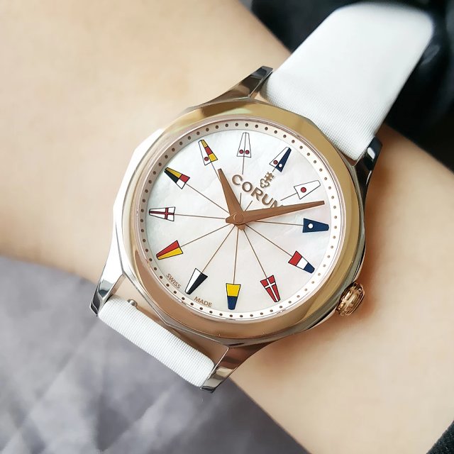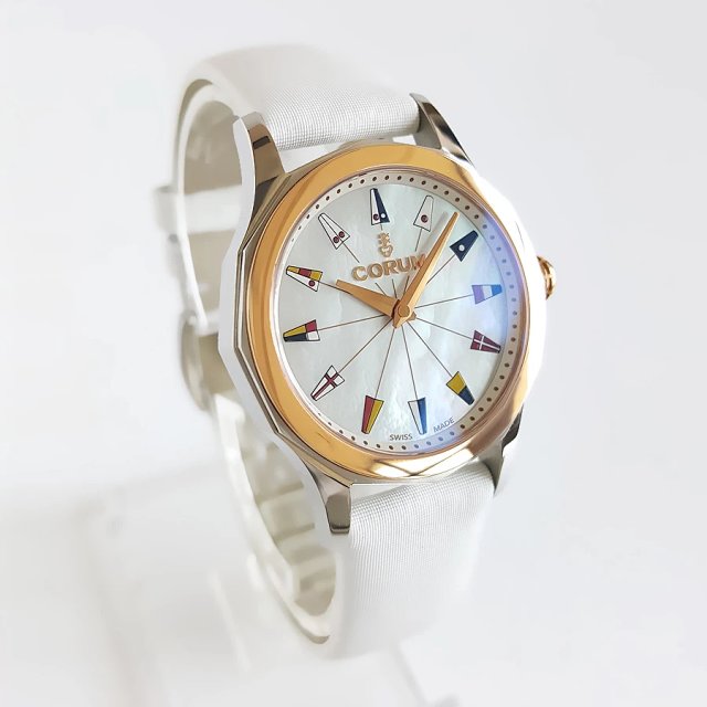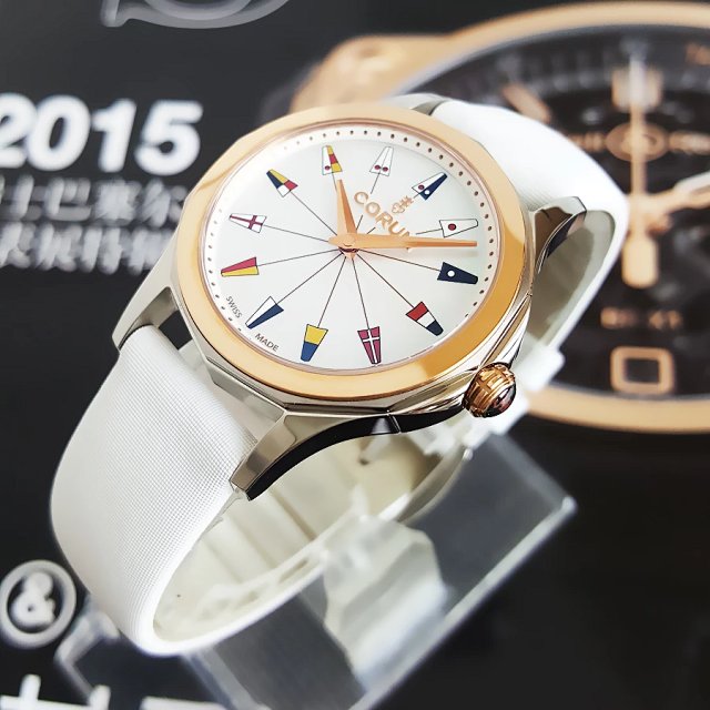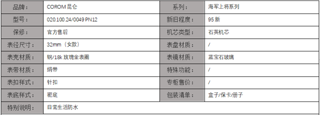 【95新】COROM昆仑海军上将系列32mm精钢/18k玫瑰金表圈钻刻石英女表 071216JH11
