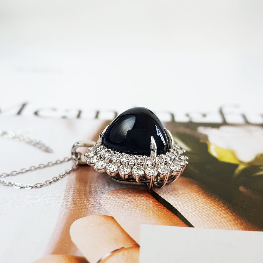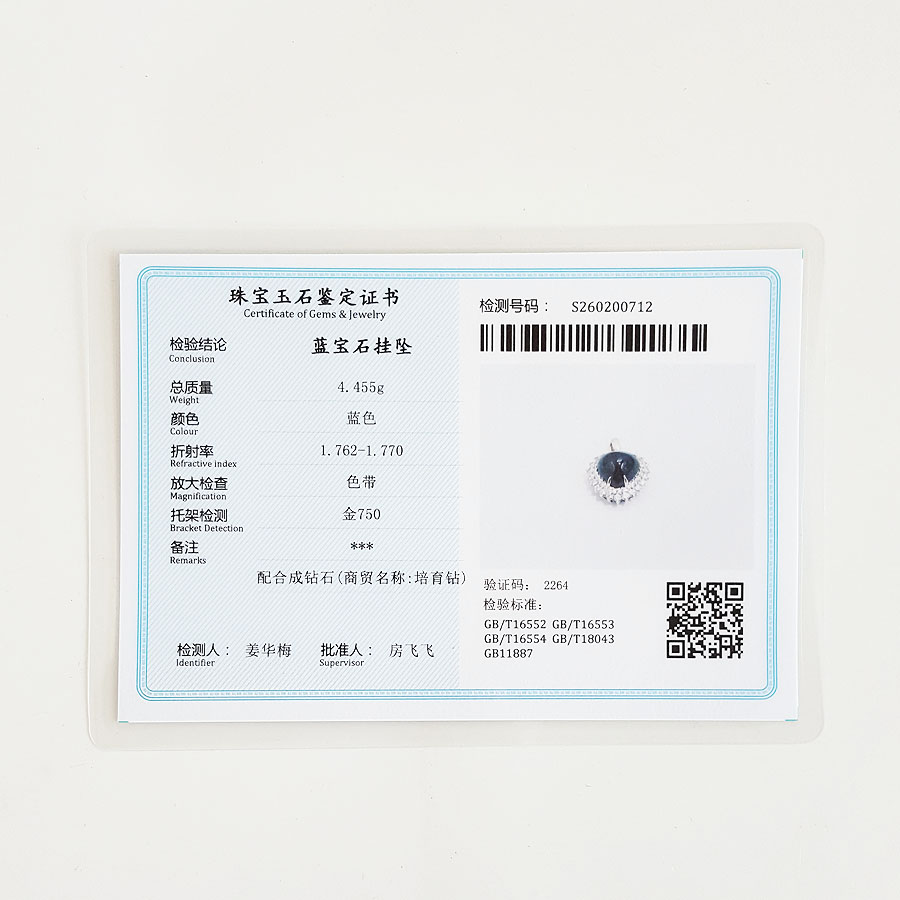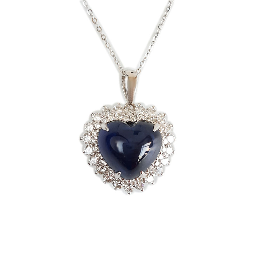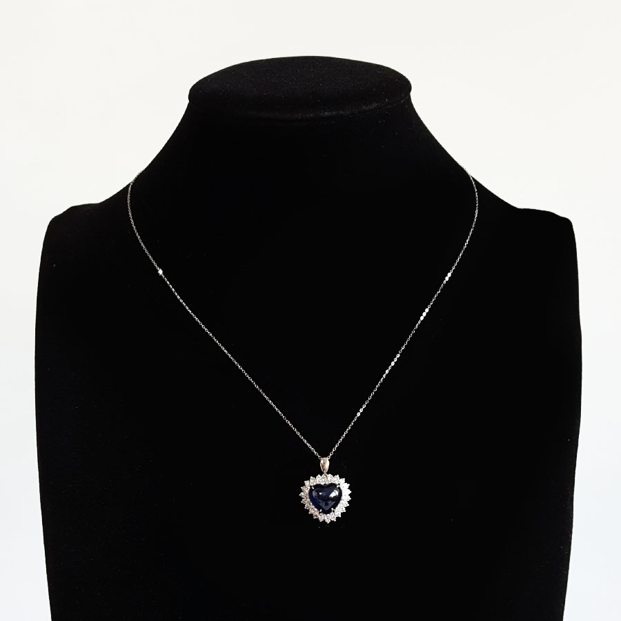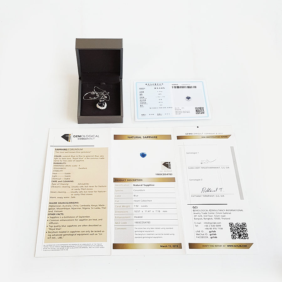 名称 | AU750白金镶天然心型7.92克拉皇家蓝蓝宝石吊坠项链 |