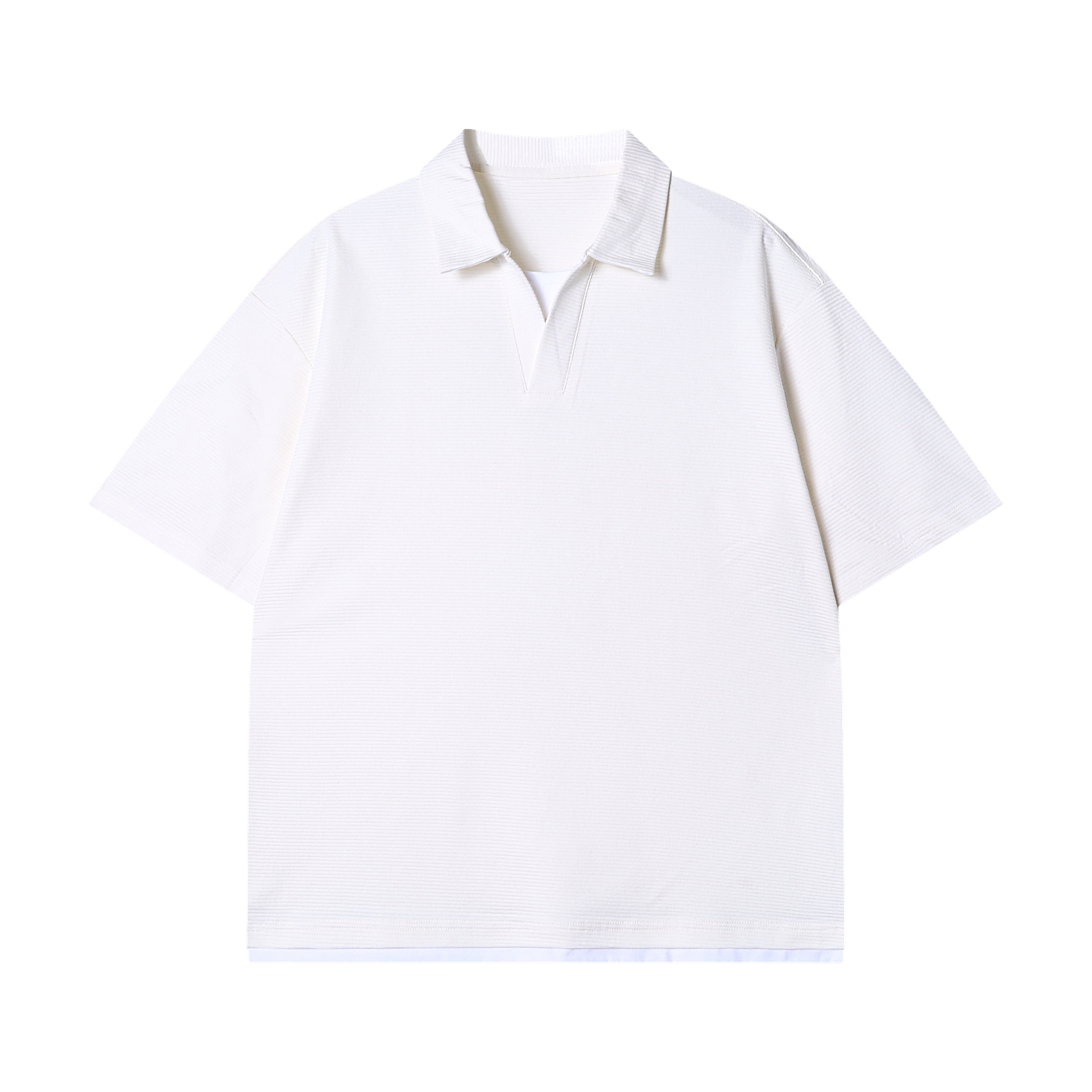 夏季高级感新款韩版撞色肌理感翻领短袖T恤商务百搭高街套头上衣