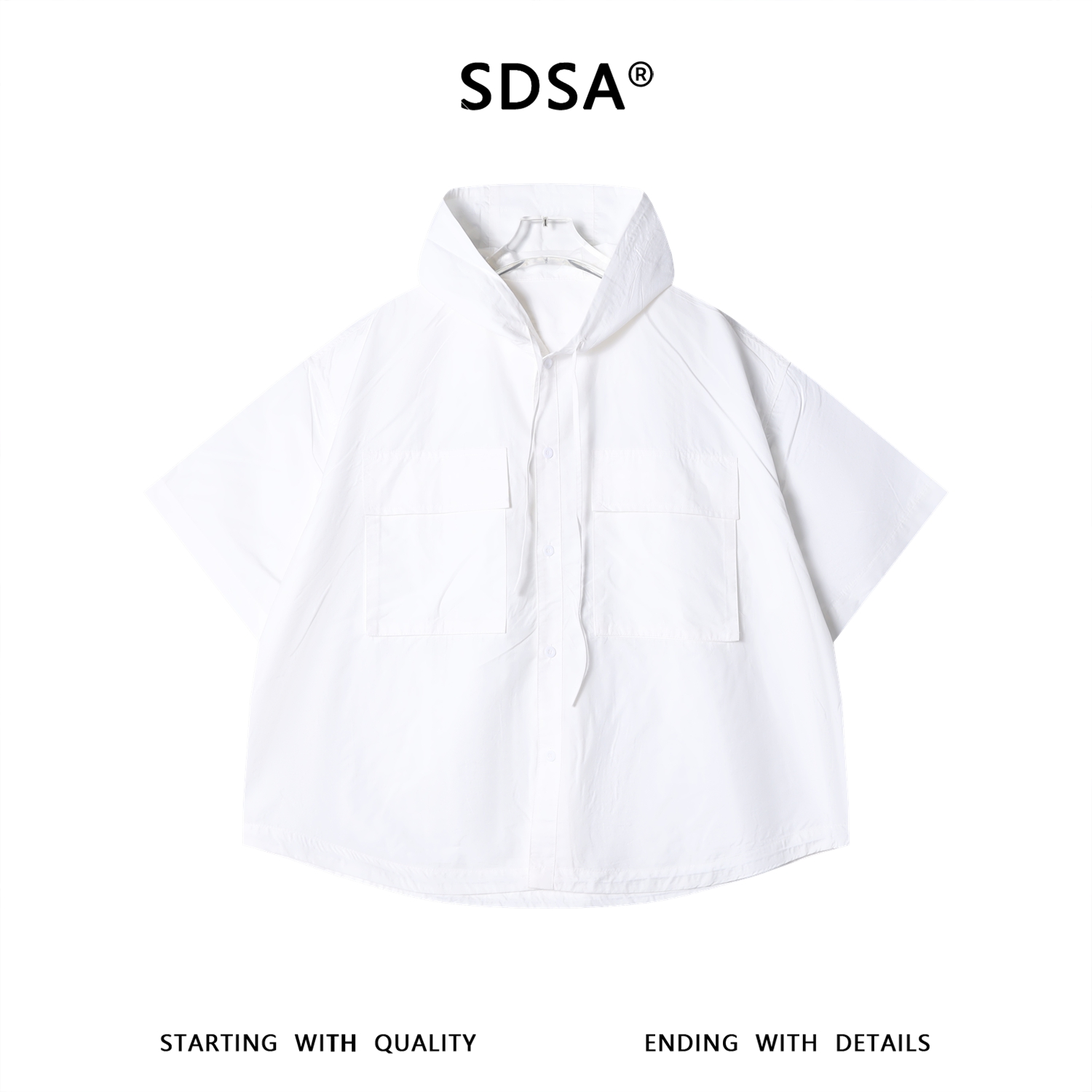 SDSA男装2026新款高贵轻奢连帽多口袋短袖衬衫宽松休闲上衣