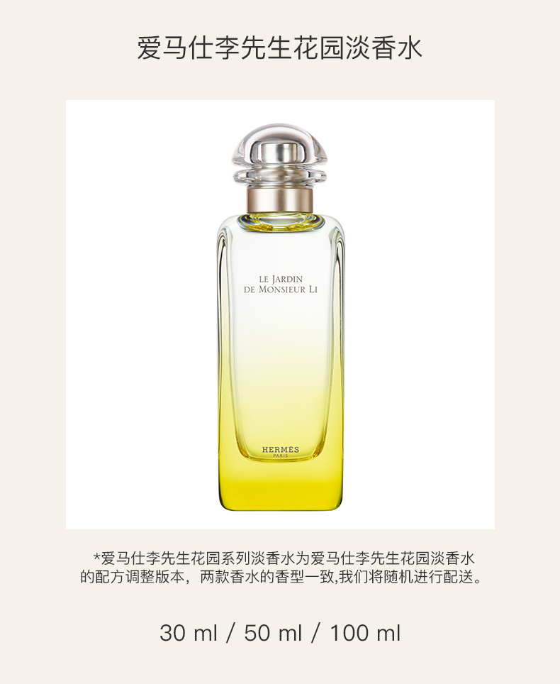 这是爱马仕中唯一一款中国风香水,调香师于2014年夏天去中国旅行,经过一个花园,用记忆中的气味创作出了介于现实于幻想之间的奇妙香味。