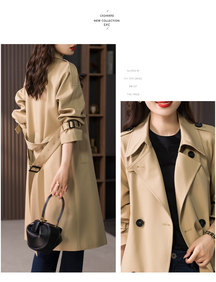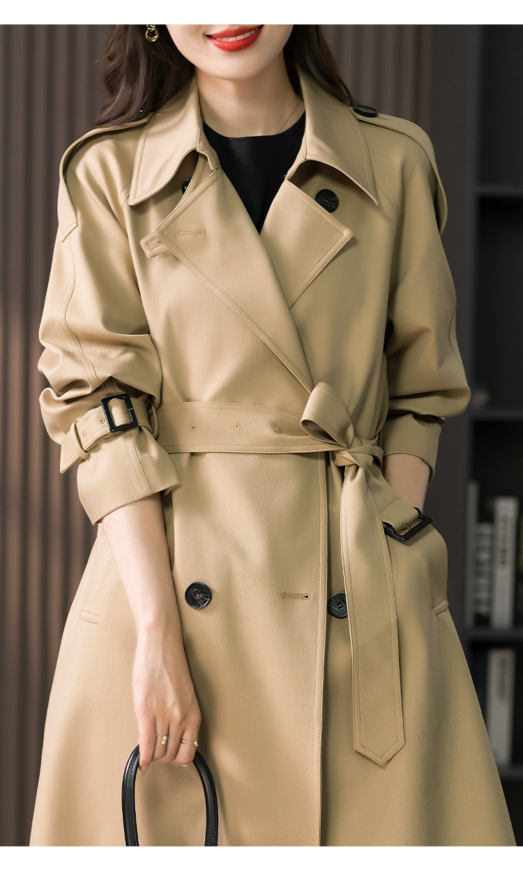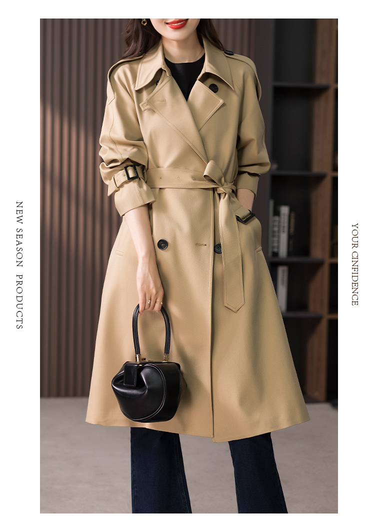 89443原形英伦风气质大衣女2024秋季新款系带收腰中长款风衣外套高级感