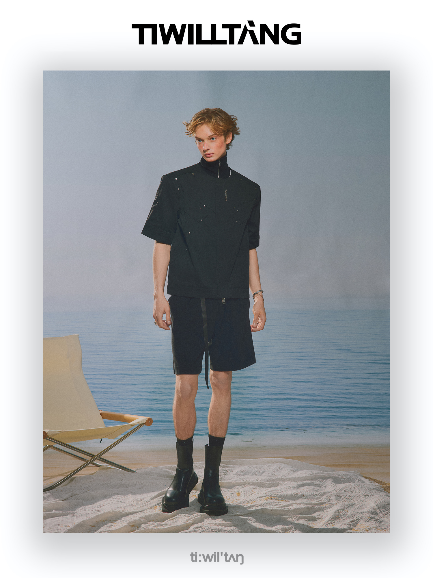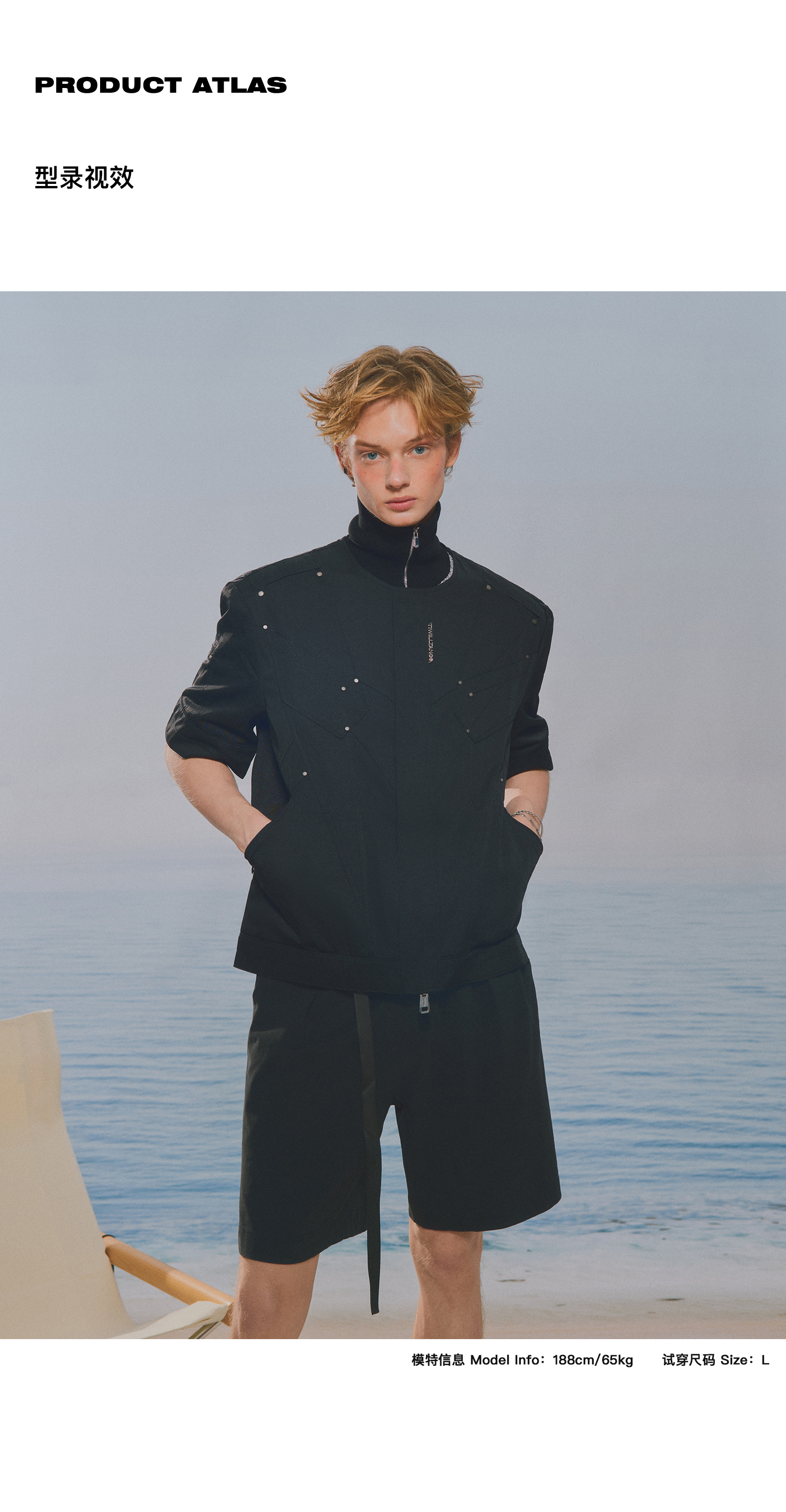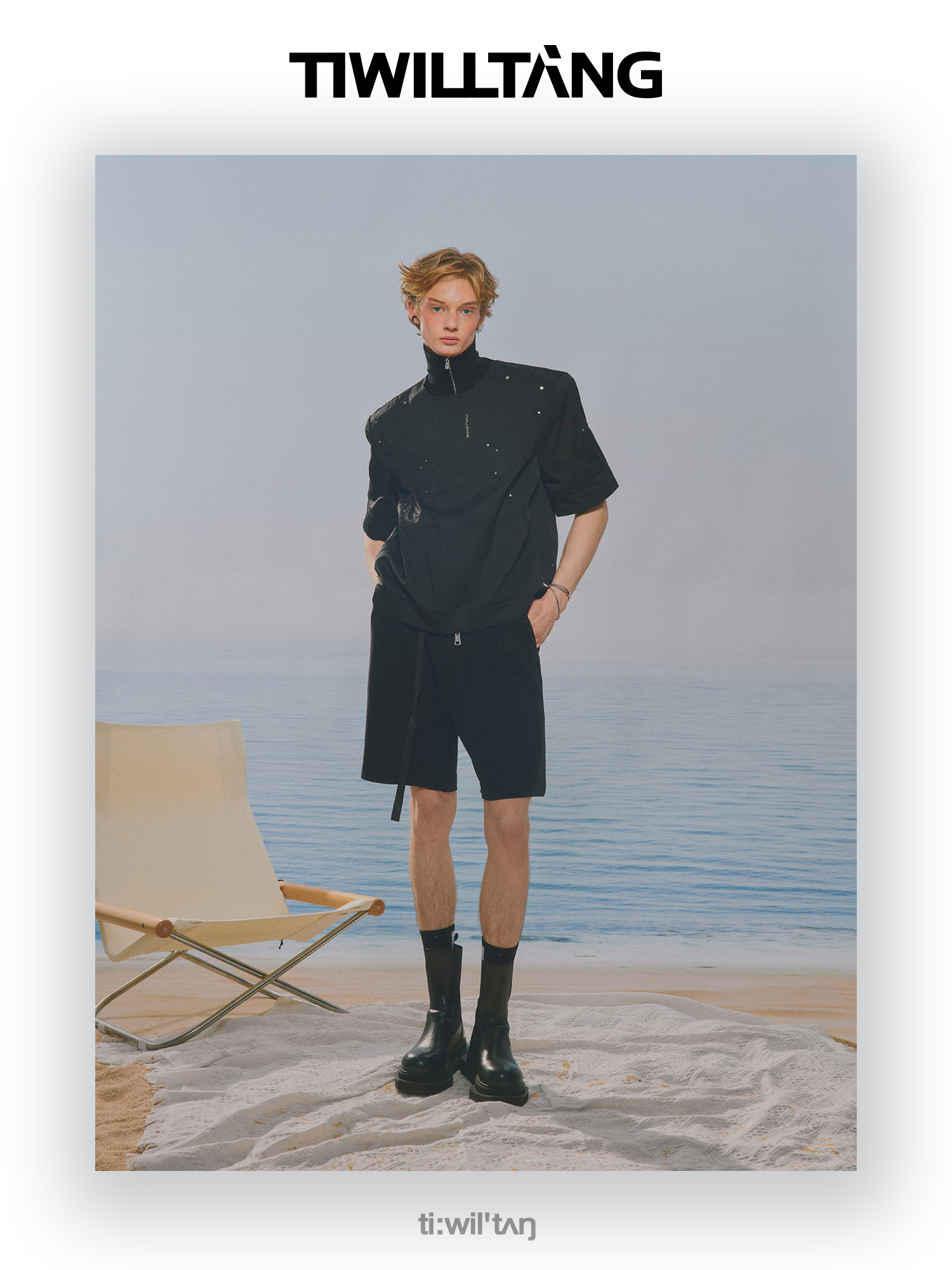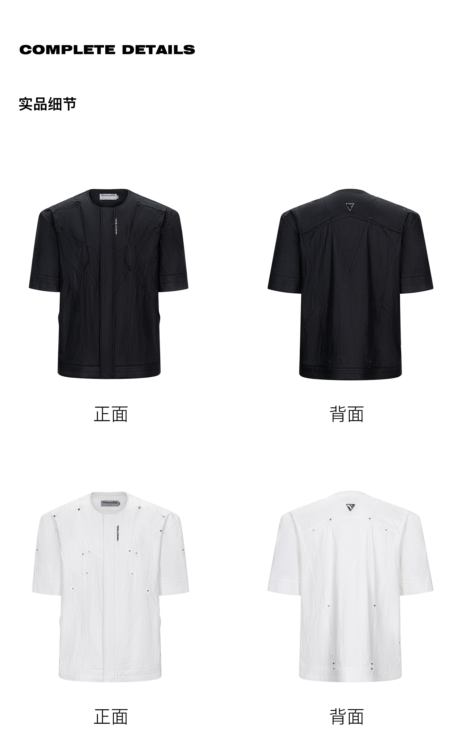 启世录TIWILLTANG“跃动晶凌"无领结构分割短袖夹克夏季刺绣上衣