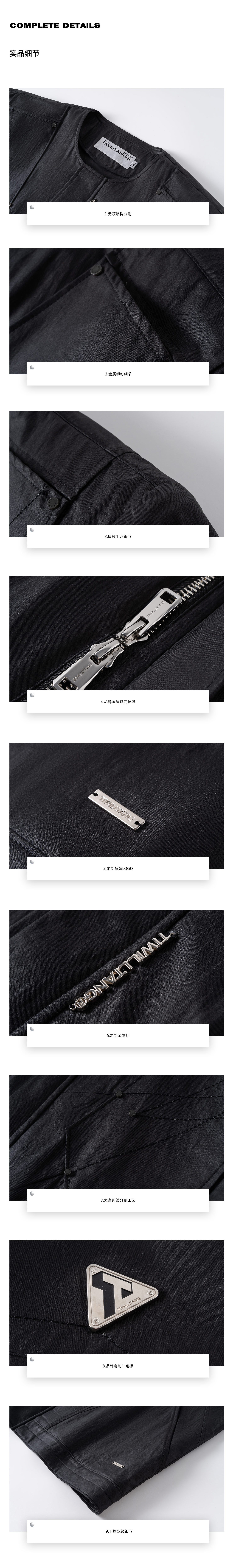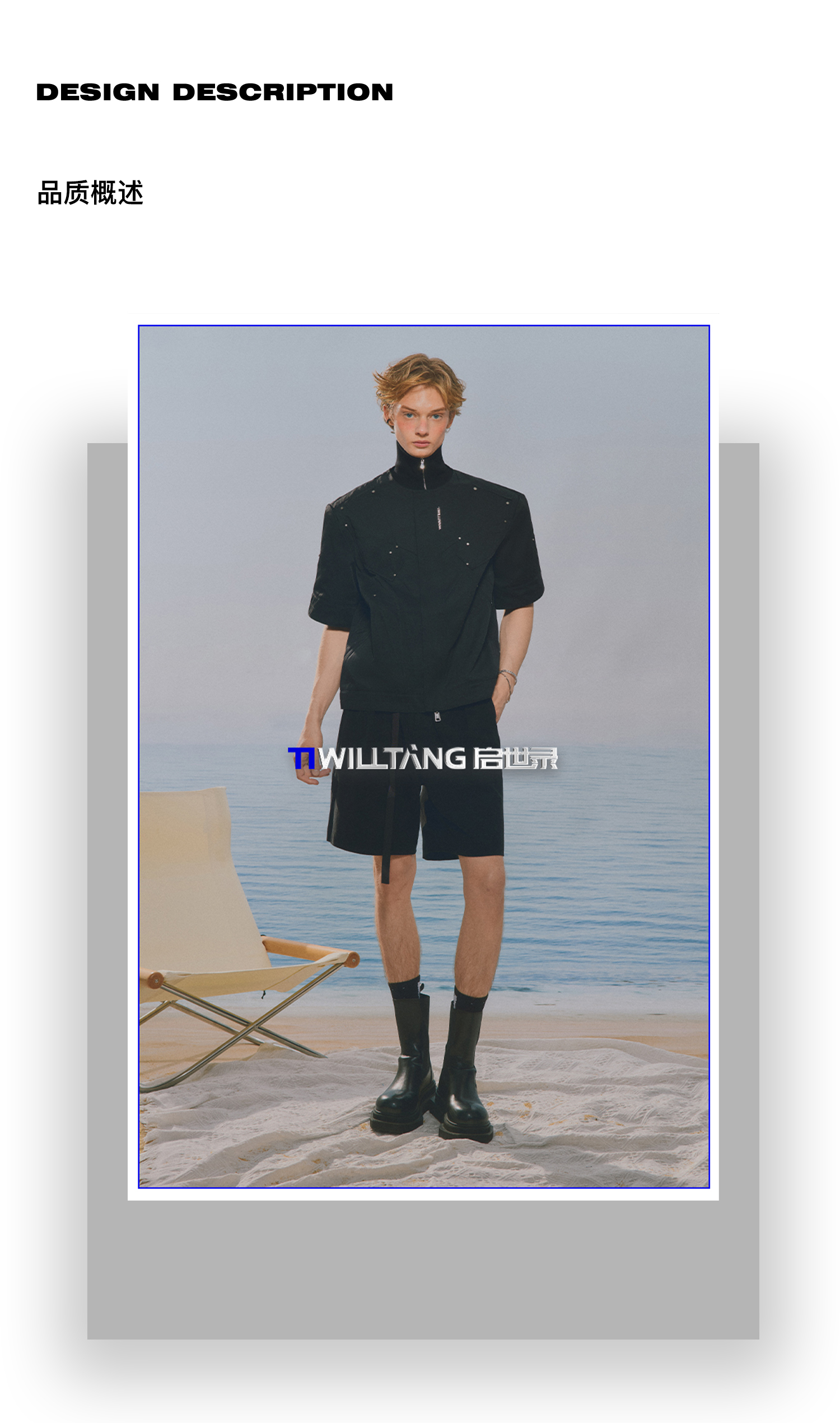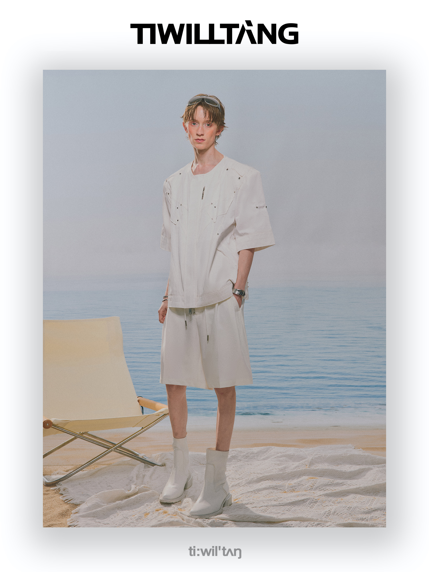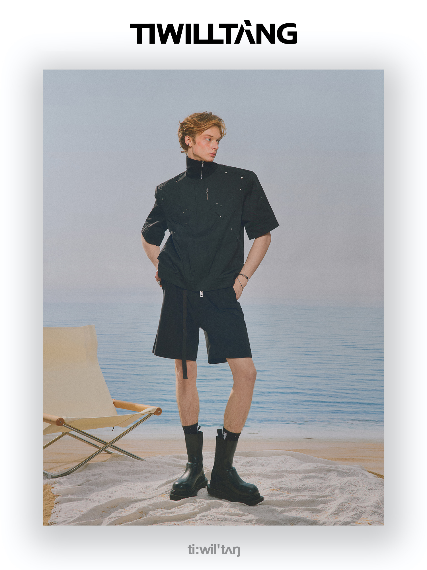 启世录TIWILLTANG“跃动晶凌"无领结构分割短袖夹克夏季刺绣上衣