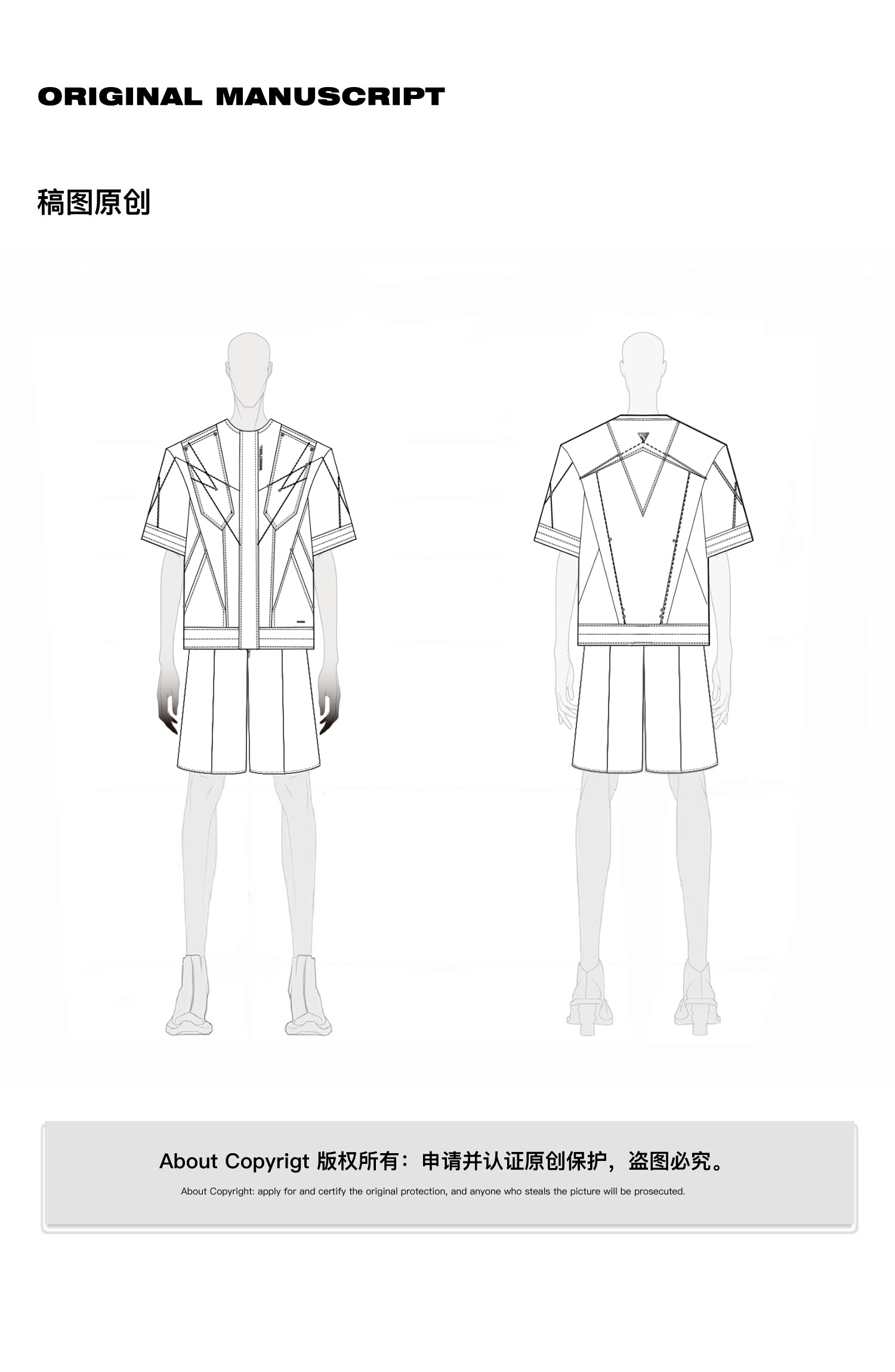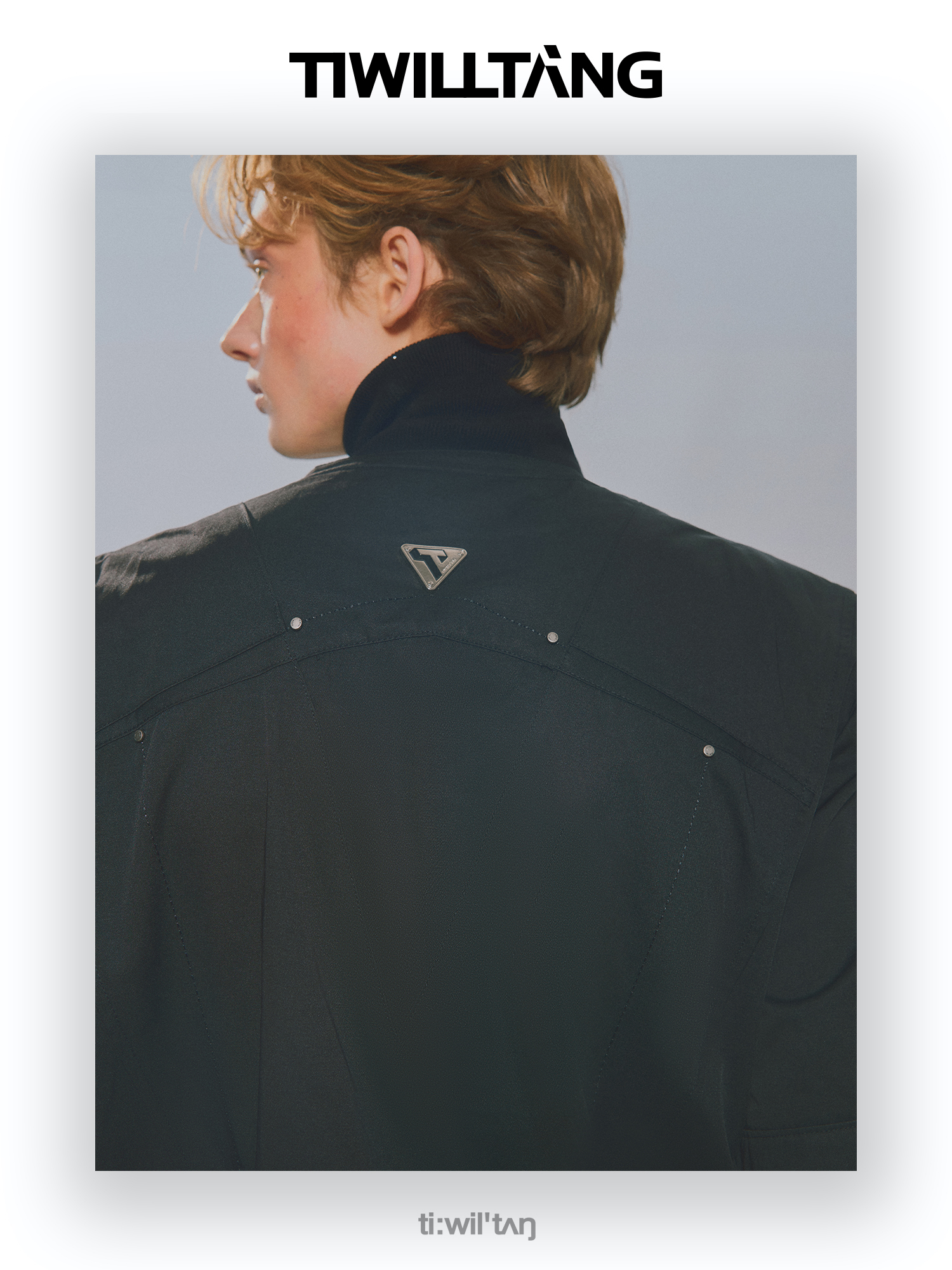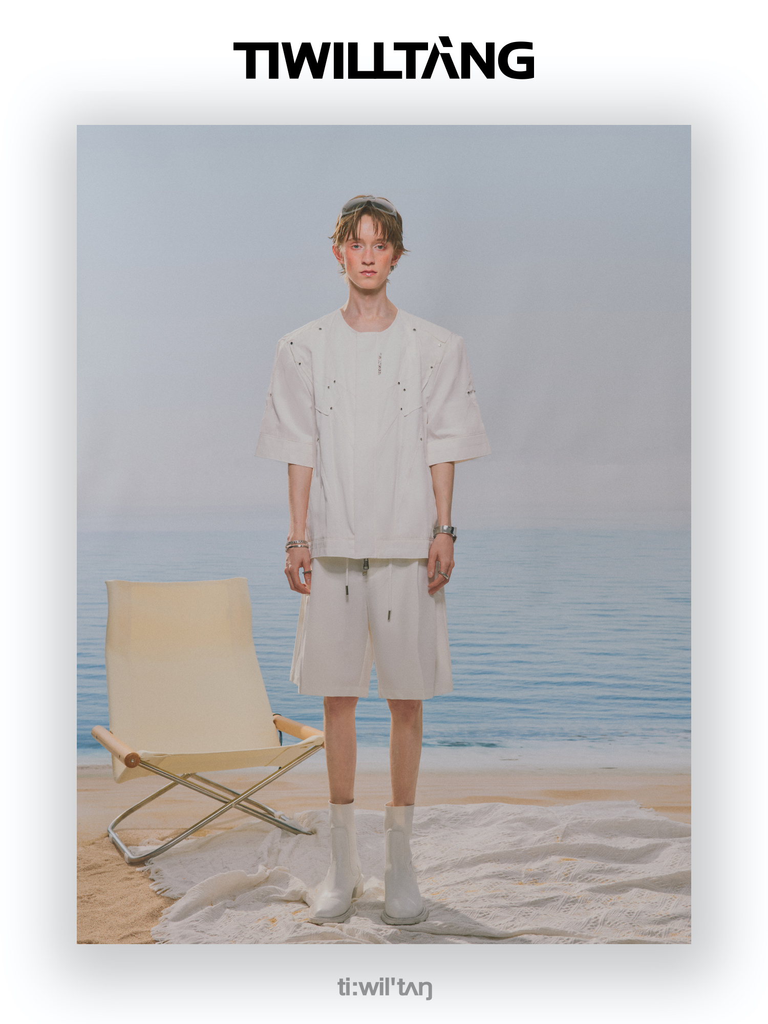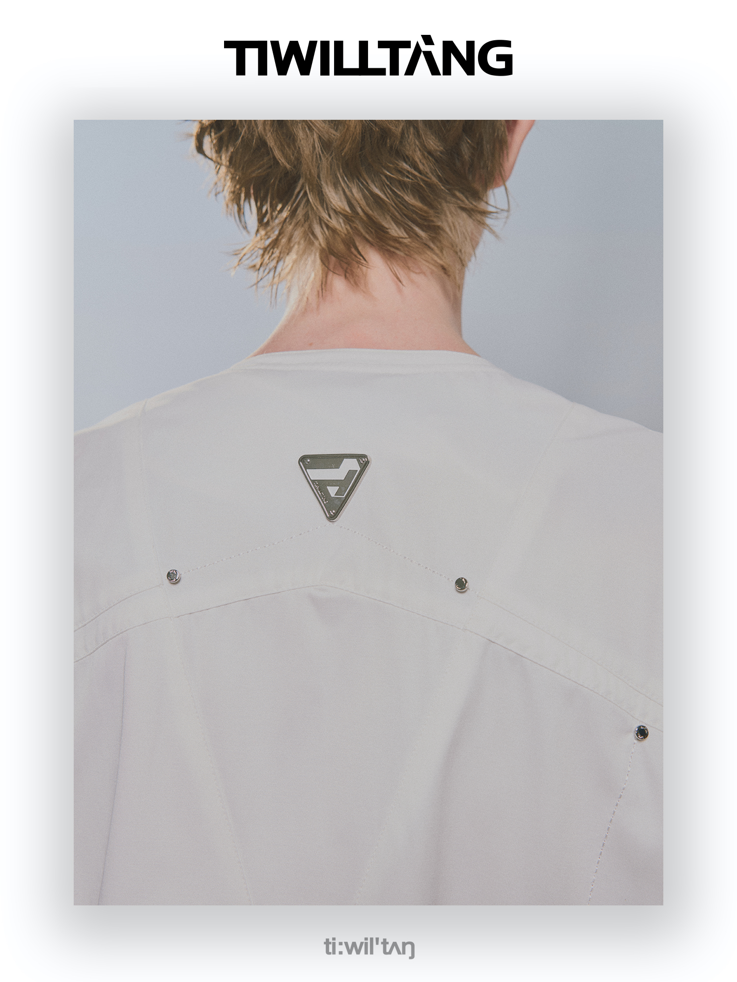 启世录TIWILLTANG“跃动晶凌"无领结构分割短袖夹克夏季刺绣上衣