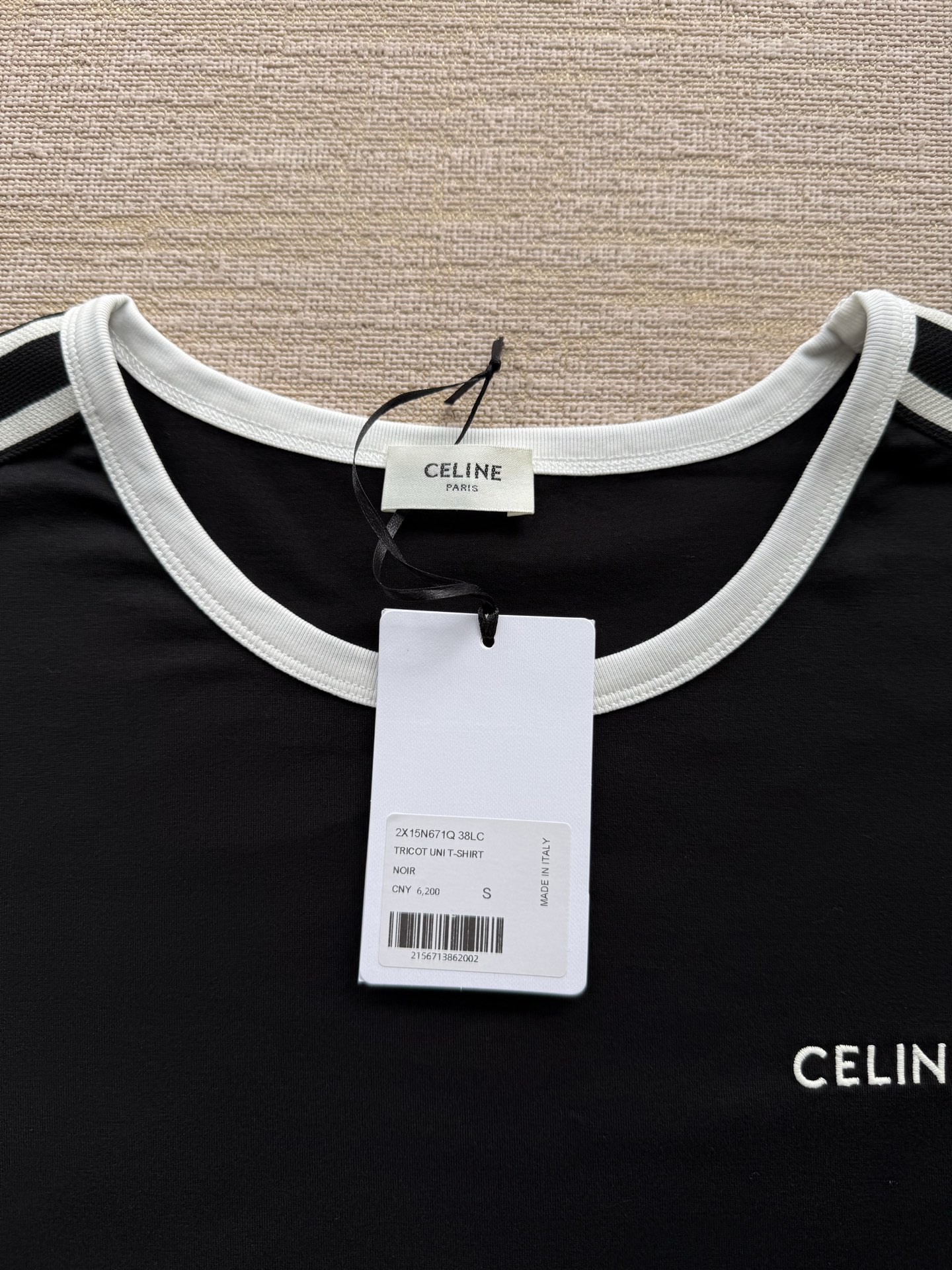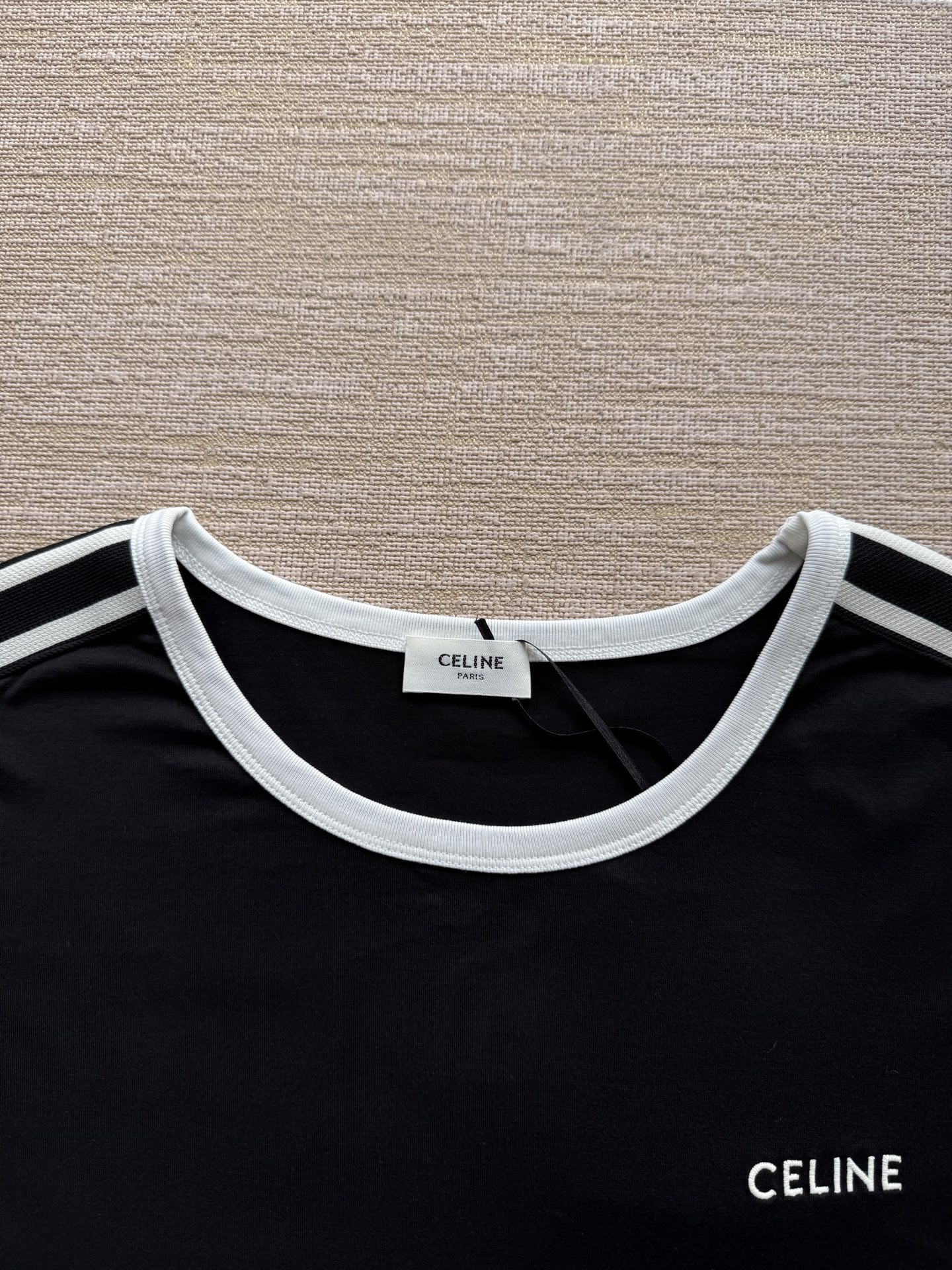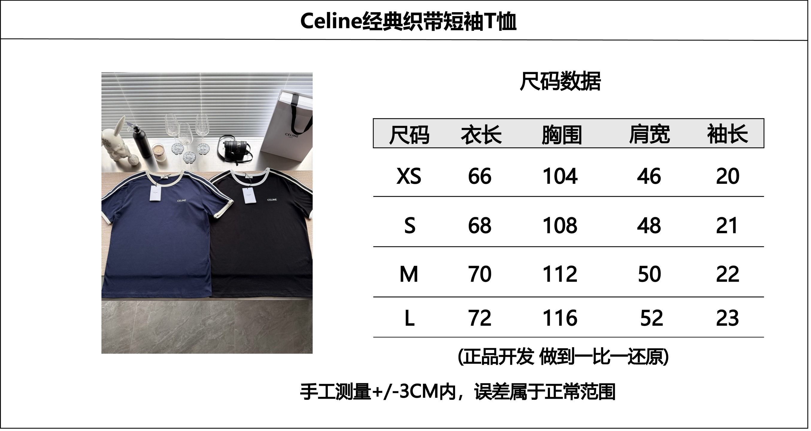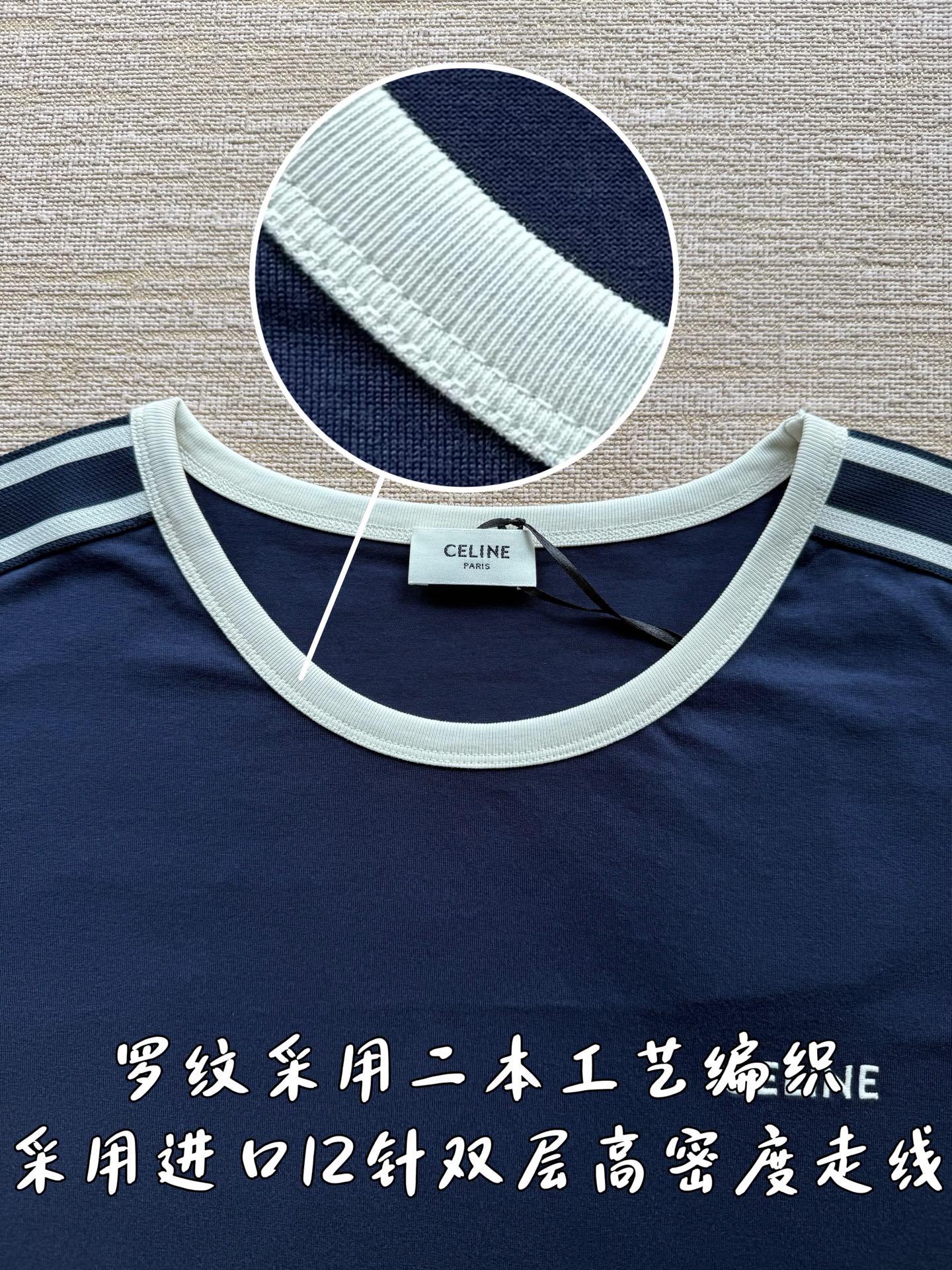 25ss经典织带短袖T恤‼️整件衣服6200购买ZP拆解打造,定制棉质平纹针织面料,做到100%全棉进口纱线,衣领和衣袖点缀撞色罗纹饰边,意大利进口制造,胸前饰CE撞色刺绣字母标识,定织标志性罗纹领口 袖口,双层锁边超高密度走线,真正做到1:1copy 闭眼入 码数:XS S M L