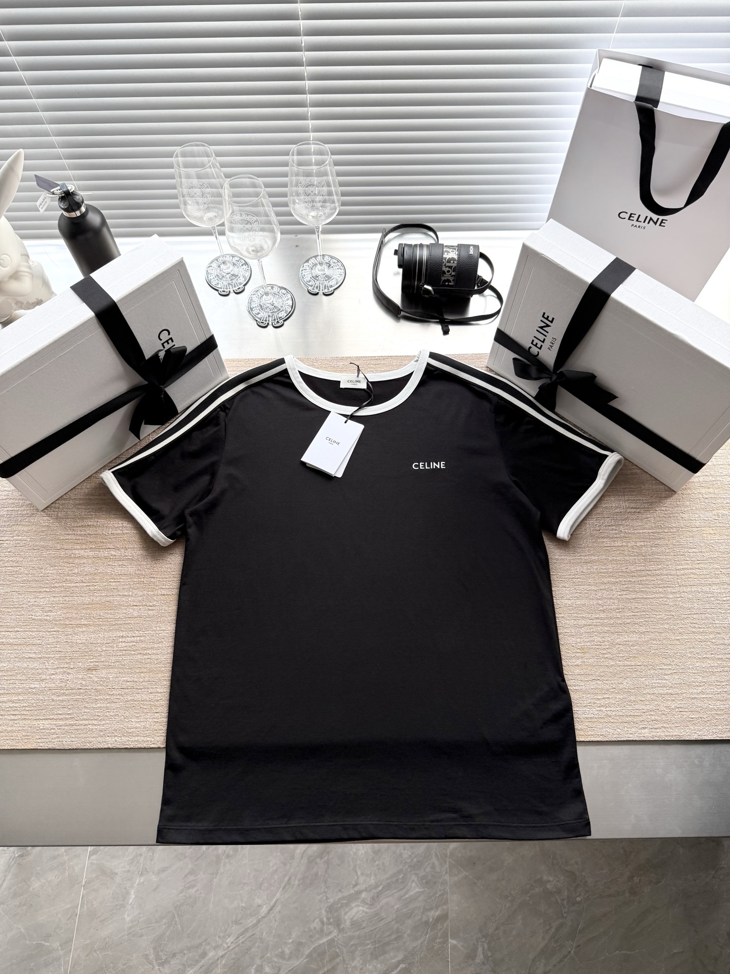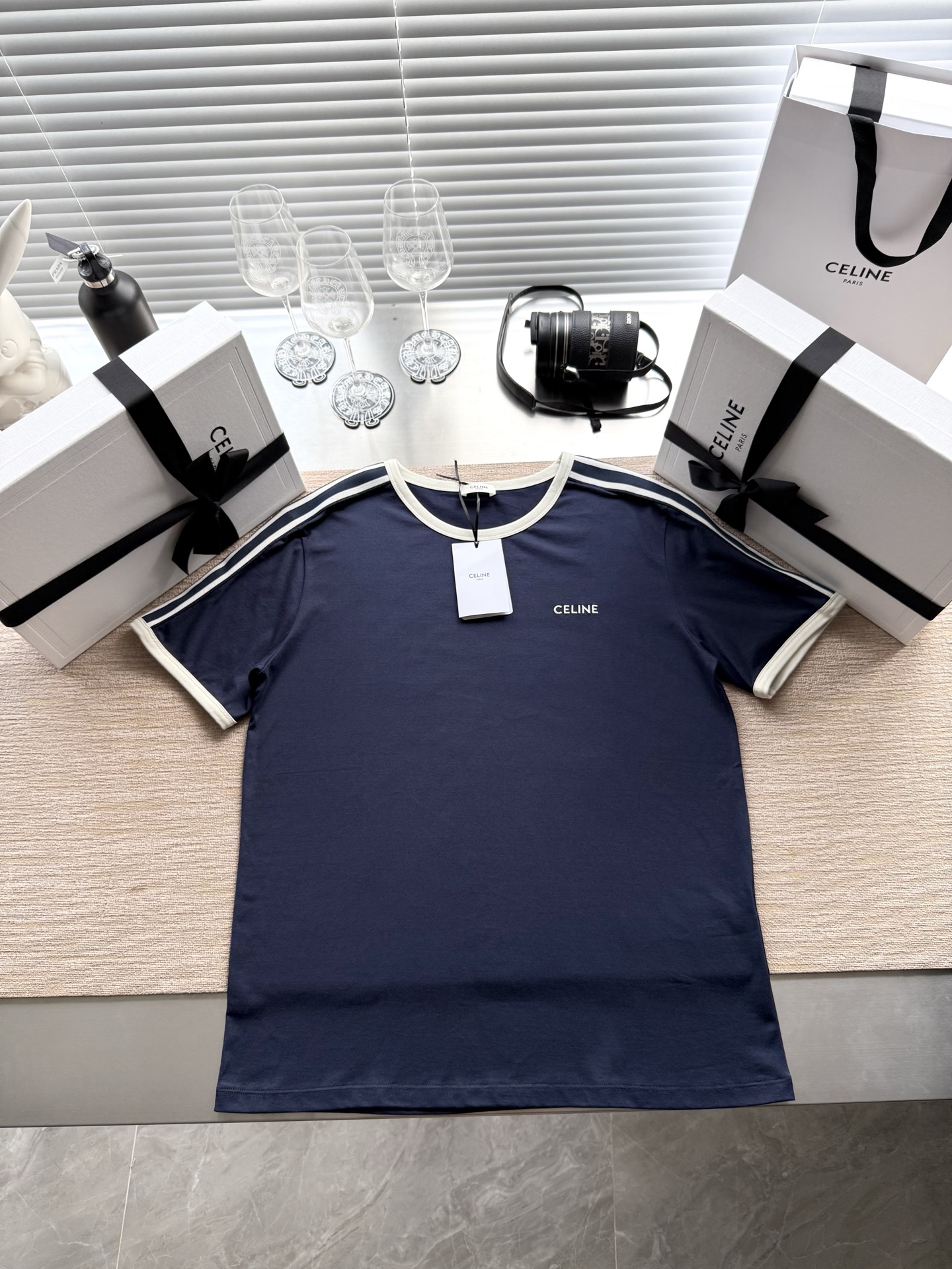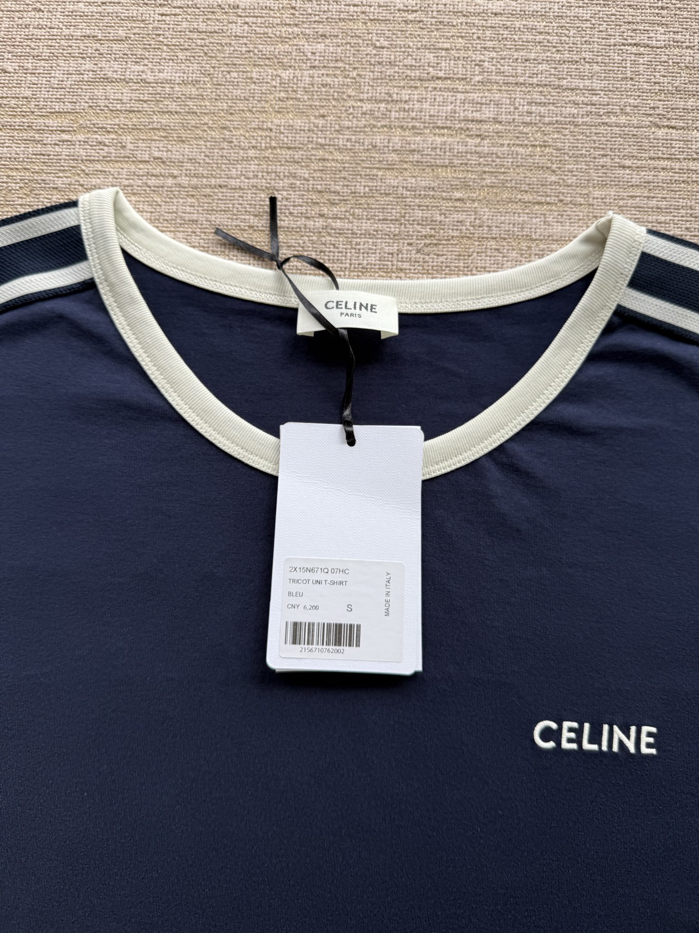 25ss经典织带短袖T恤‼️整件衣服6200购买ZP拆解打造,定制棉质平纹针织面料,做到100%全棉进口纱线,衣领和衣袖点缀撞色罗纹饰边,意大利进口制造,胸前饰CE撞色刺绣字母标识,定织标志性罗纹领口 袖口,双层锁边超高密度走线,真正做到1:1copy 闭眼入 码数:XS S M L