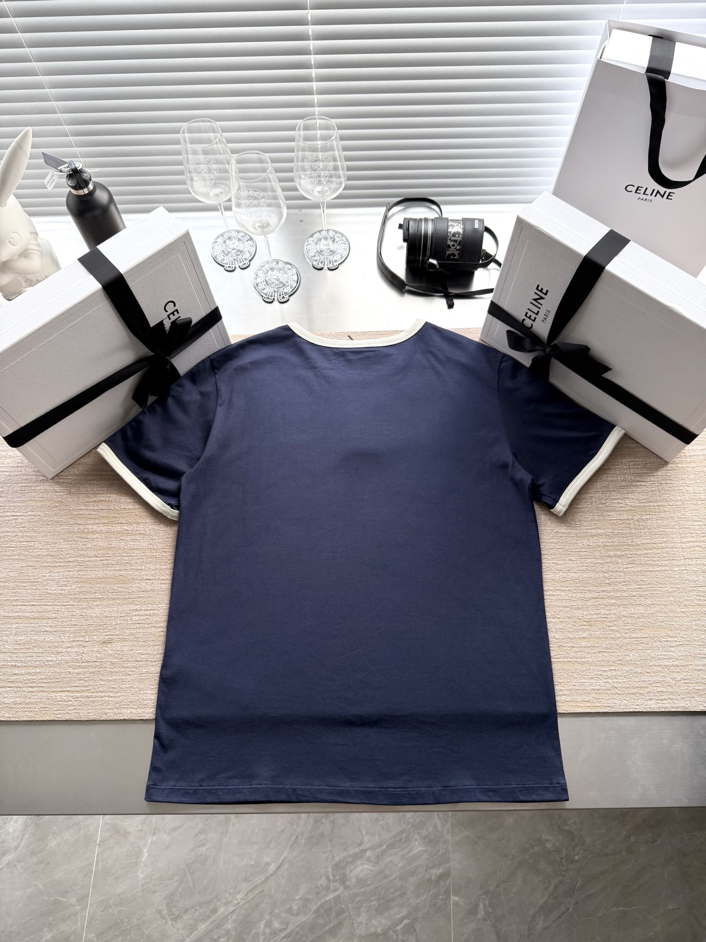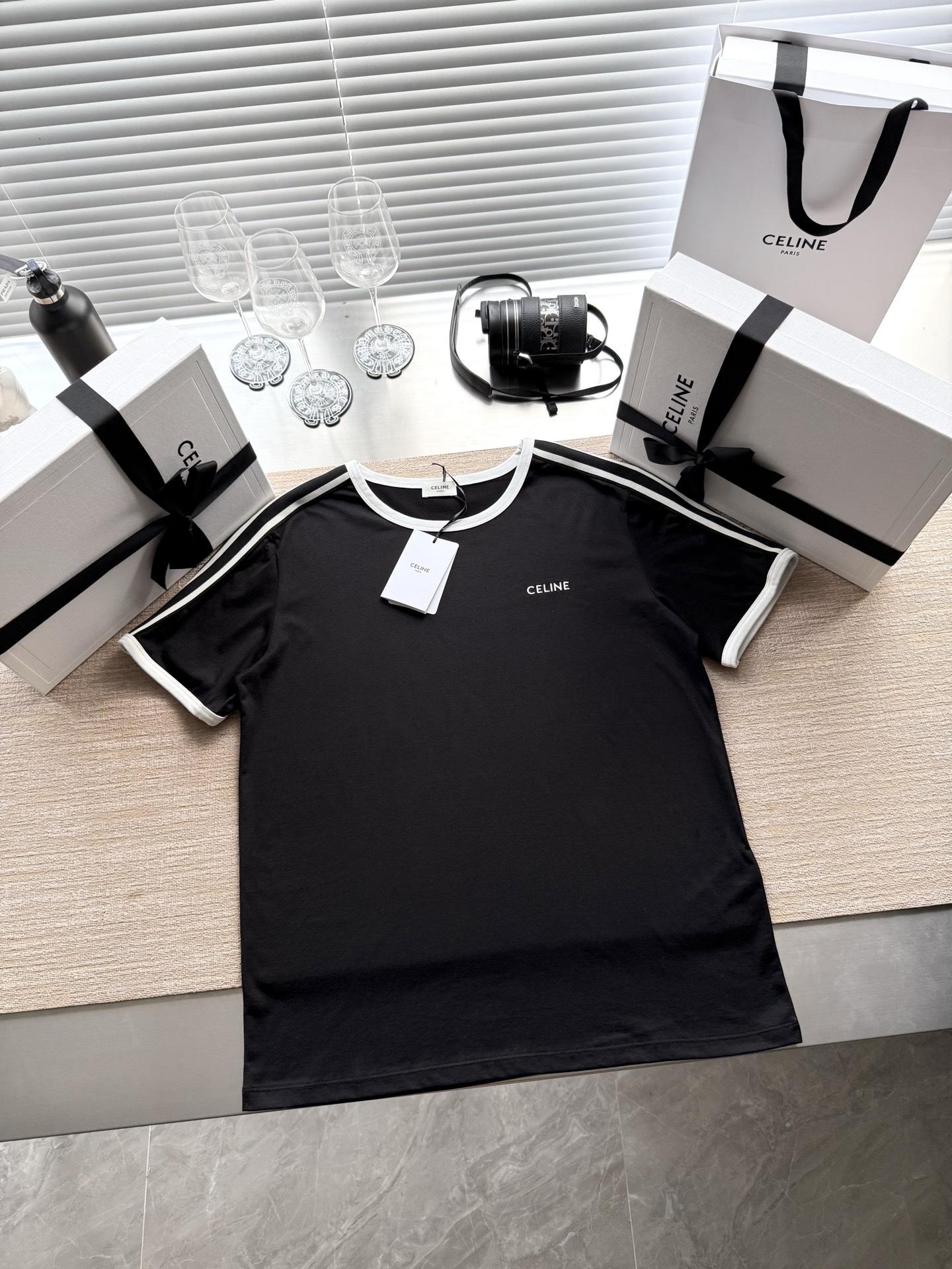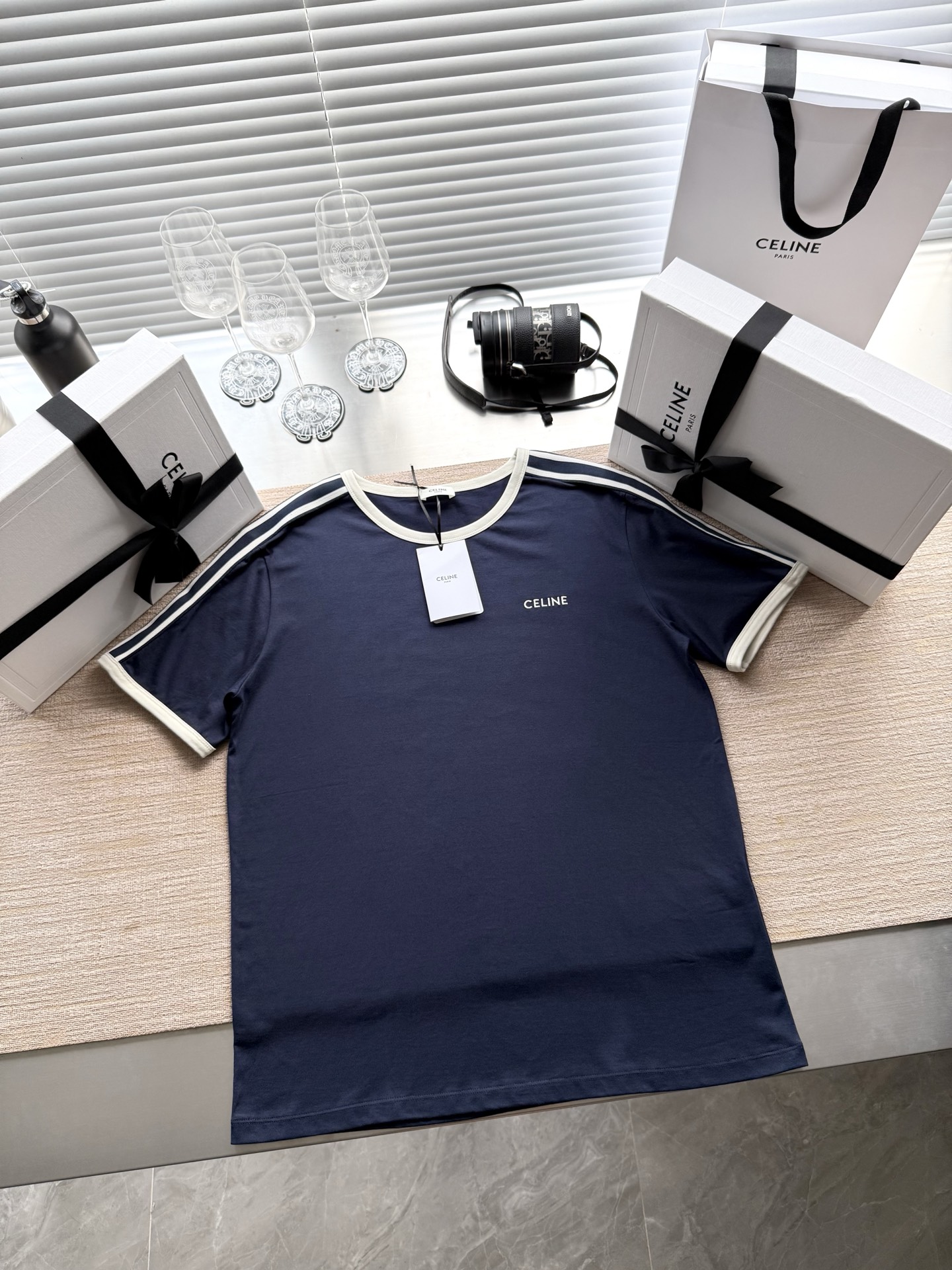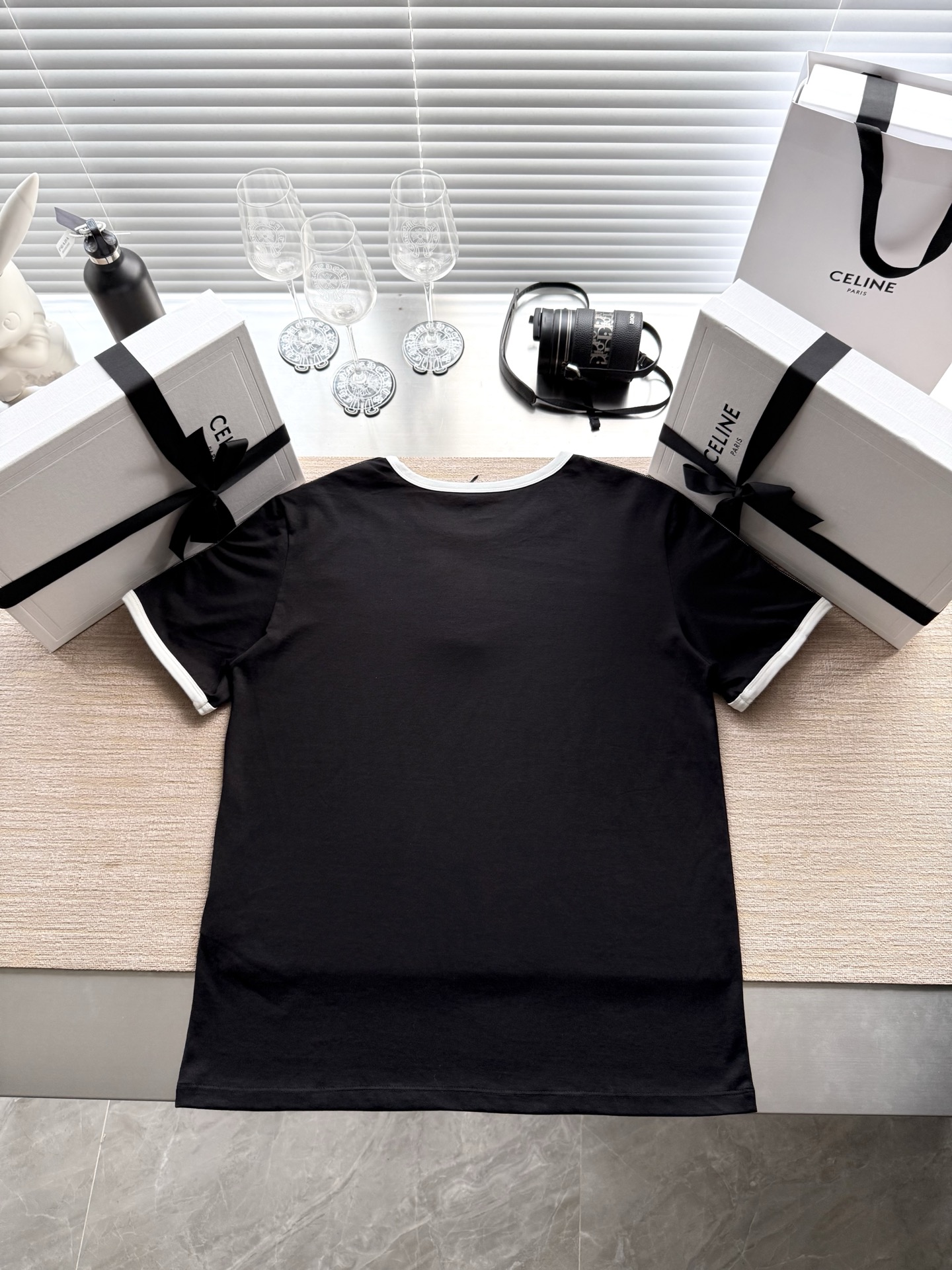 25ss经典织带短袖T恤‼️整件衣服6200购买ZP拆解打造,定制棉质平纹针织面料,做到100%全棉进口纱线,衣领和衣袖点缀撞色罗纹饰边,意大利进口制造,胸前饰CE撞色刺绣字母标识,定织标志性罗纹领口 袖口,双层锁边超高密度走线,真正做到1:1copy 闭眼入 码数:XS S M L