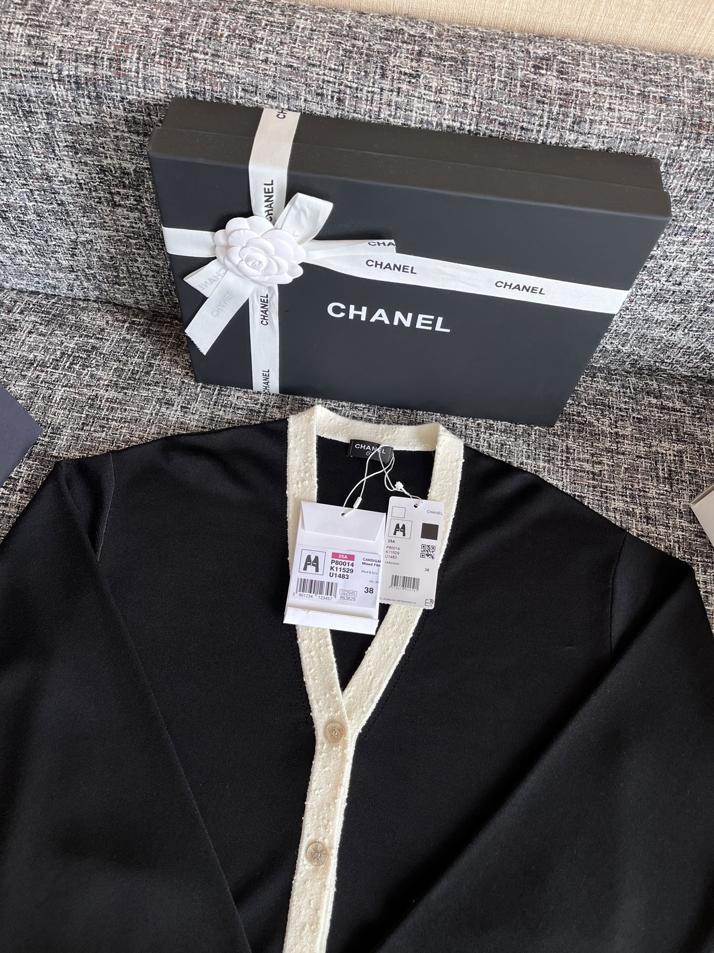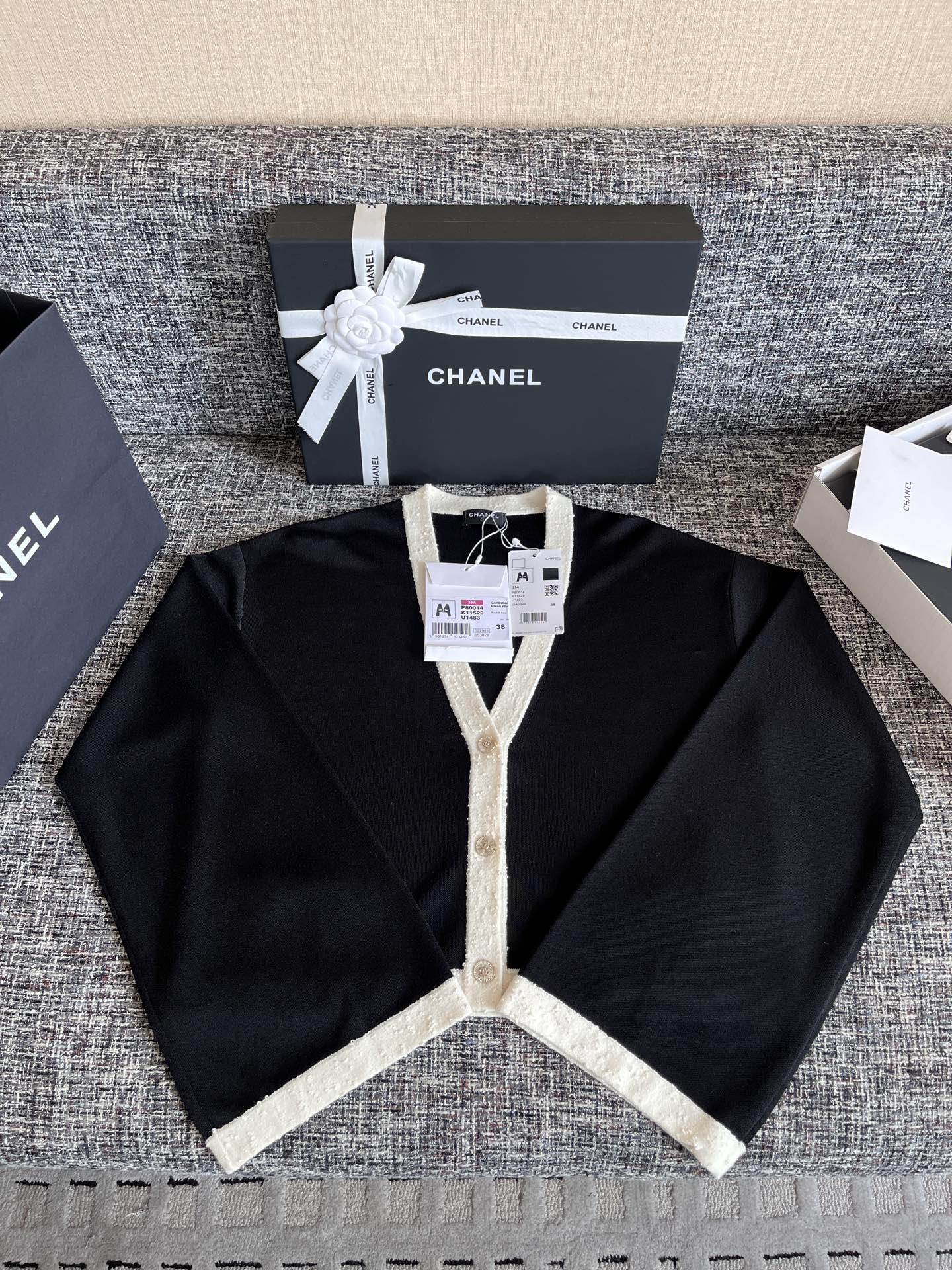 CHANEL 香奈儿25早秋新款开衫🐮31500购买Zp拆解打造,订织订染秘鲁特种面料🐮真正用到原版订织纱线做到对版出货💪工艺放大看细节除还原度接近98以上 做工也无敌了🔥真正做到1:1还原 直接闭着眼购买👀码数:S M L