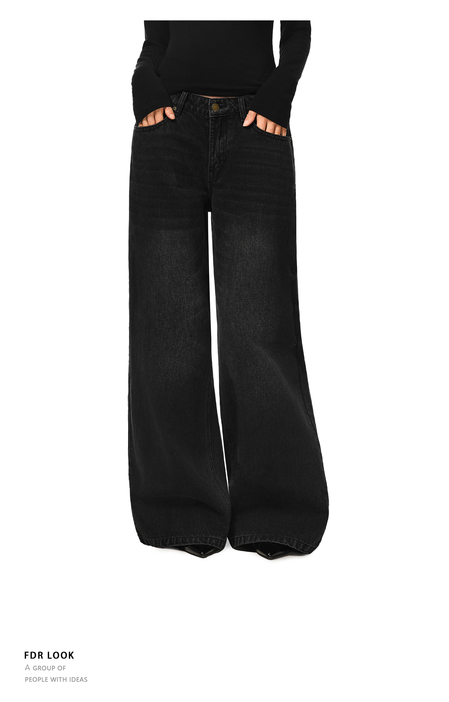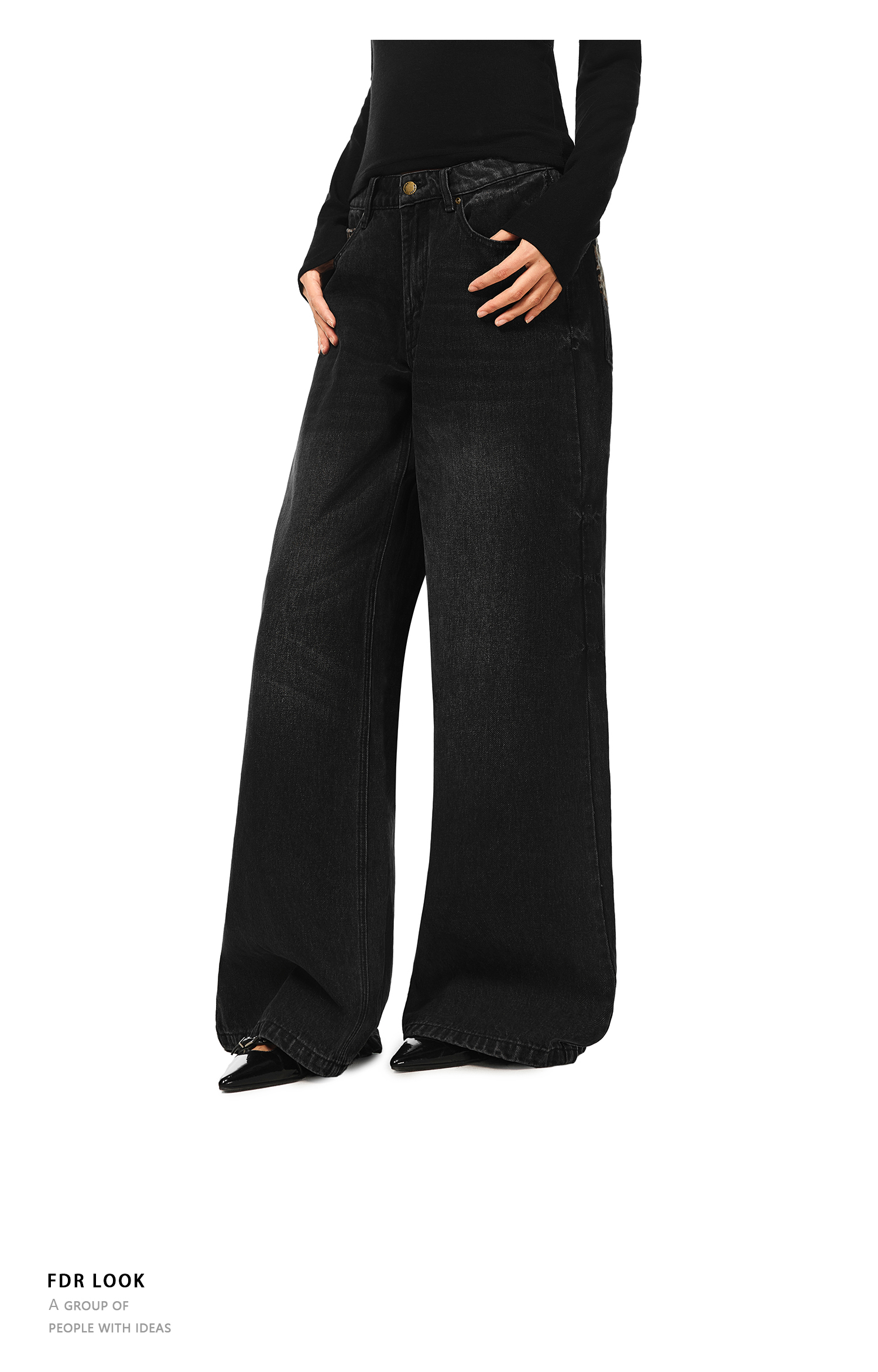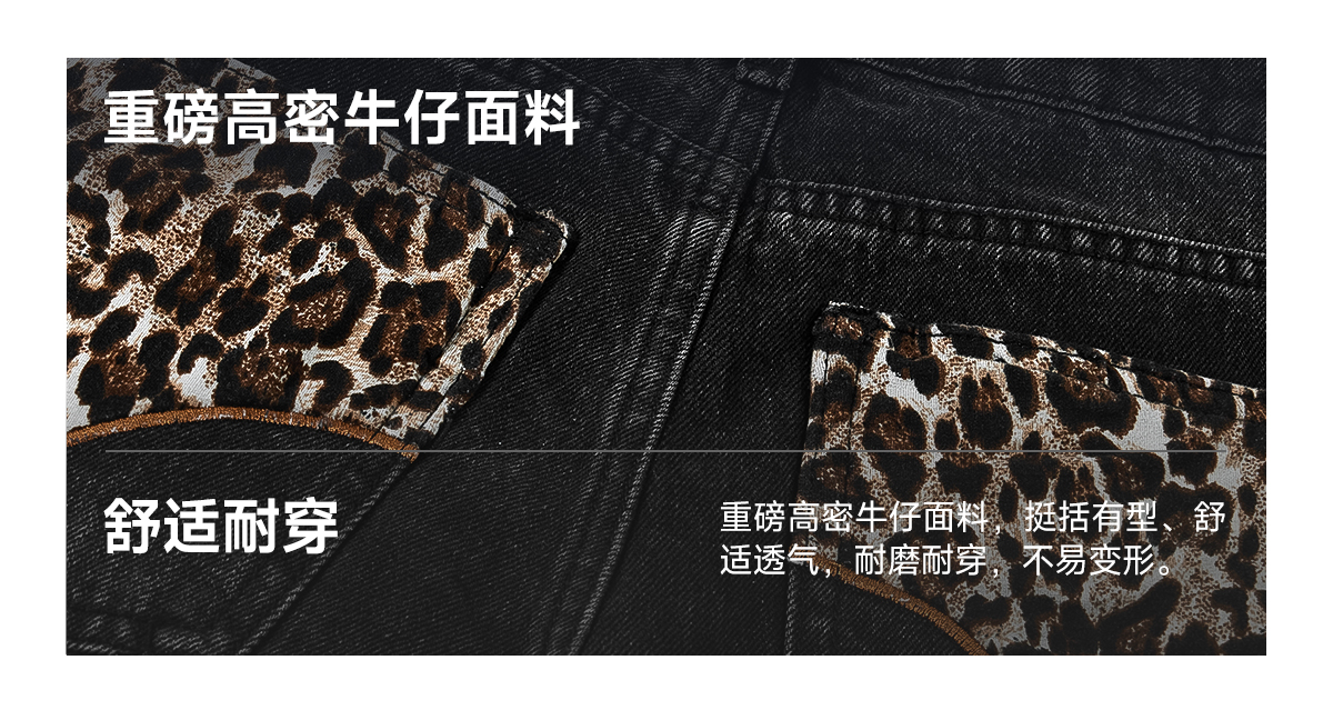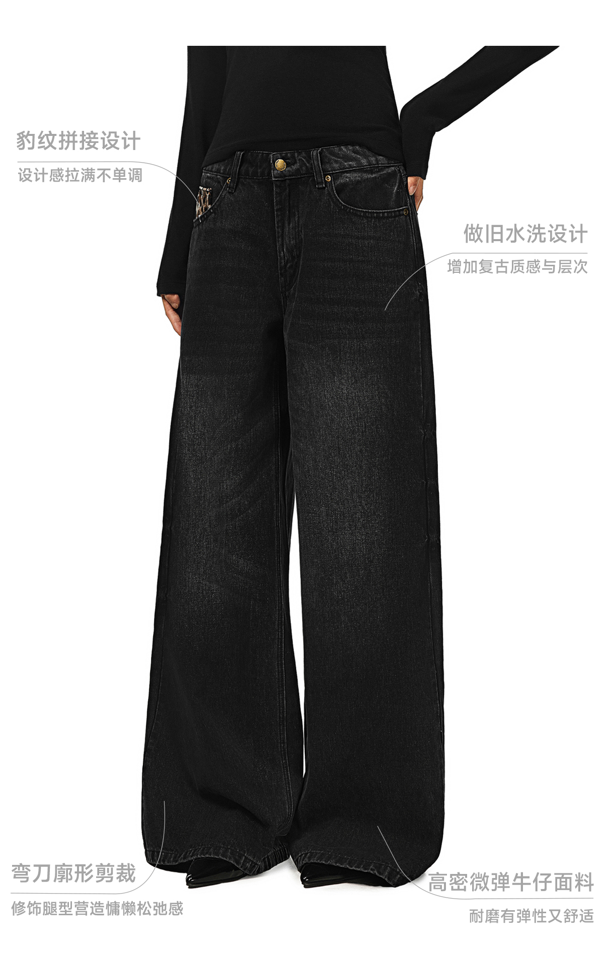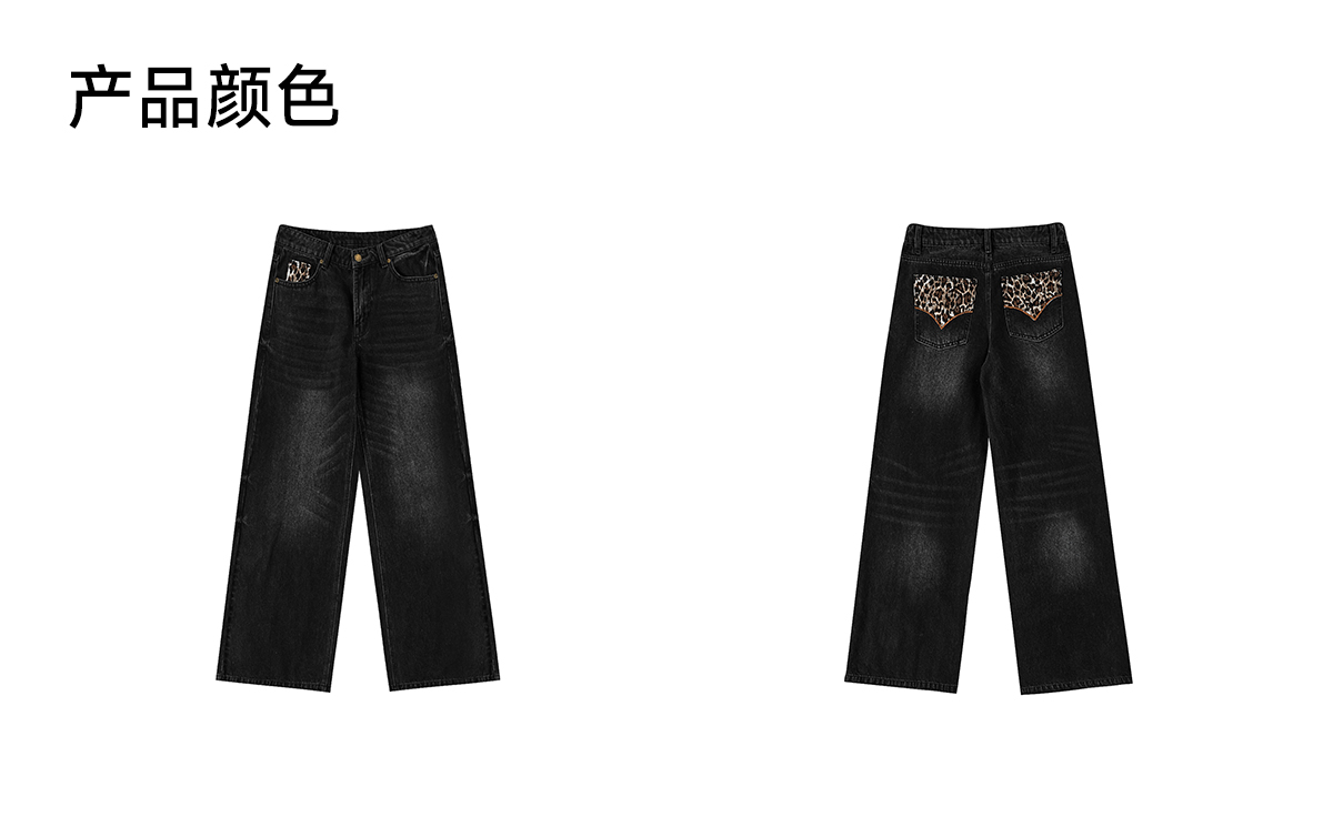 FDR官方店 豹纹拼接洗水直筒阔腿牛仔裤女2025新款小个子百搭长裤