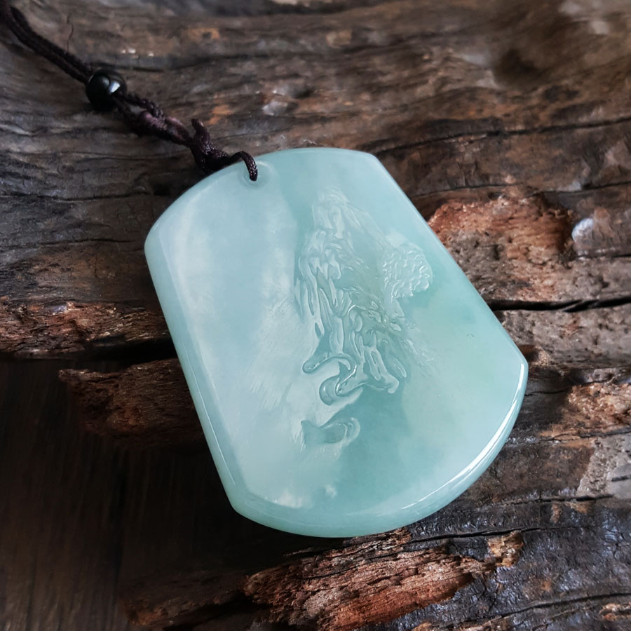 【天然正品】天然精品厚桩细腻糯冰种蓝水料马上发财无事牌翡翠吊坠项链53.8*41.8*7.7MM(皆取最大值)中性款现售价:3280!090425AH71