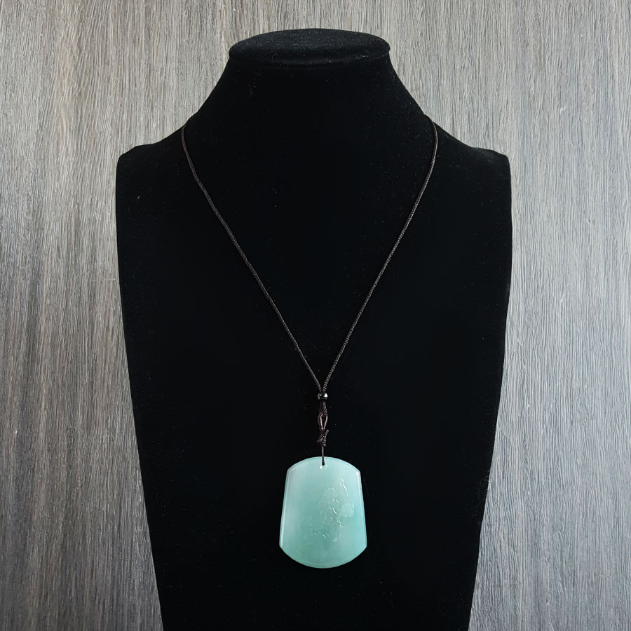 名称 | 天然精品厚桩细腻糯冰种蓝水料马上发财无事牌翡翠吊坠项链 |