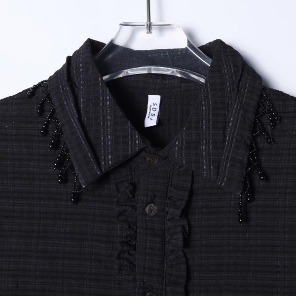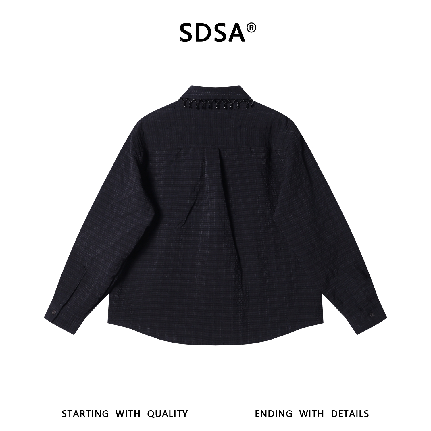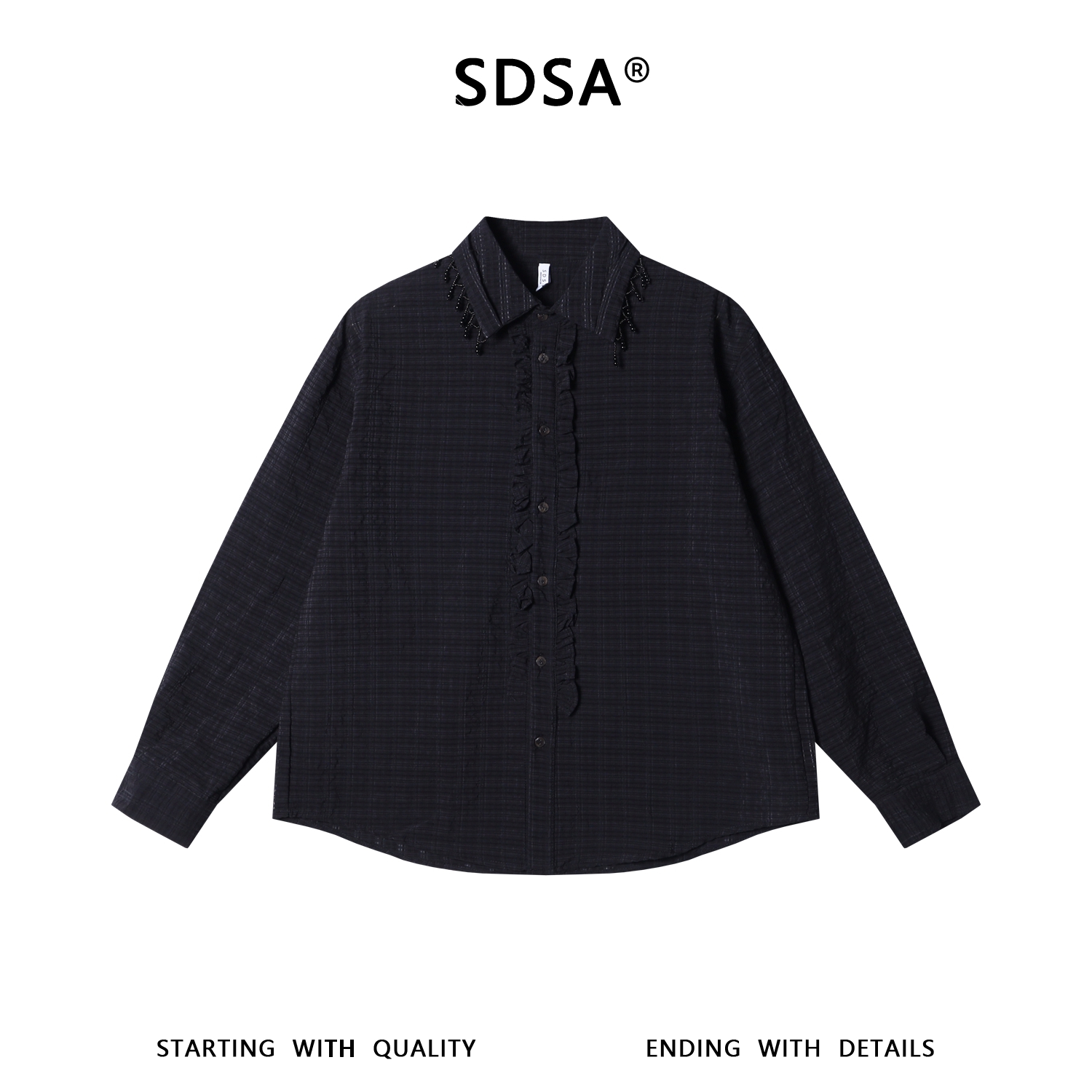SDSA男装2026新款高贵轻奢简约时尚领口珠子花边翻领长袖衬衫百搭