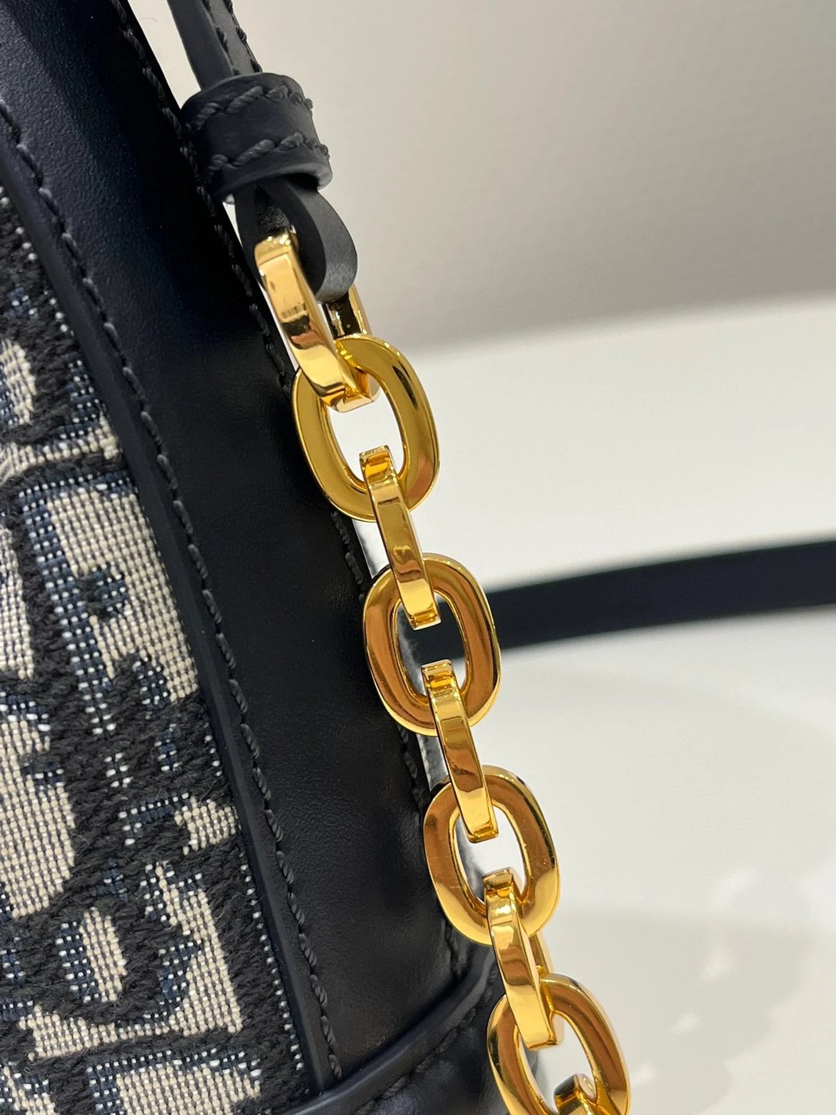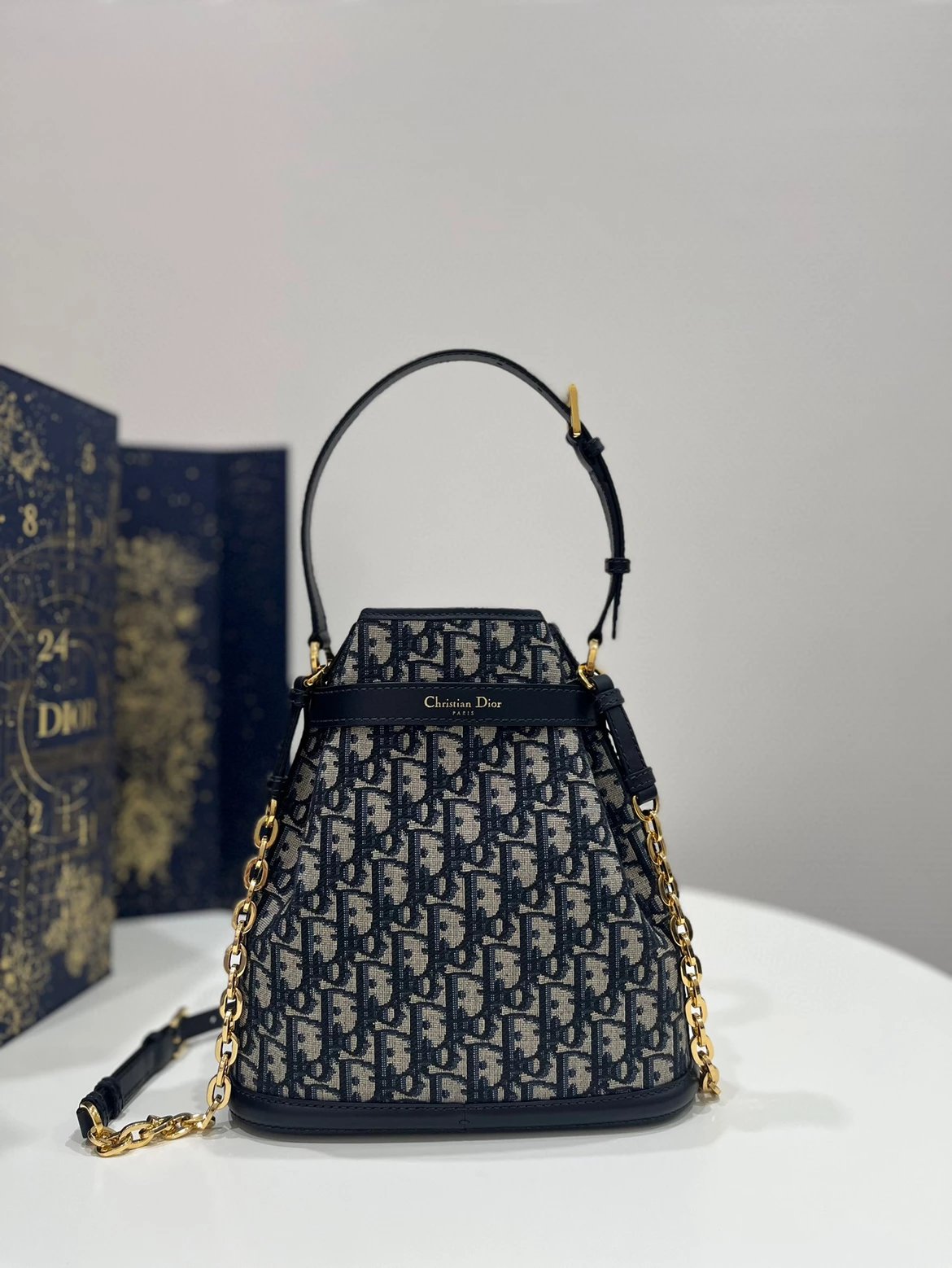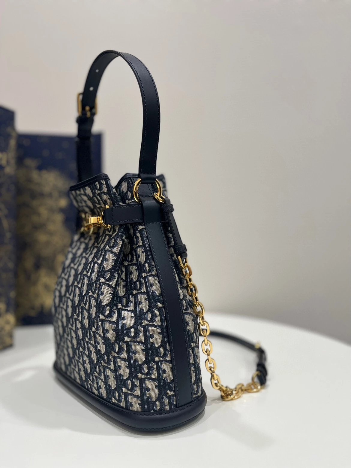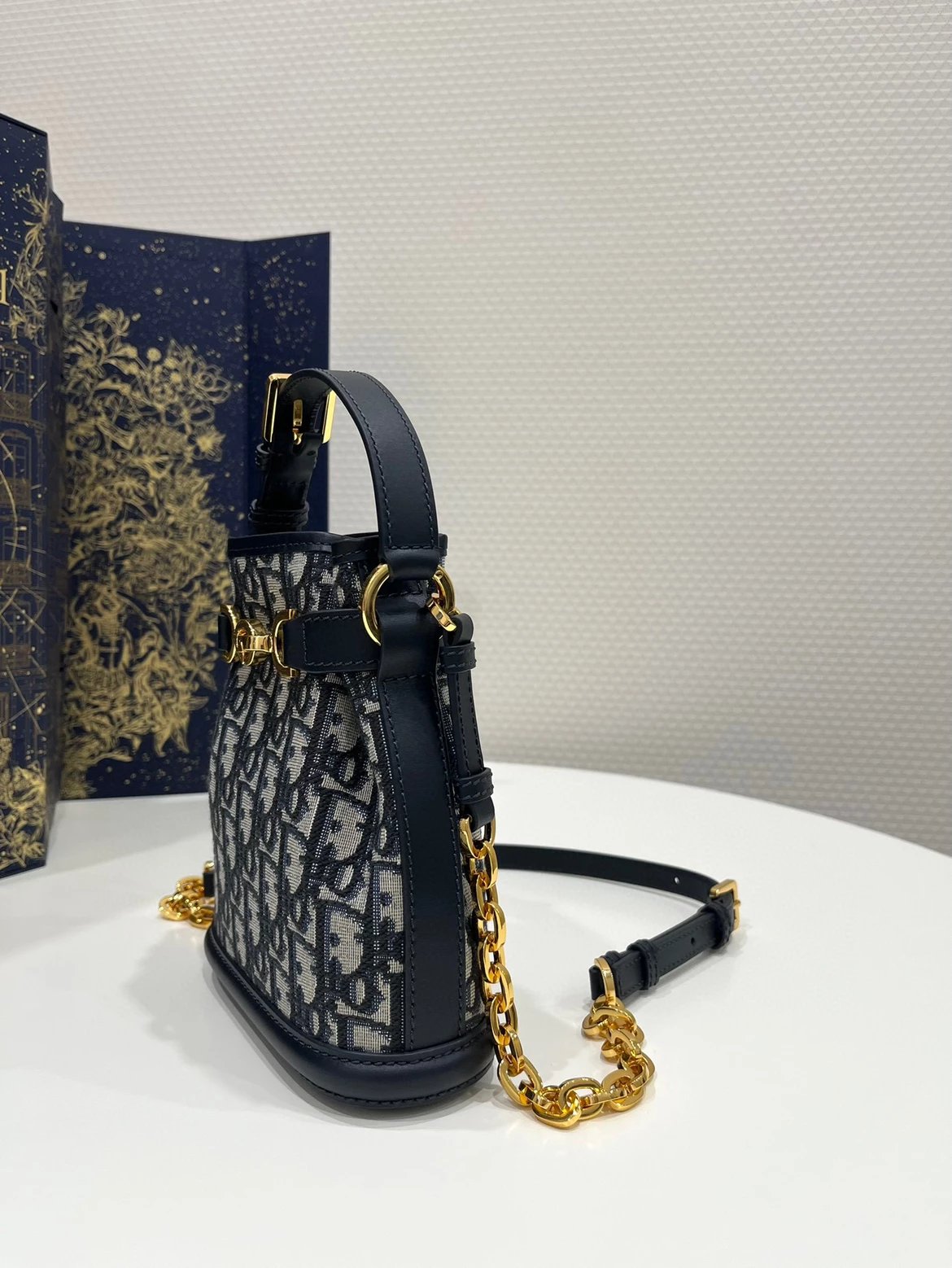 迪家 新C'est系列水桶包|W 砖柜新C'est 系列,优雅而经典,蓝色的oblique 老花面料,的水桶包造型,字母Lock 开合,饰以旋钮式字母 D,可收纳各种日常用品,搭配顶部手柄和可调节皮带,可拆卸的链条肩带,既时尚又百搭 size:17*7*18cm size:24*10*24.5cm 全套包装