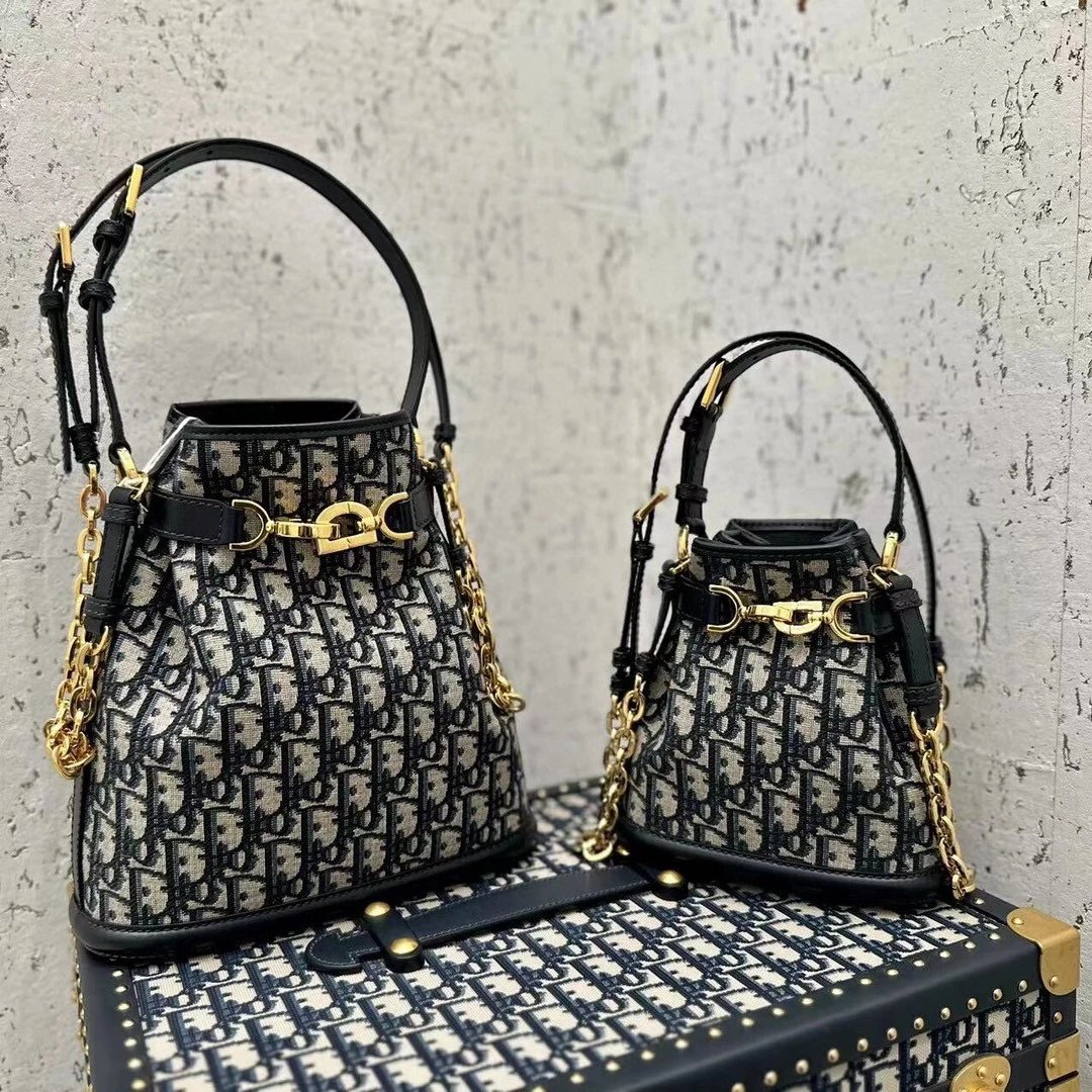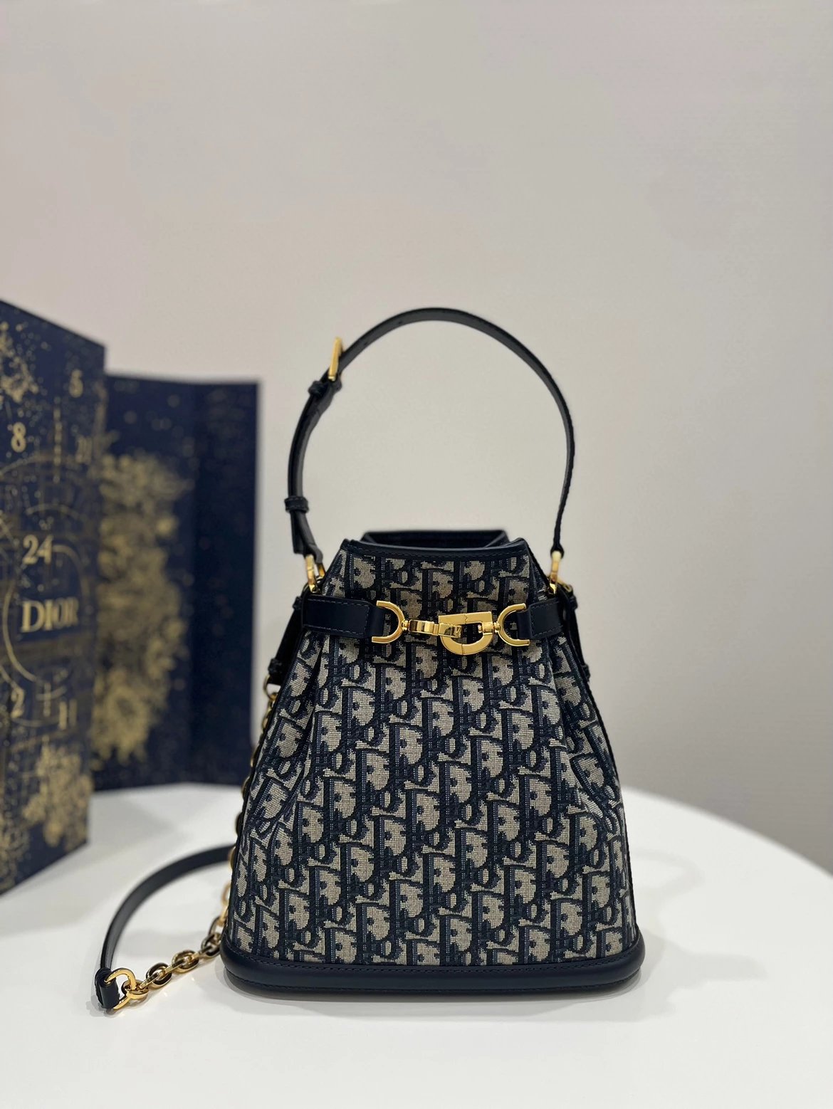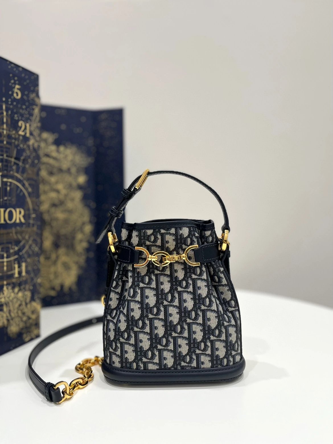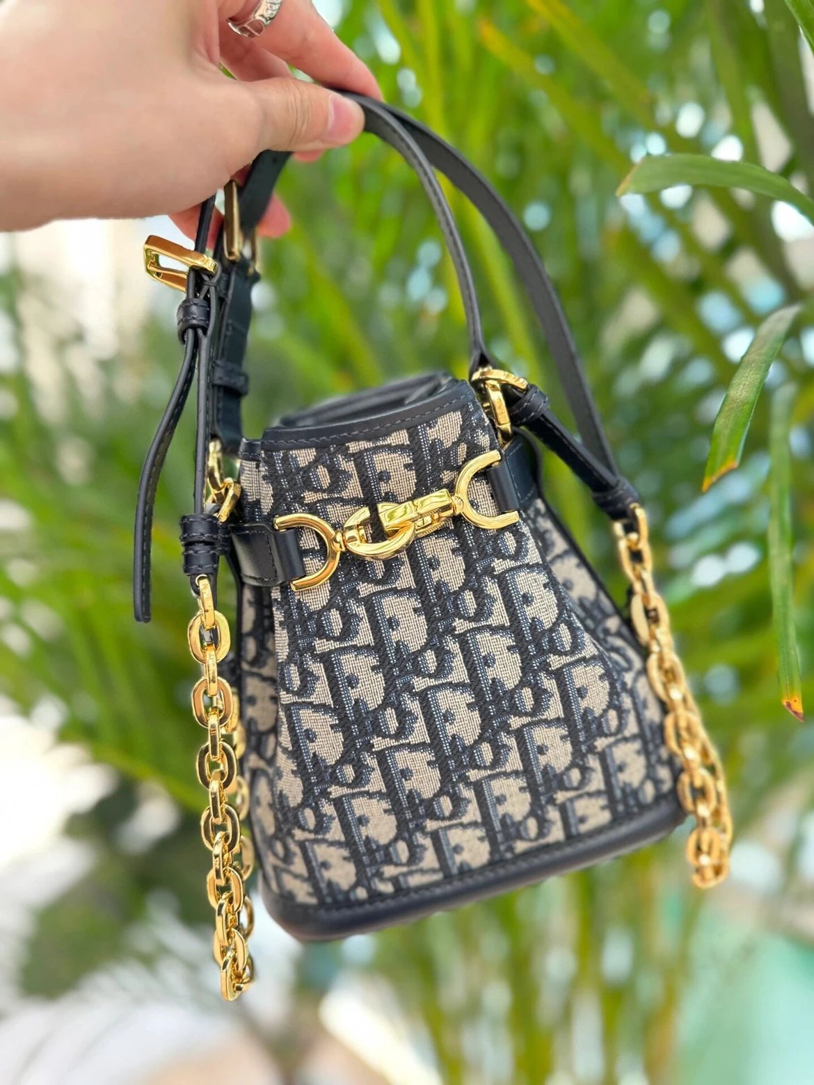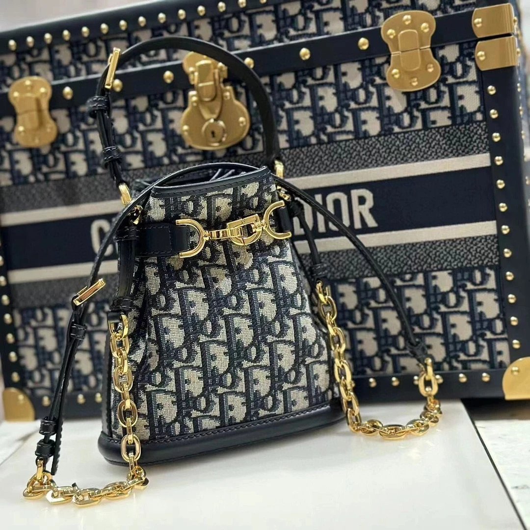 迪家 新C'est系列水桶包|W 砖柜新C'est 系列,优雅而经典,蓝色的oblique 老花面料,的水桶包造型,字母Lock 开合,饰以旋钮式字母 D,可收纳各种日常用品,搭配顶部手柄和可调节皮带,可拆卸的链条肩带,既时尚又百搭 size:17*7*18cm size:24*10*24.5cm 全套包装