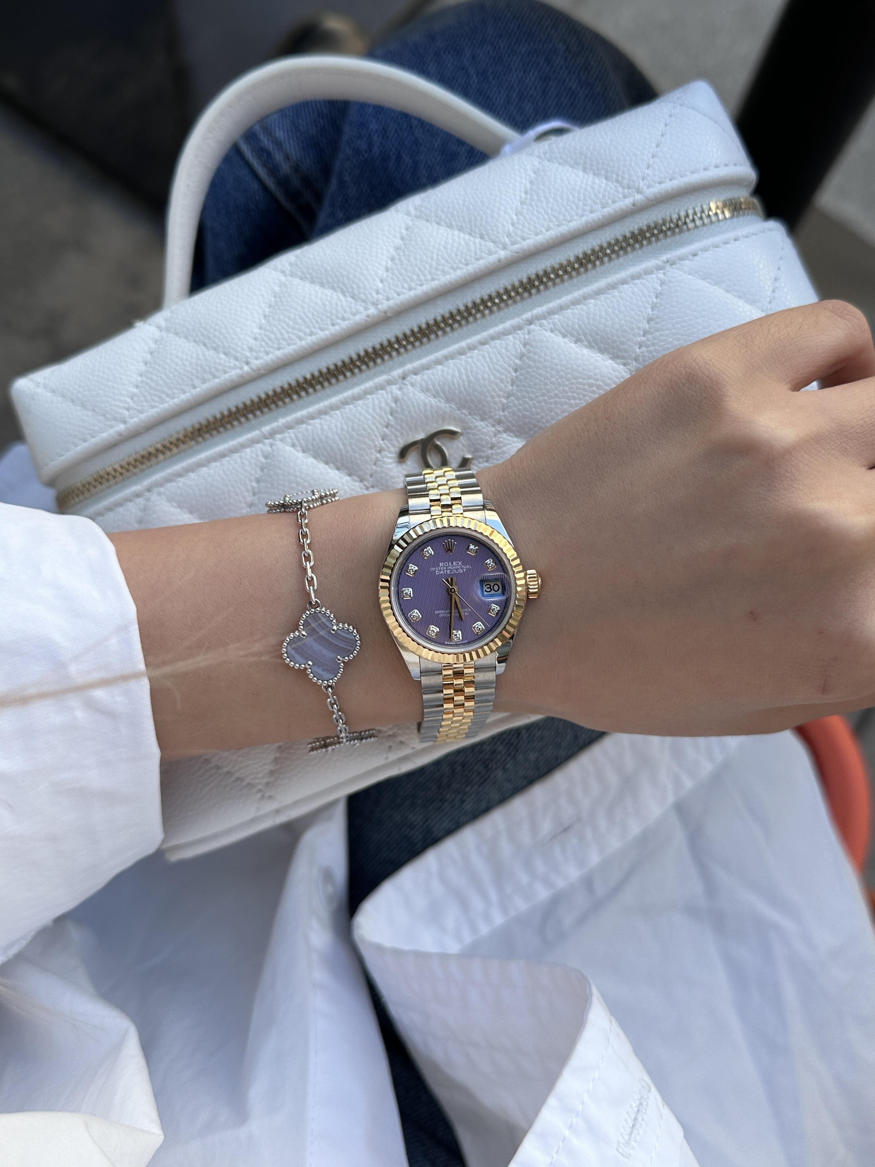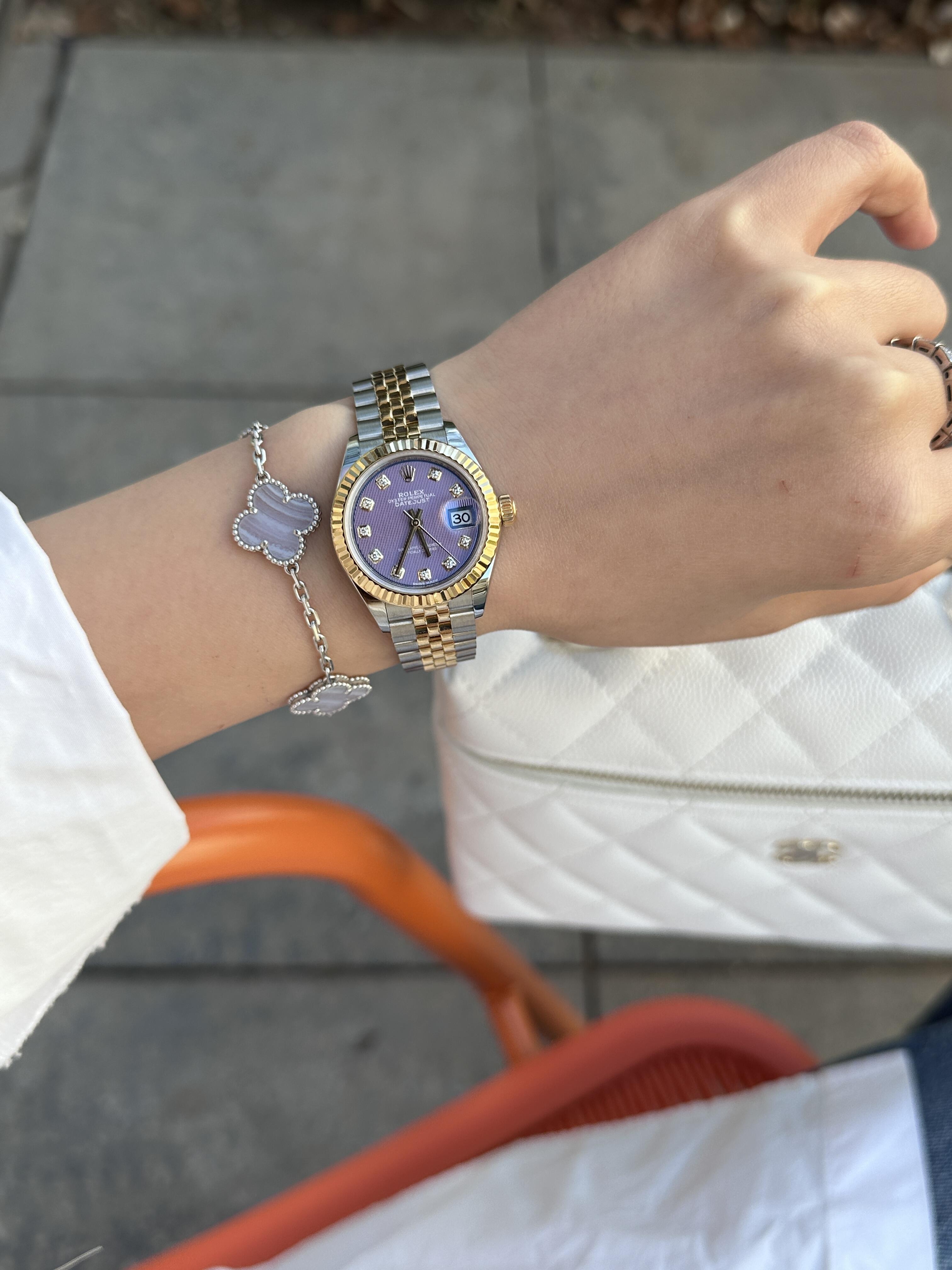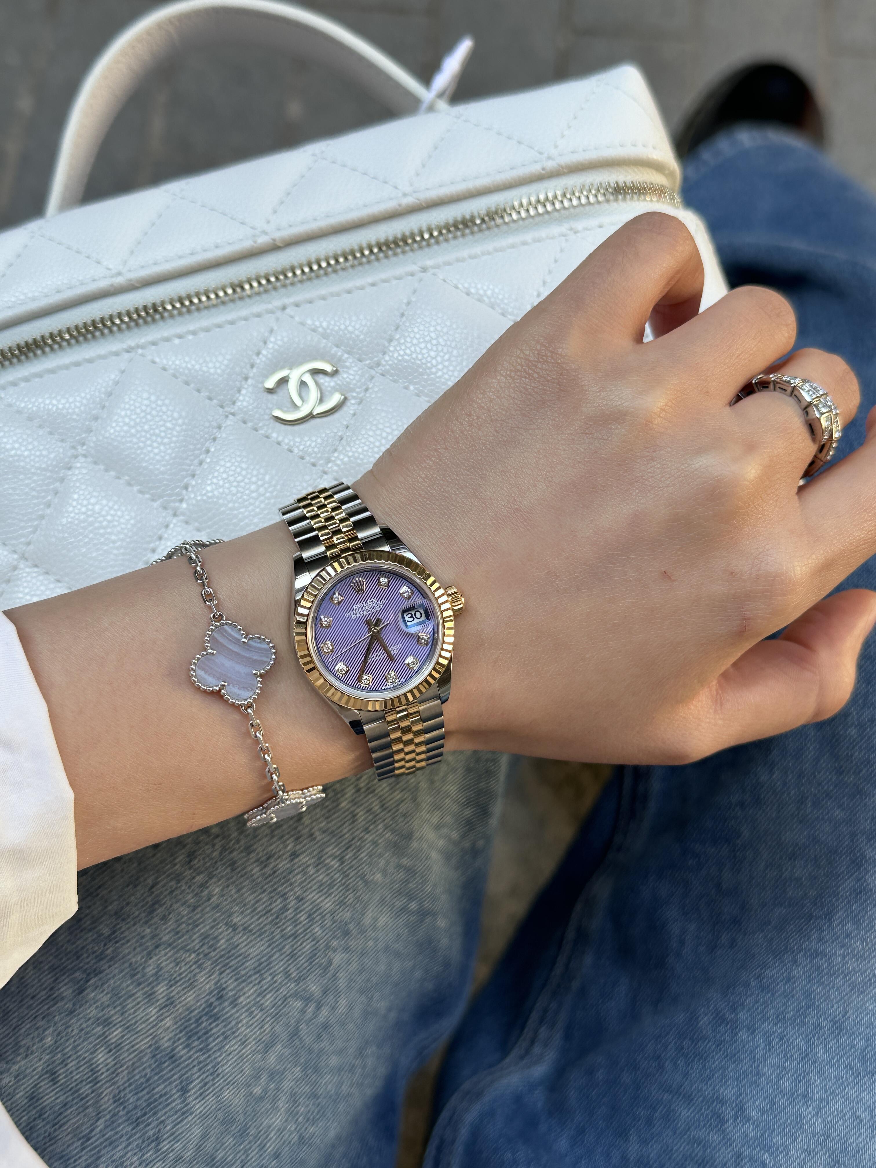 TB45-ROLEX劳力士 女装日志型系列 自动机械机芯 日期显示 镶钻茄紫色表盘 女款 瑞表 紫色表盘 蚝式钢表壳 精钢精钢表带(SH)