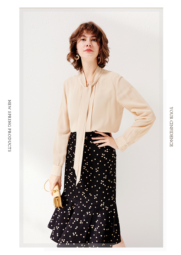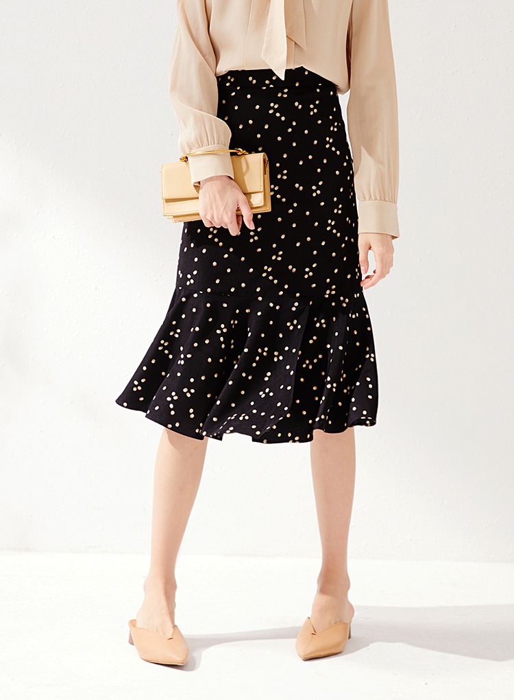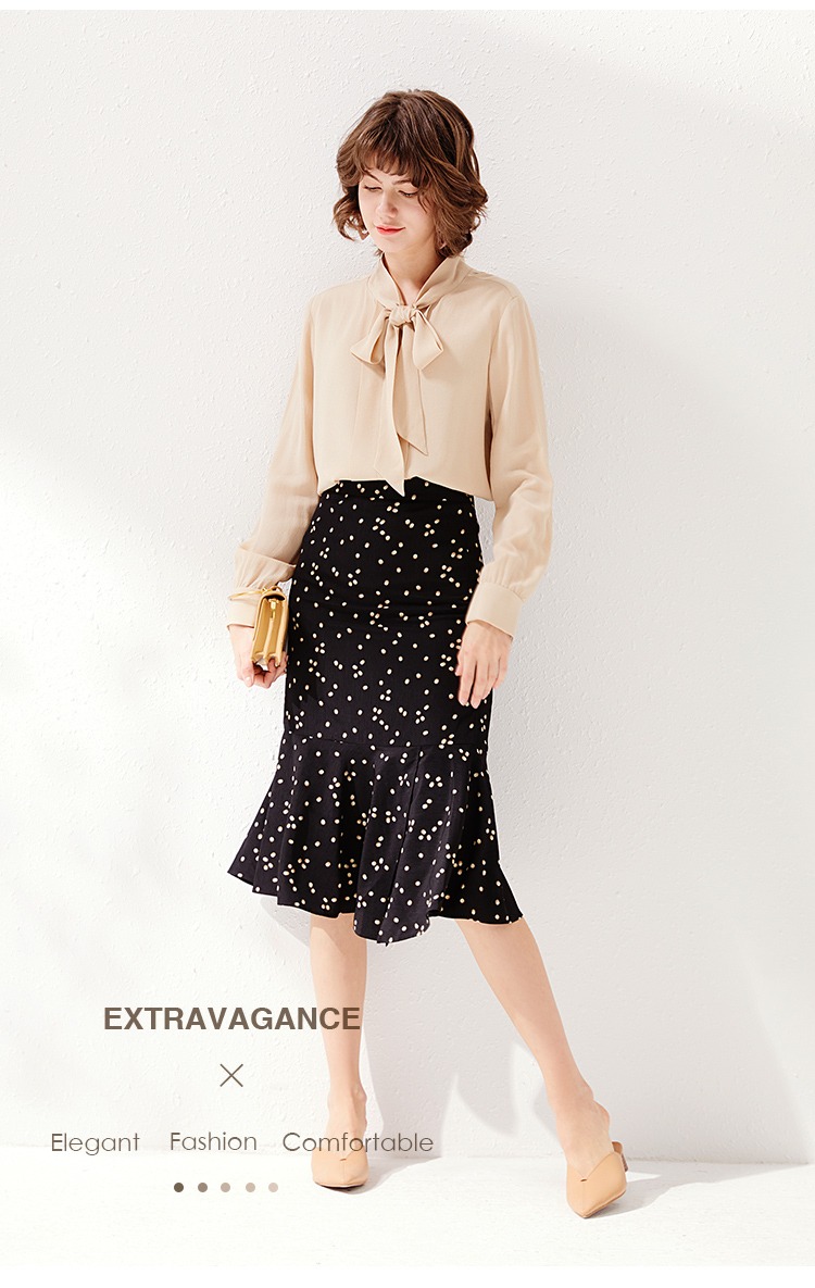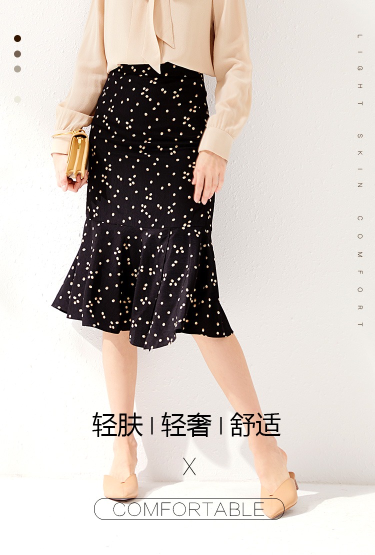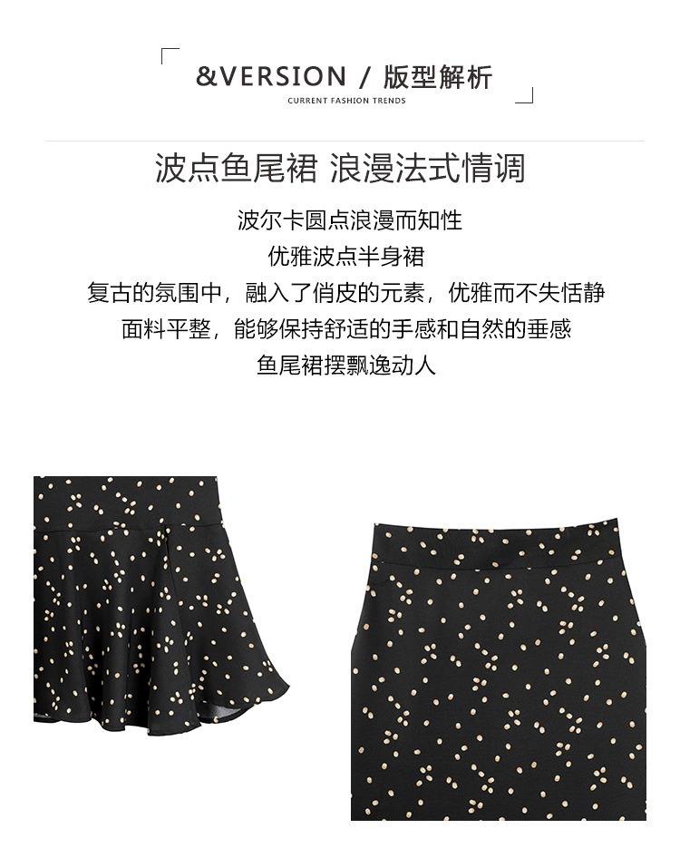 【现货款】高腰鱼尾裙2023春夏新款A字裙中长款波点显瘦雪纺半身裙女