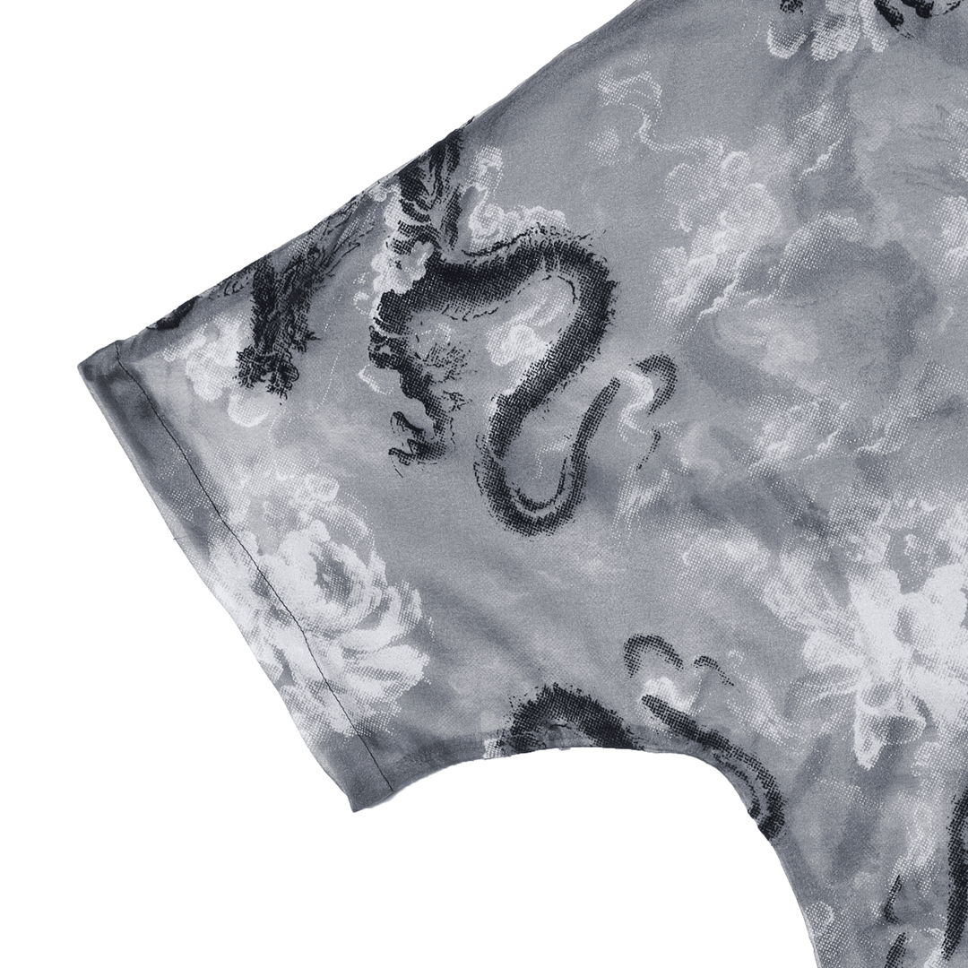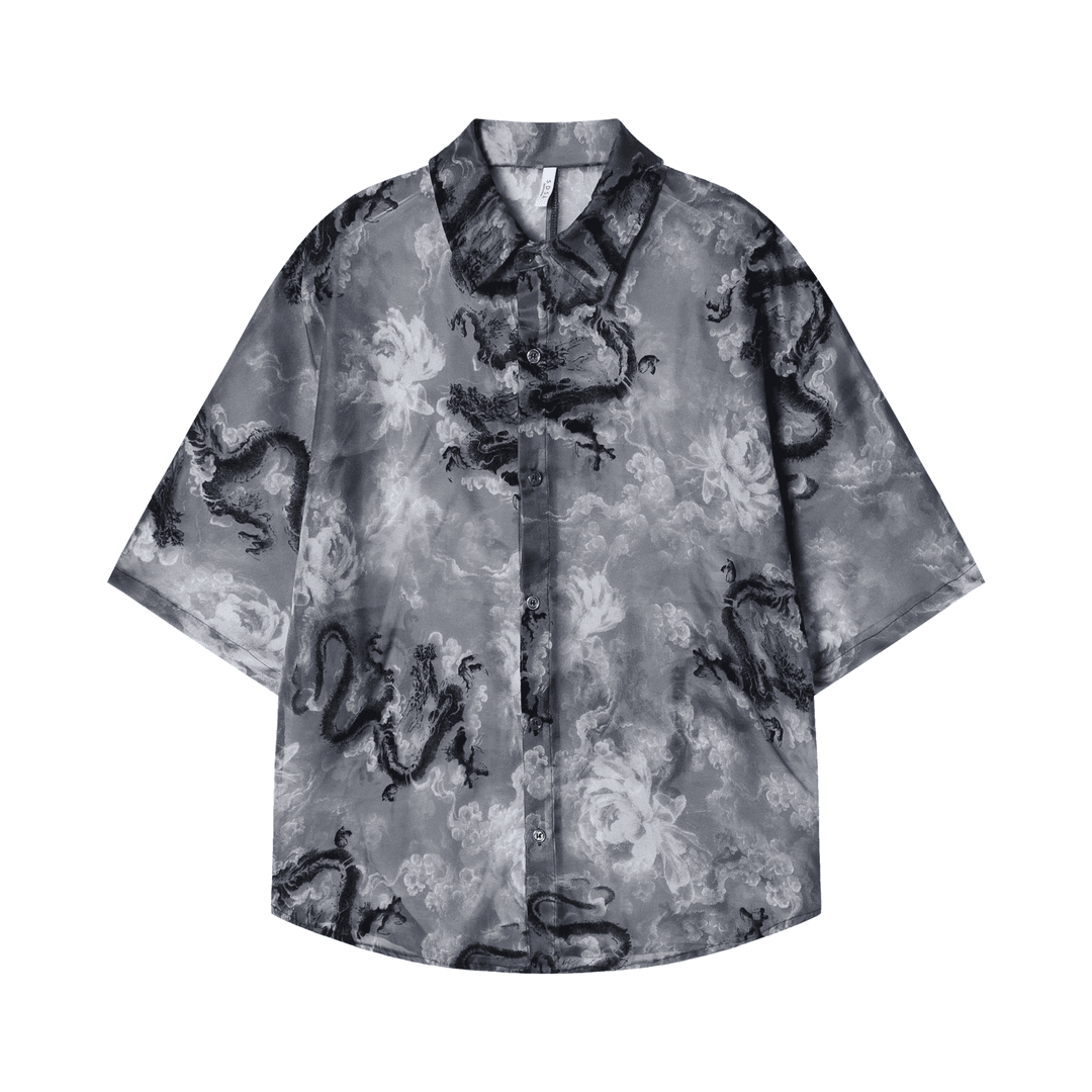 CS97新款国风复古中国龙印花男士衬衫百搭国潮扎染上衣宽松短袖