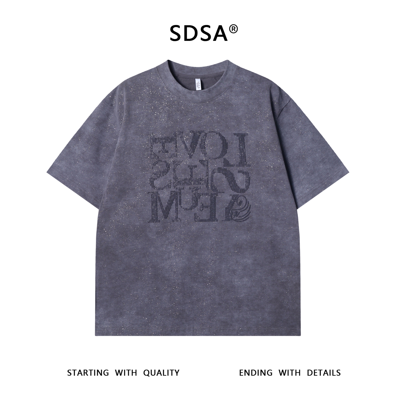 T3473夏季高级感新款潮牌满天星印花立体字母短袖T恤百搭潮流圆领上衣