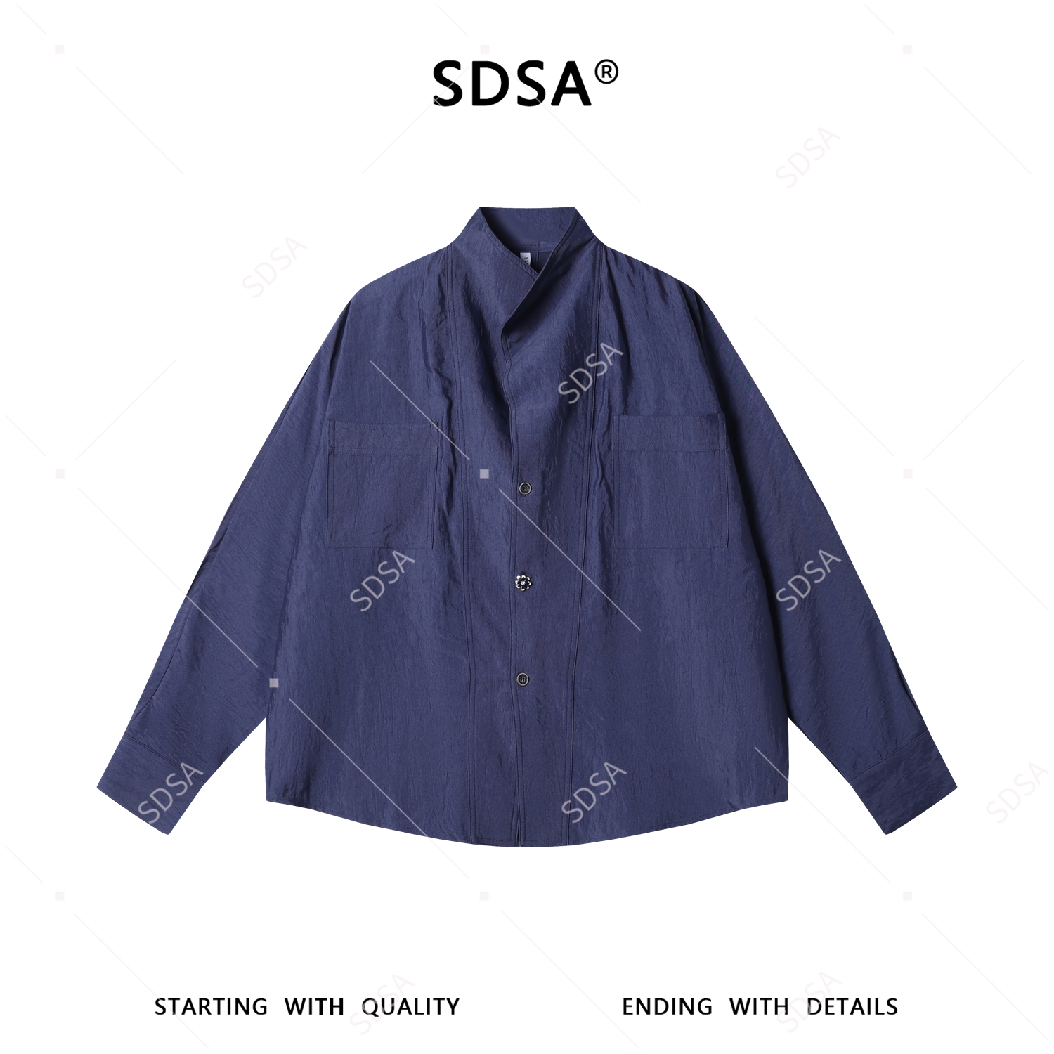 26CS34SDSA男装2026新款高贵轻奢简约纯色交叉立领衬衫百搭时尚休闲衬衣