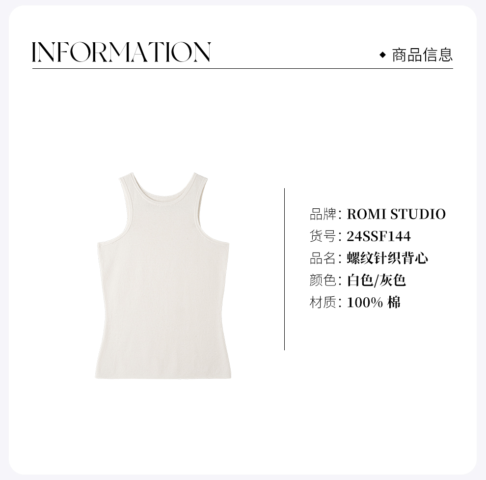 ROMI STUDIO“自我韵律”16针100%棉弹力螺纹无Bra针织背心24SSF144