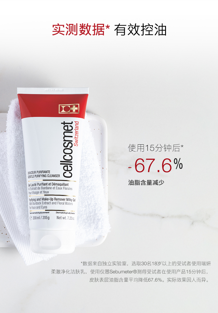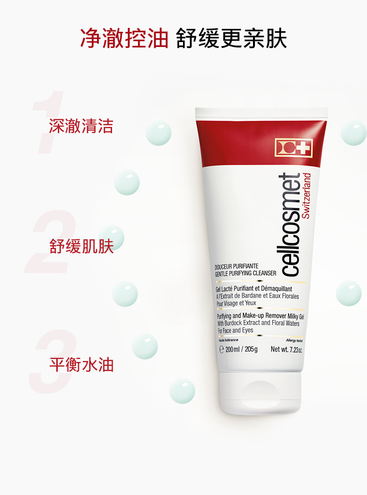 cellcosmet/瑞妍柔澈净化洁肤乳 深层清洁质地温和 舒缓肌肤 调节水油平衡