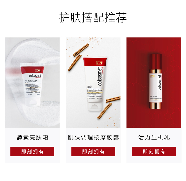- 自1987年创立之初, Cellcosmet瑞妍便展现出瑞士化妆品科学的卓越性,并稳稳确立了该领域的黄金标准。位于瑞士的塞利普实验中心已在日内瓦湖畔潜心研发四十余年,致力于不断更新焕肤配方的功效。