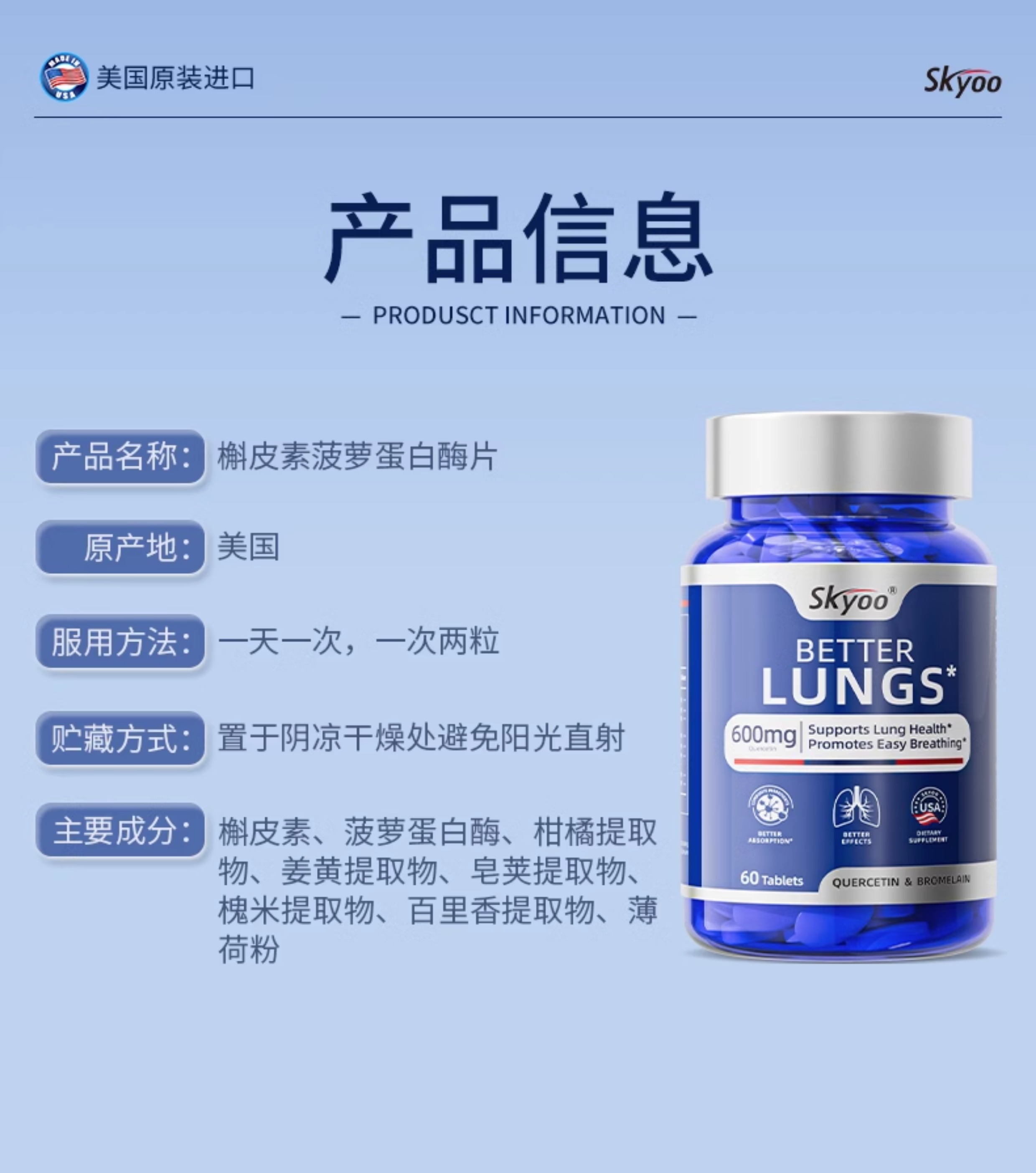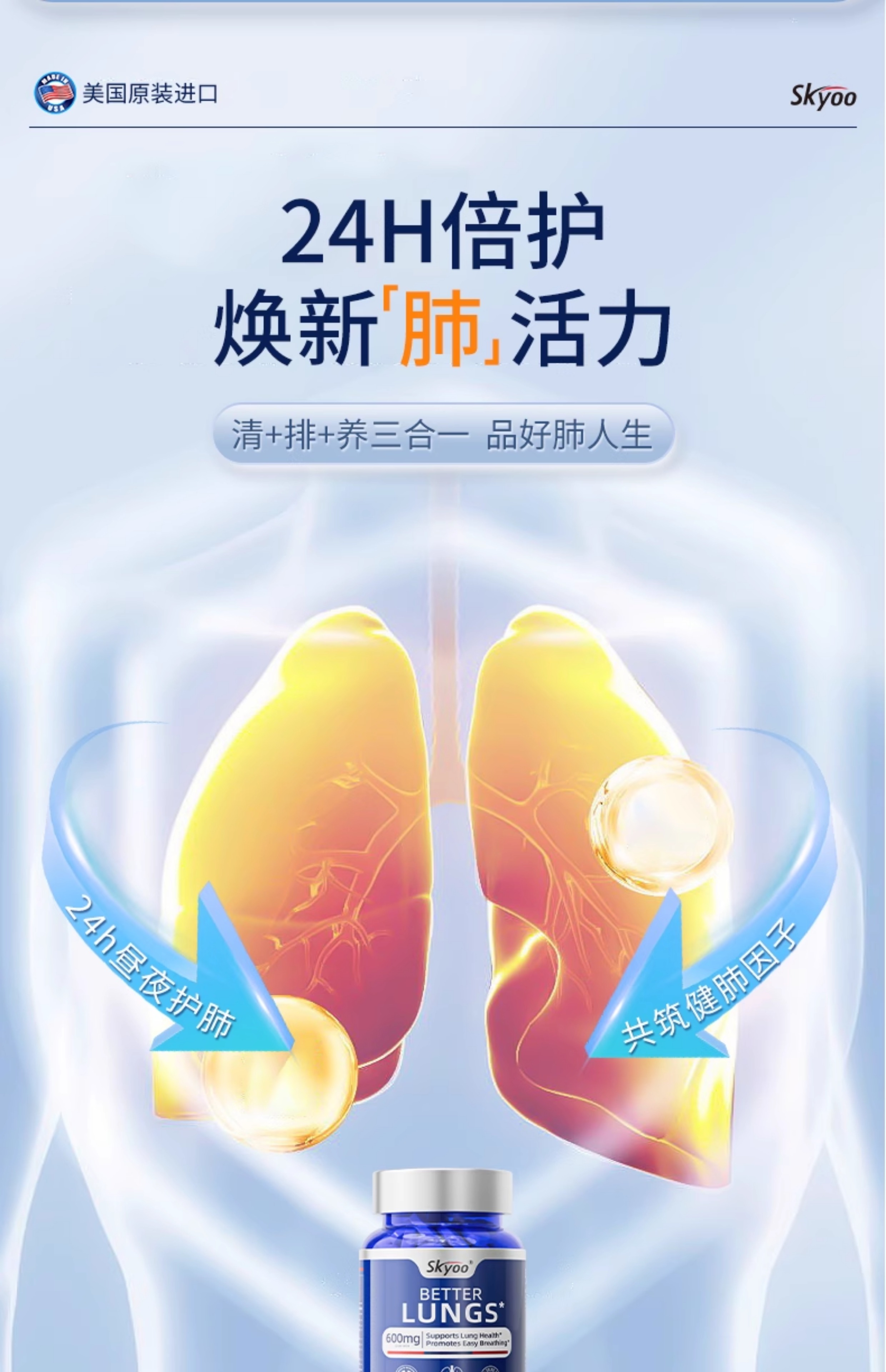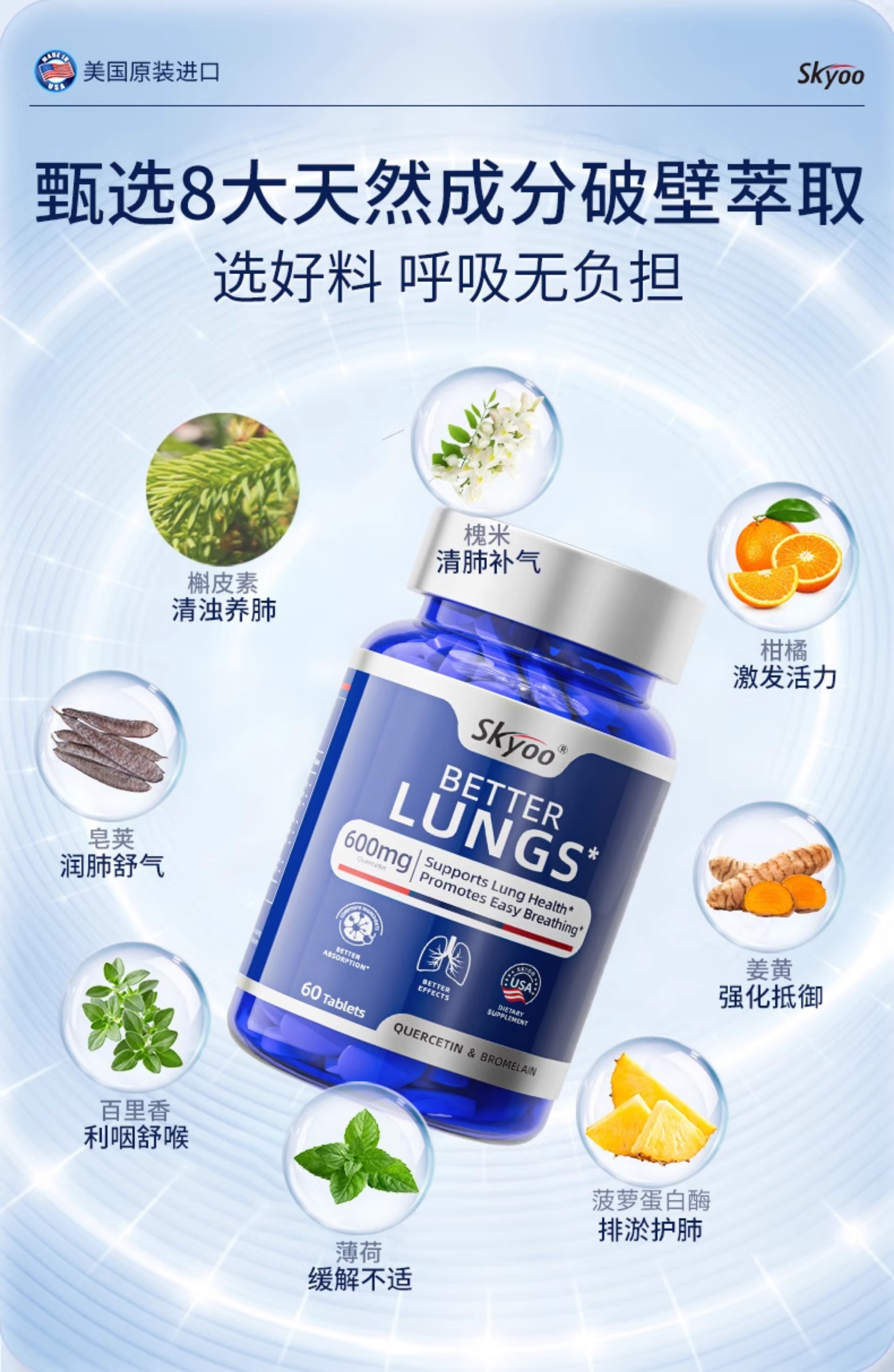 skyoo护肺素养肺护肺呵护健康活力菠萝蛋白酶槲皮素肺部保健品