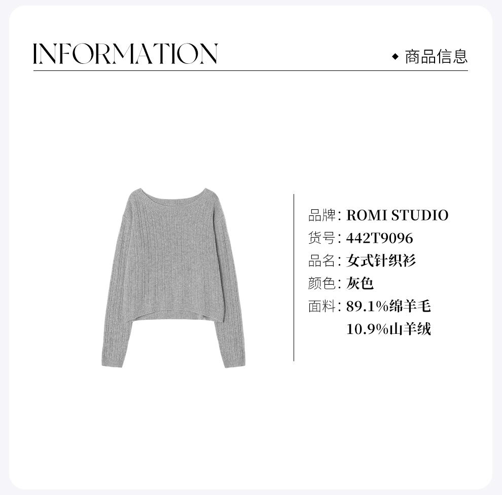 ROMI STUDIO“格雷高知”7s绵羊毛山羊绒混纺坑条针织毛衫 442T9096