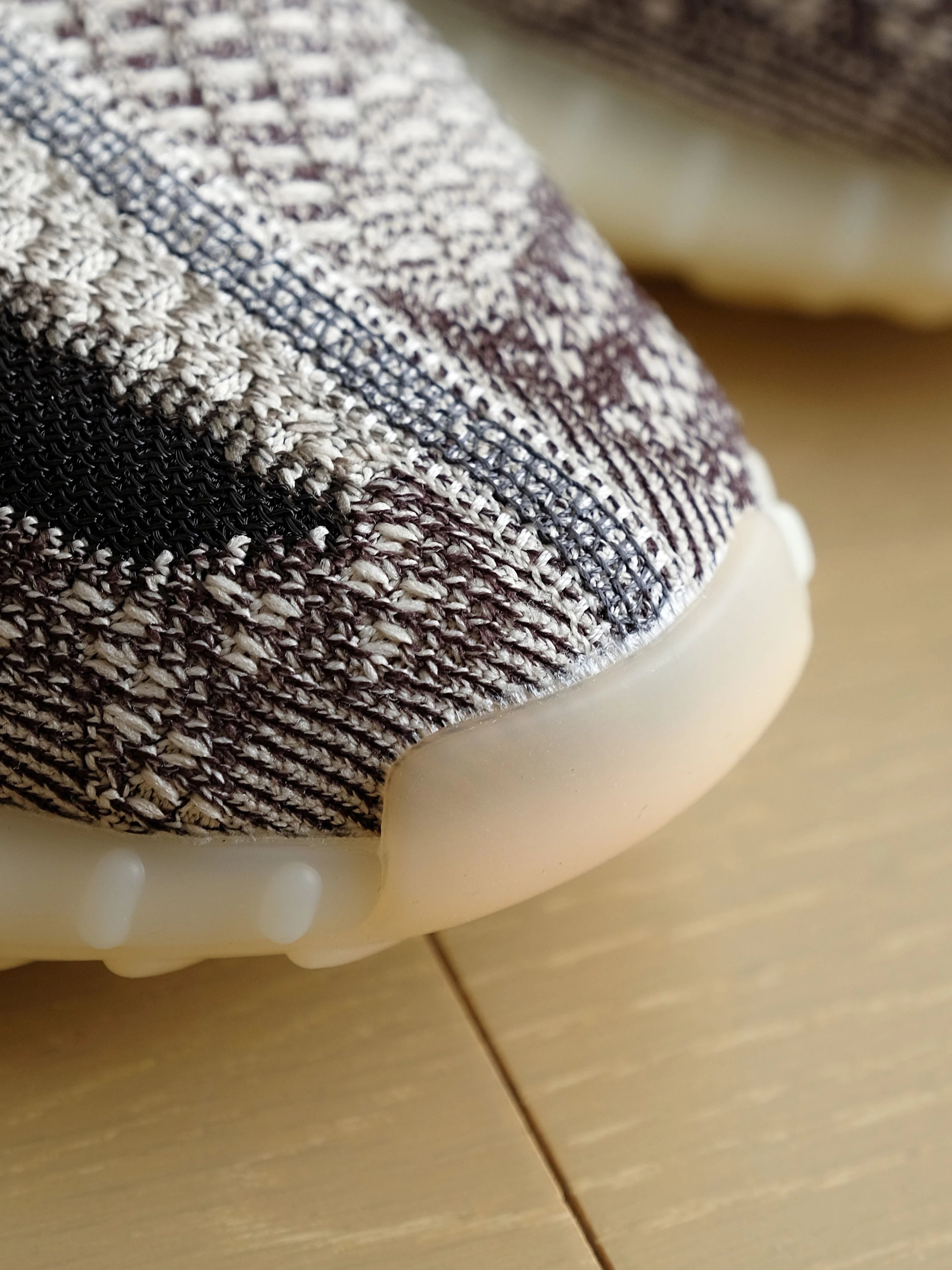 这双synth同样将会以没有后跟提环的形式出现。鞋款将会是祼色搭配生胶色的中底完成整体设计。